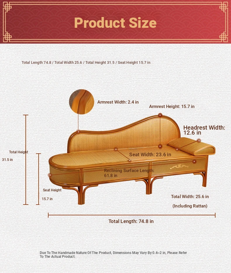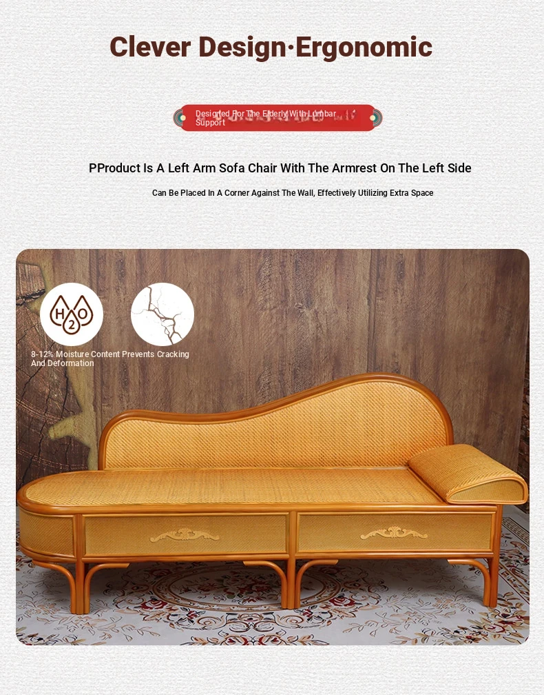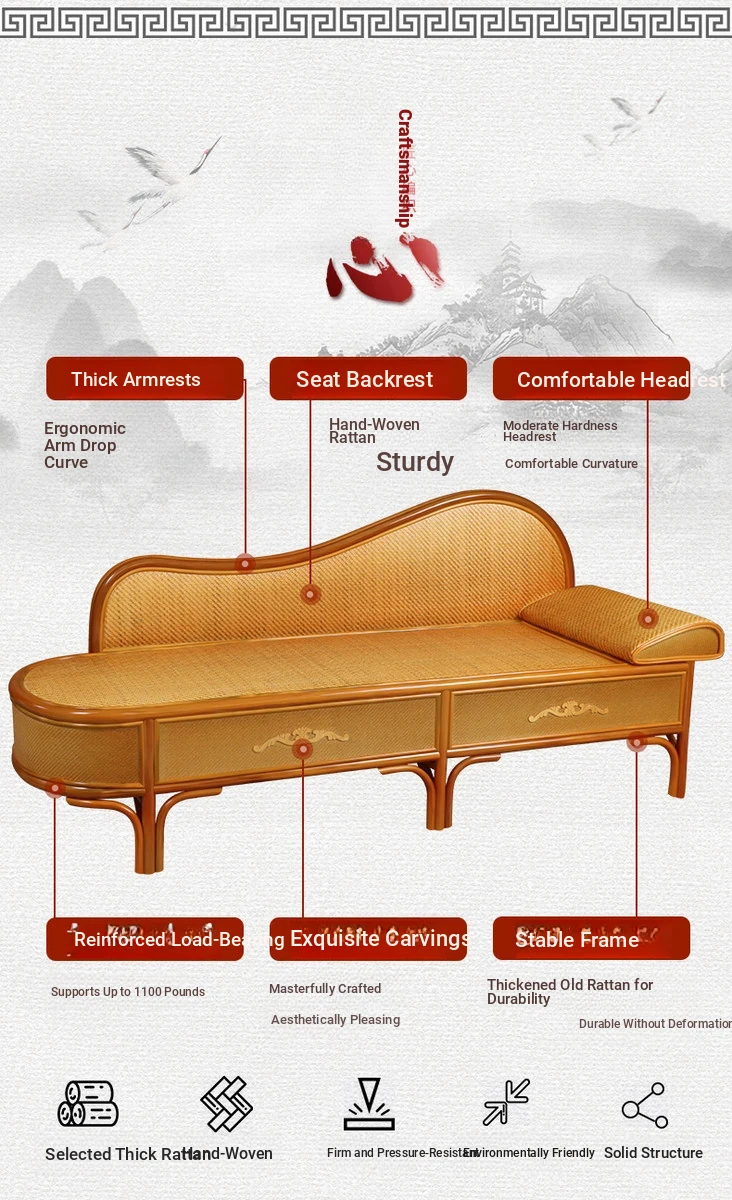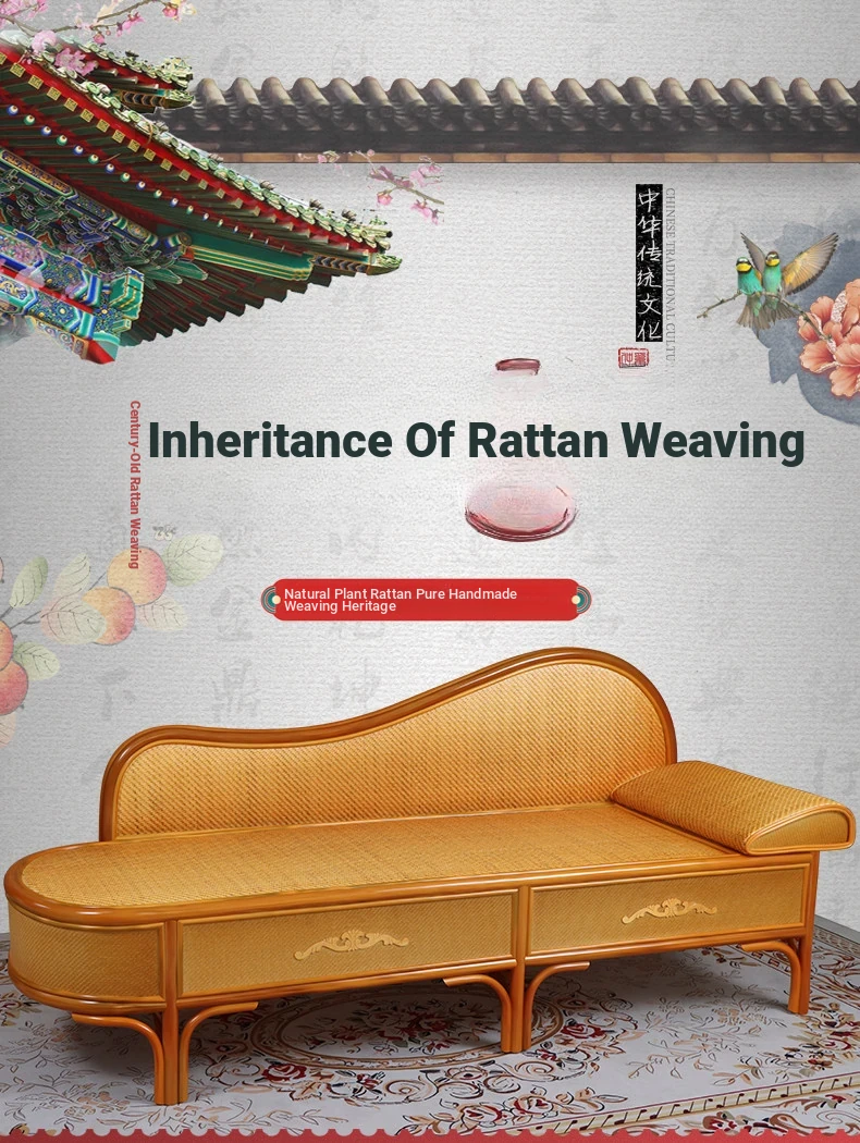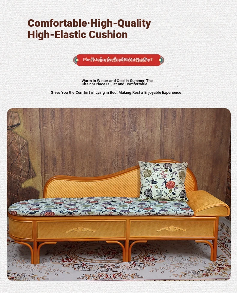 Wicker Rattan Chaise Lounge Chair - Stylish and Comfortable Daybed Sofa for Bedroom and Living Room, Perfect for Small Spaces, Elegant Design for Ultimate Relaxation