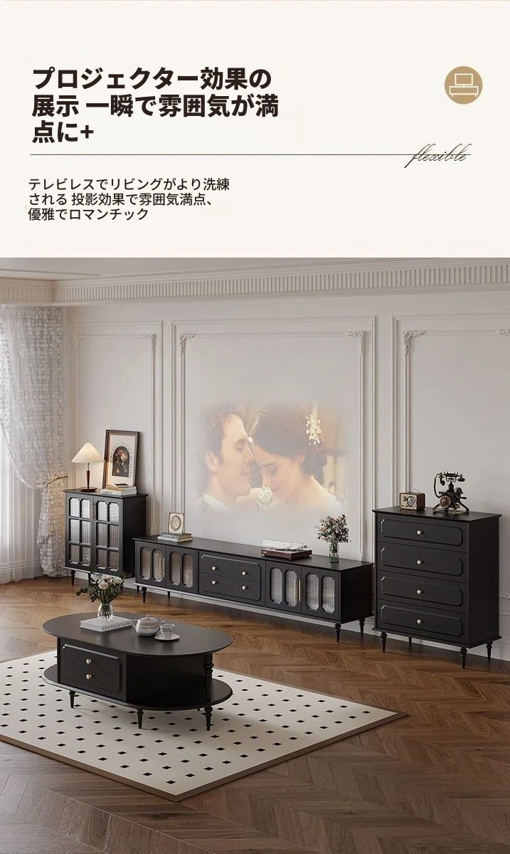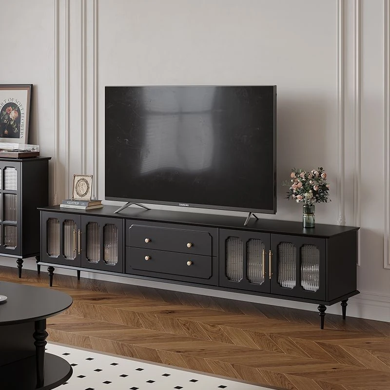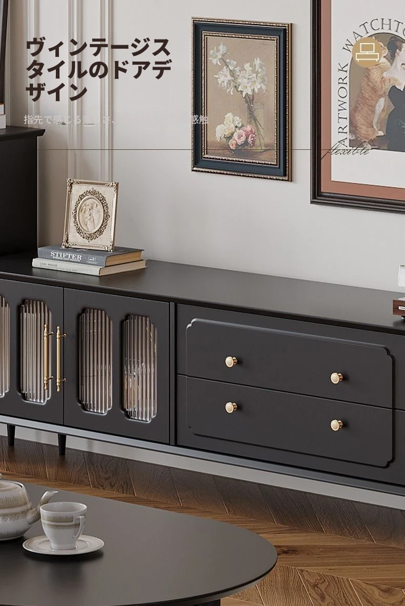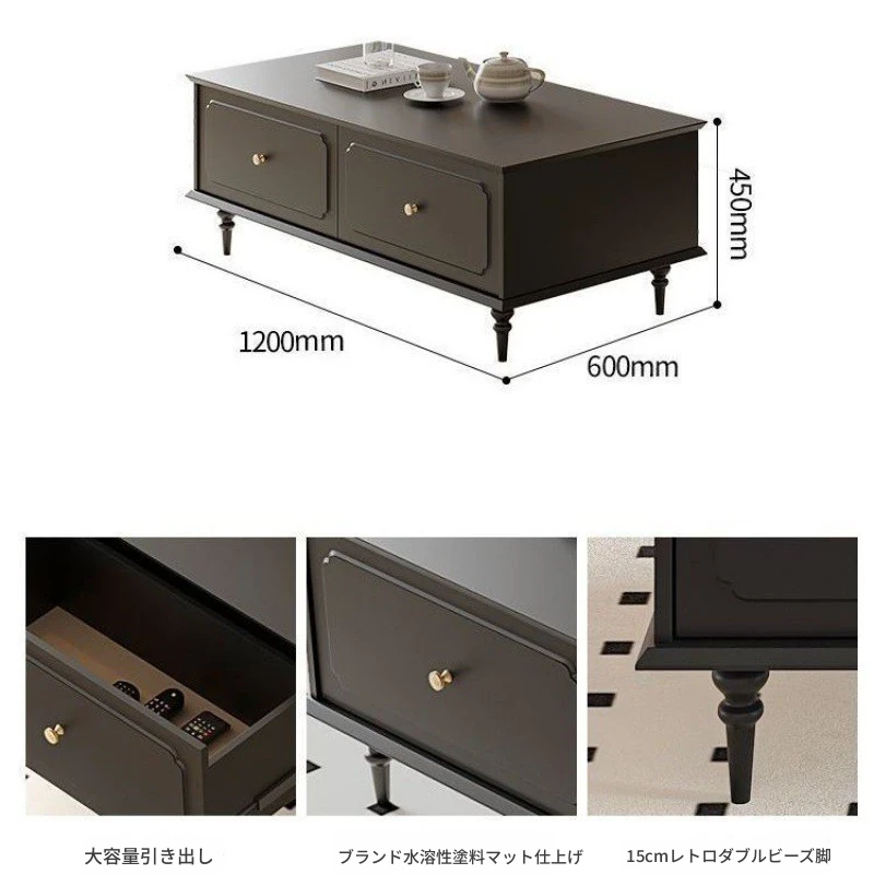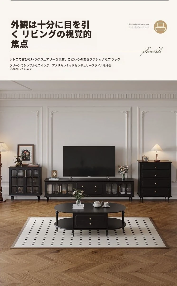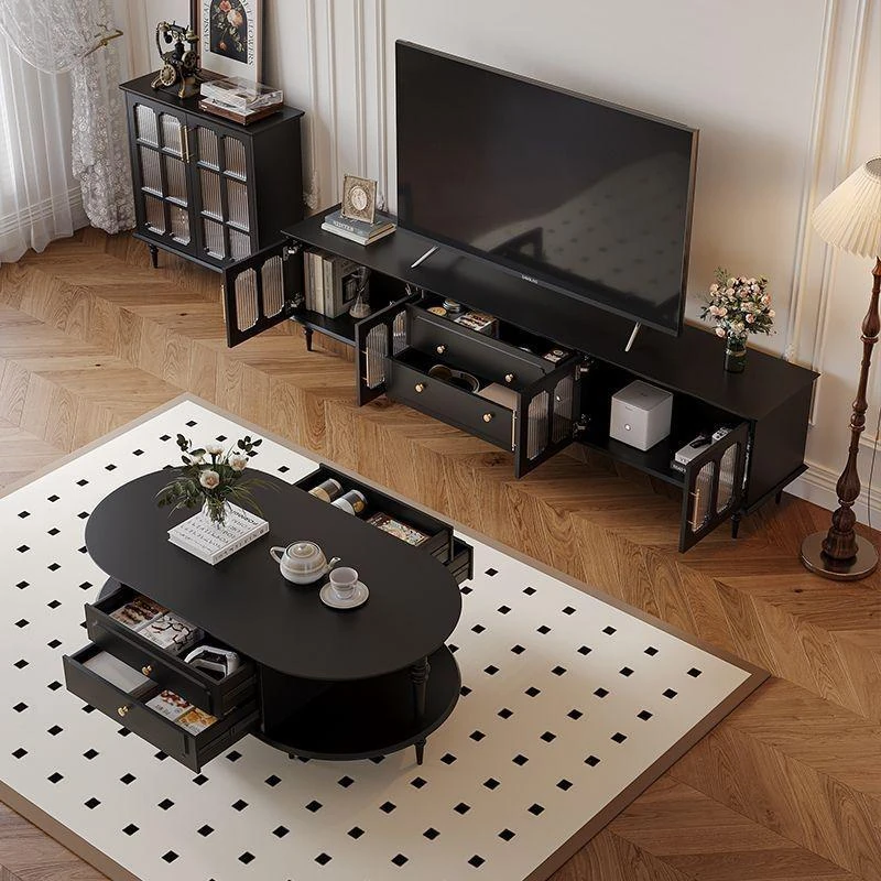 2023年新作!アメリカンレトロテレビ台&コーヒーテーブルセット - フランス風デザインの小型リビングにぴったりな本格的な木製ブラックテレビボード!おしゃれで機能的、理想の空間を演出します。