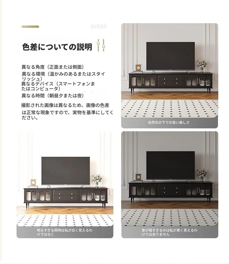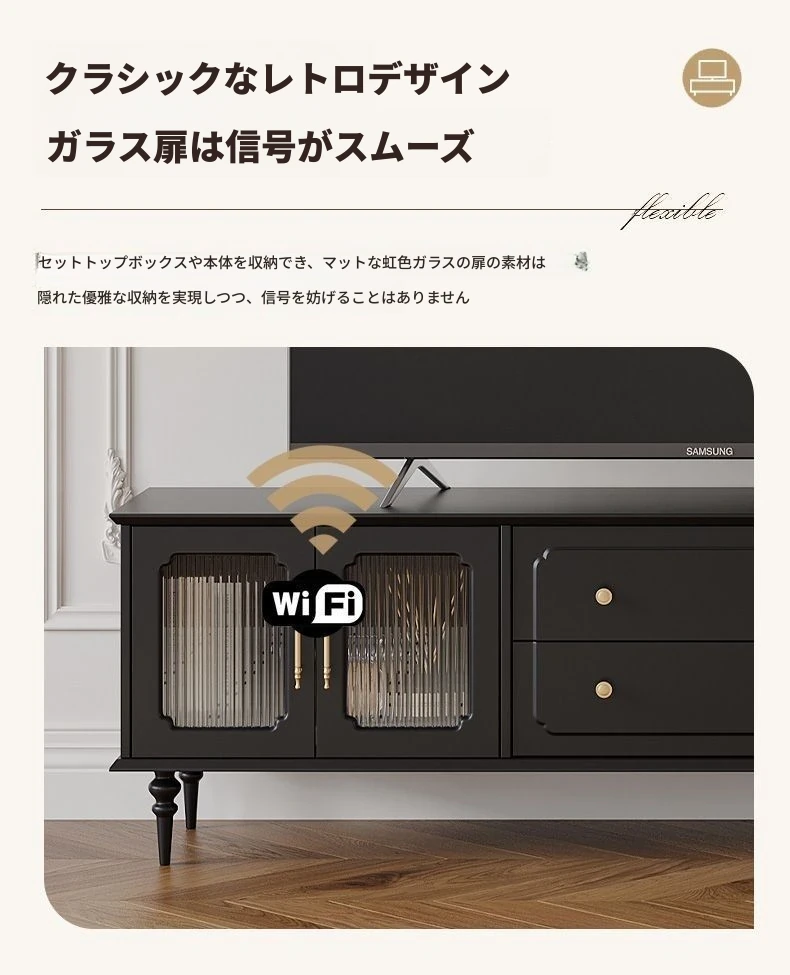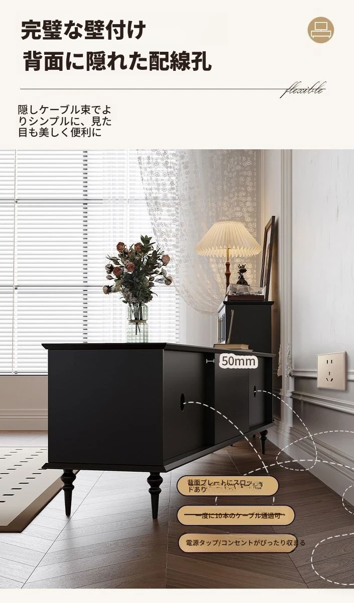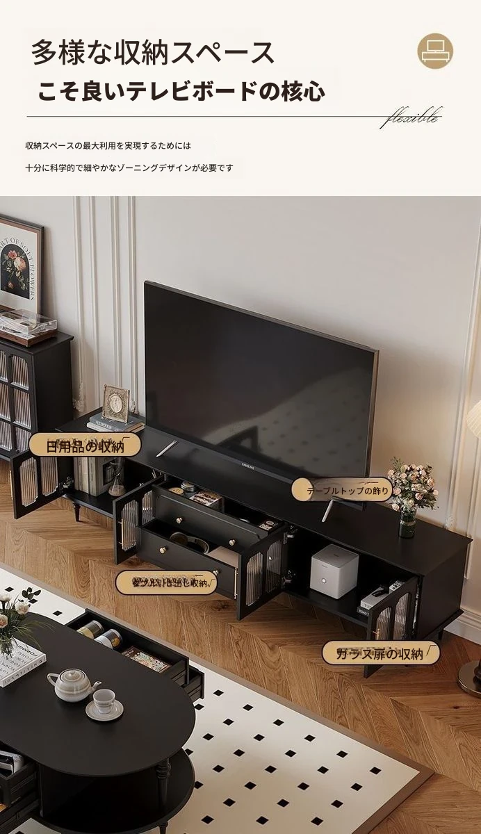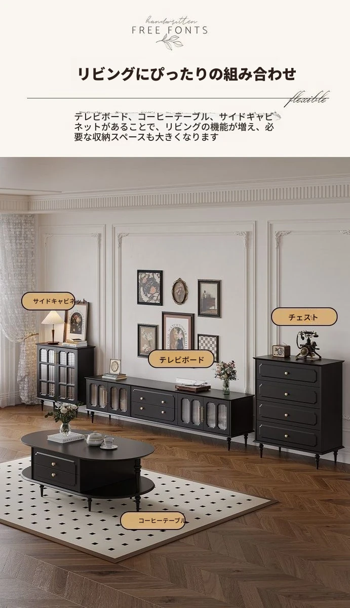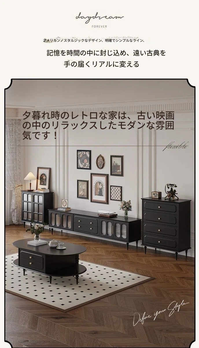 2023年新作!アメリカンレトロテレビ台&コーヒーテーブルセット - フランス風デザインの小型リビングにぴったりな本格的な木製ブラックテレビボード!おしゃれで機能的、理想の空間を演出します。