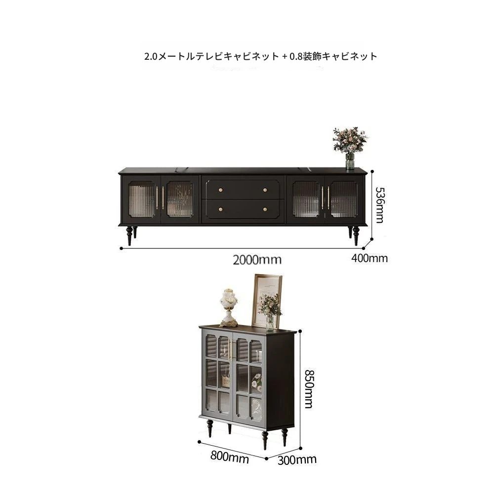 2.0メートルテレビキャビネット+0.8メートルサイドキャビネット