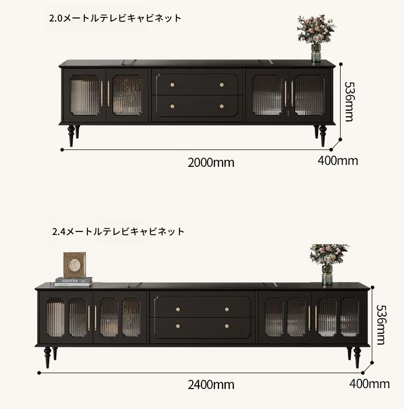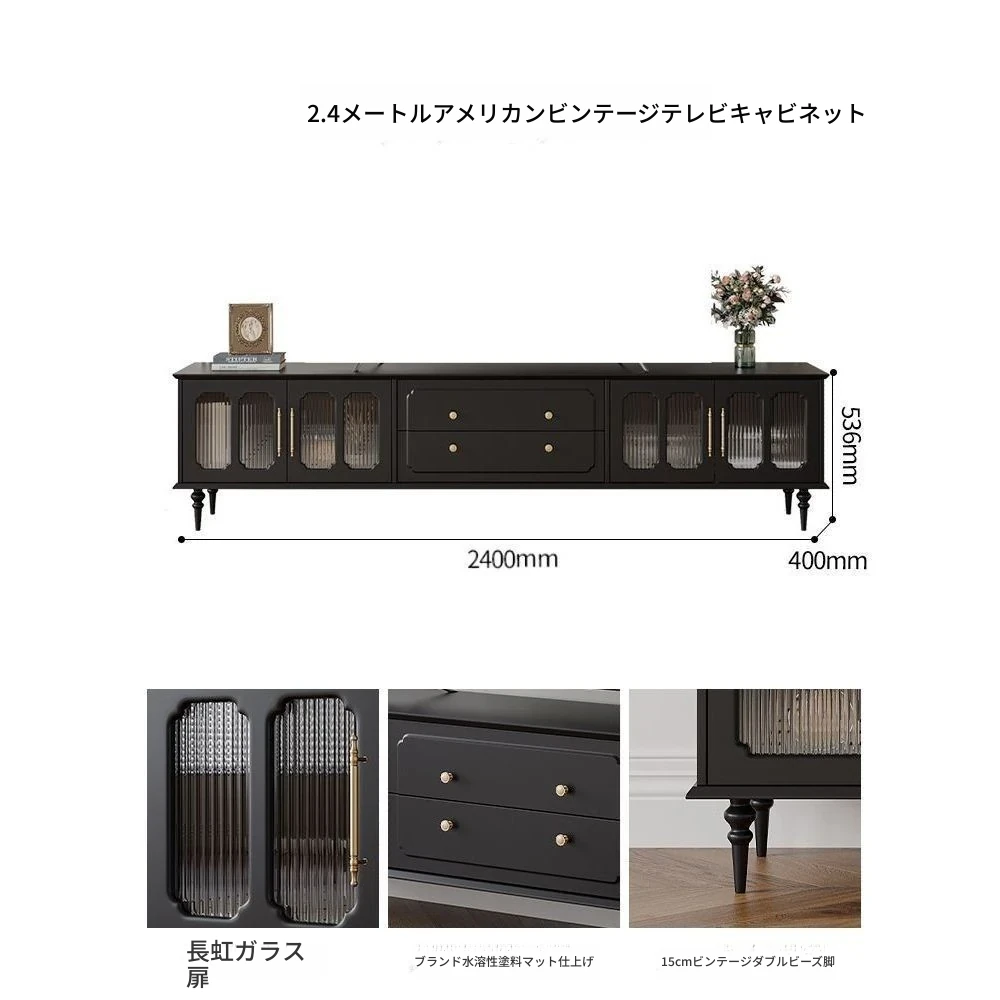 2.4メートルテレビキャビネット(レトロディープスカ黒)