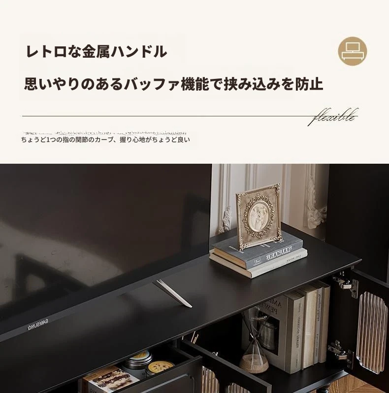 1.8メートルテレビキャビネット(レトロディープスカ黒)
