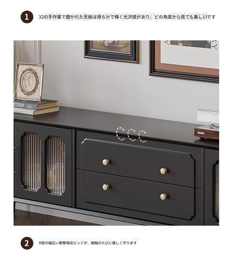 2.2メートルテレビキャビネット(レトロディープスカ黒)