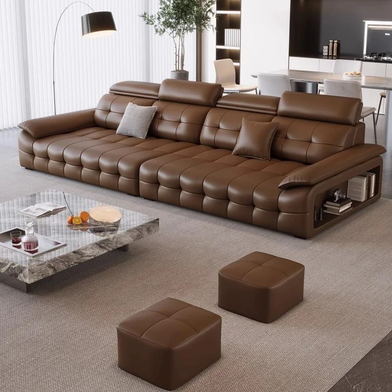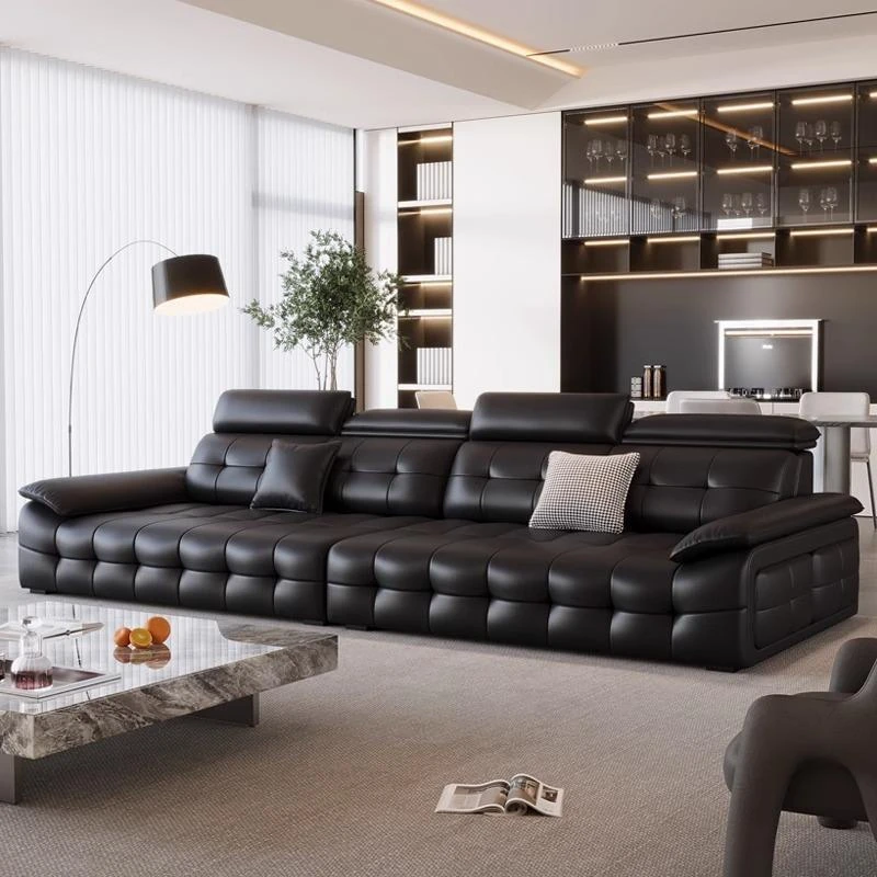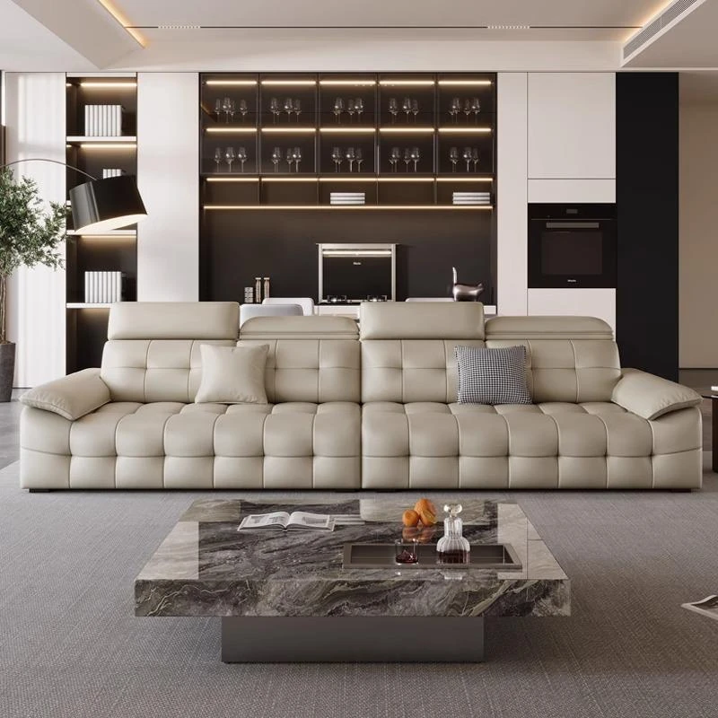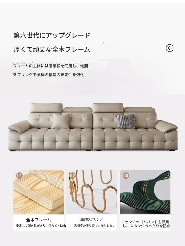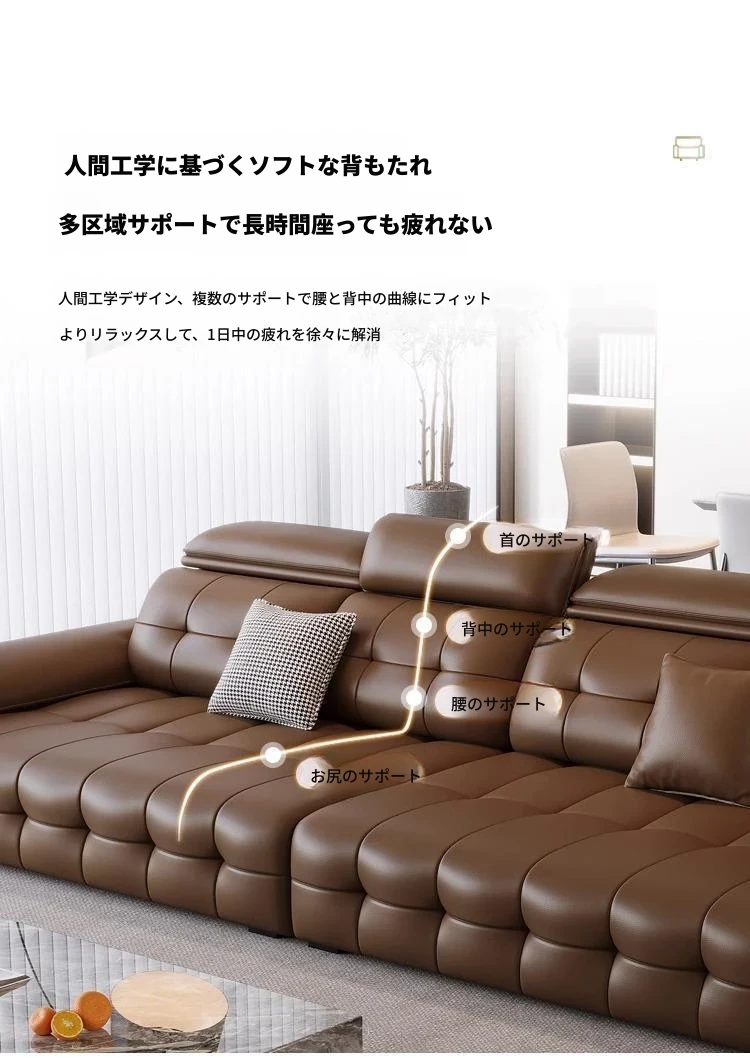 2024年最新モデル!イタリアンラグジュアリー・本革製モダン簡約スタイルの高級リビングルーム用ソファセット - エレガントなデザインで快適なひとときを!