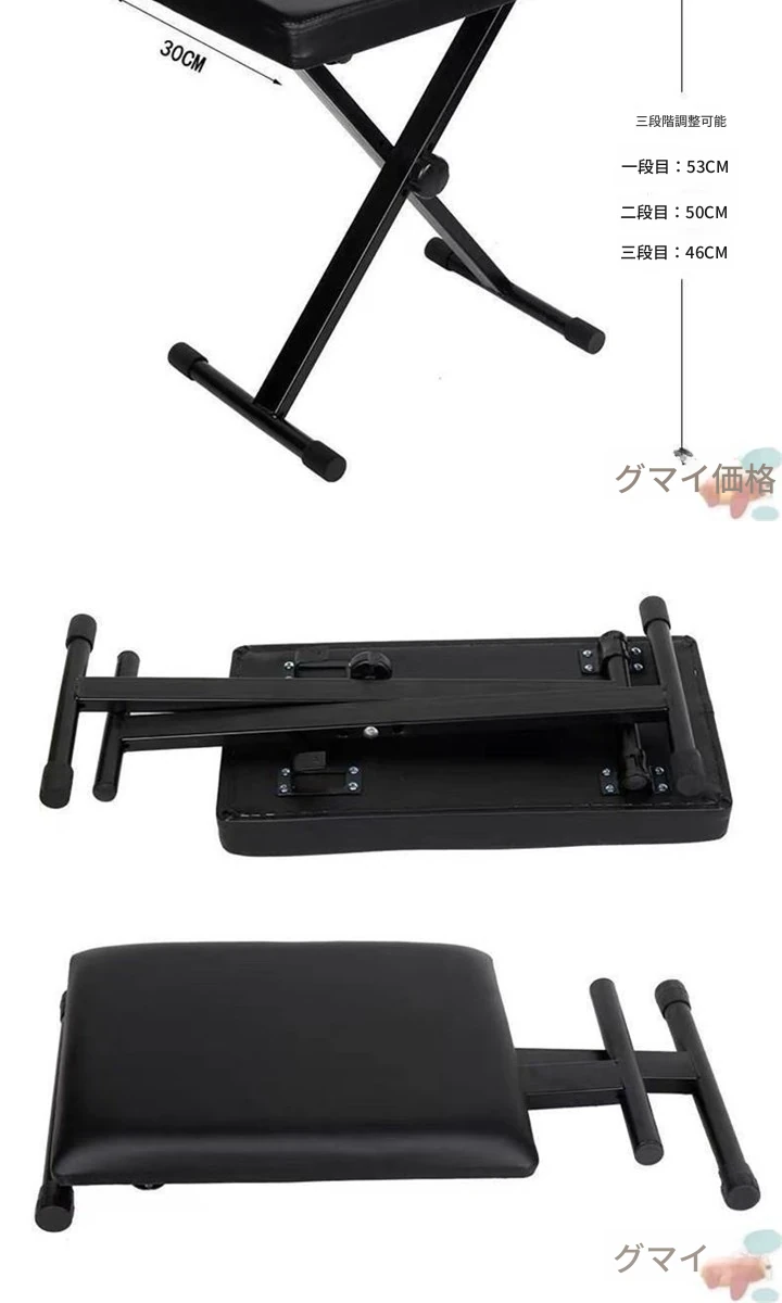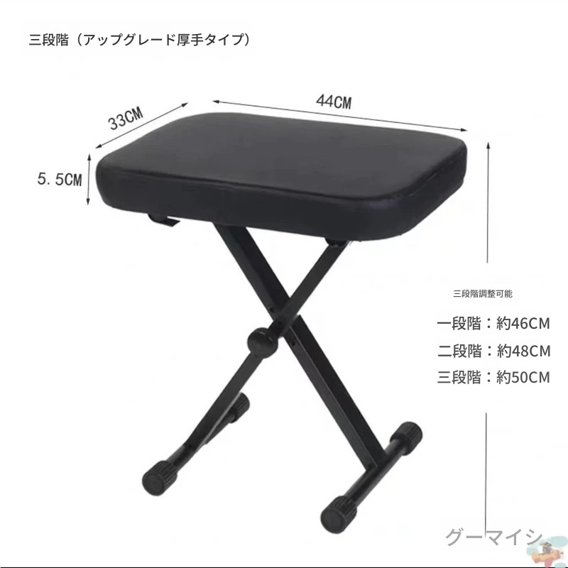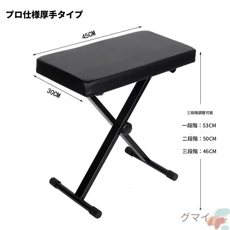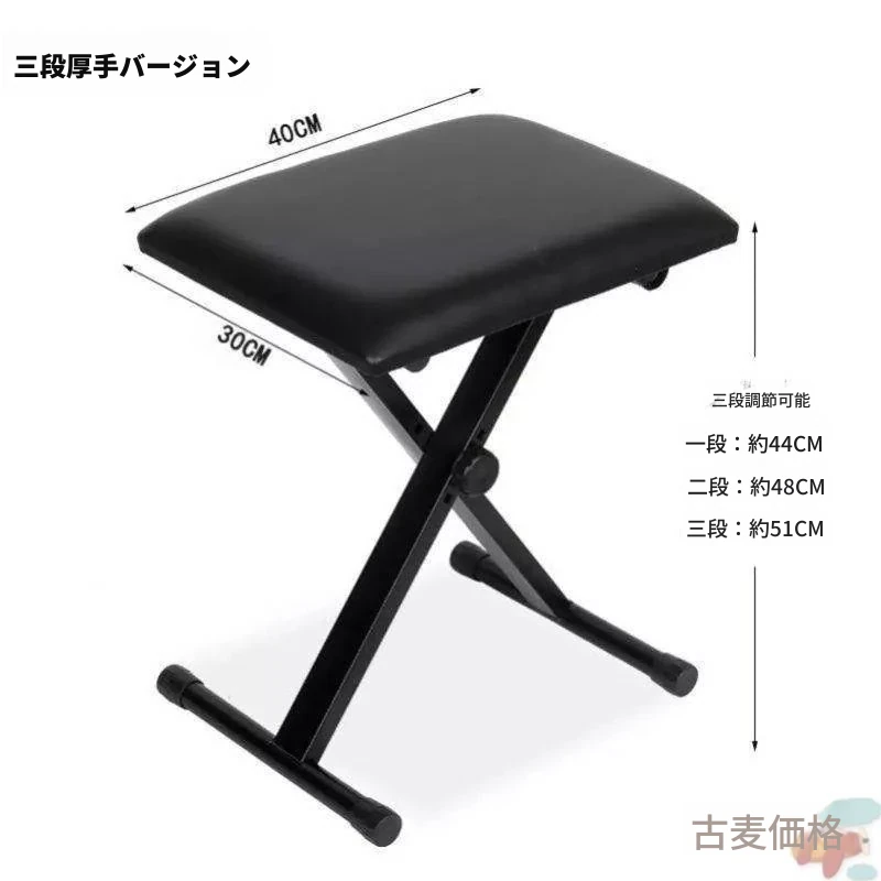 三段厚手電子琴X凳-黒色