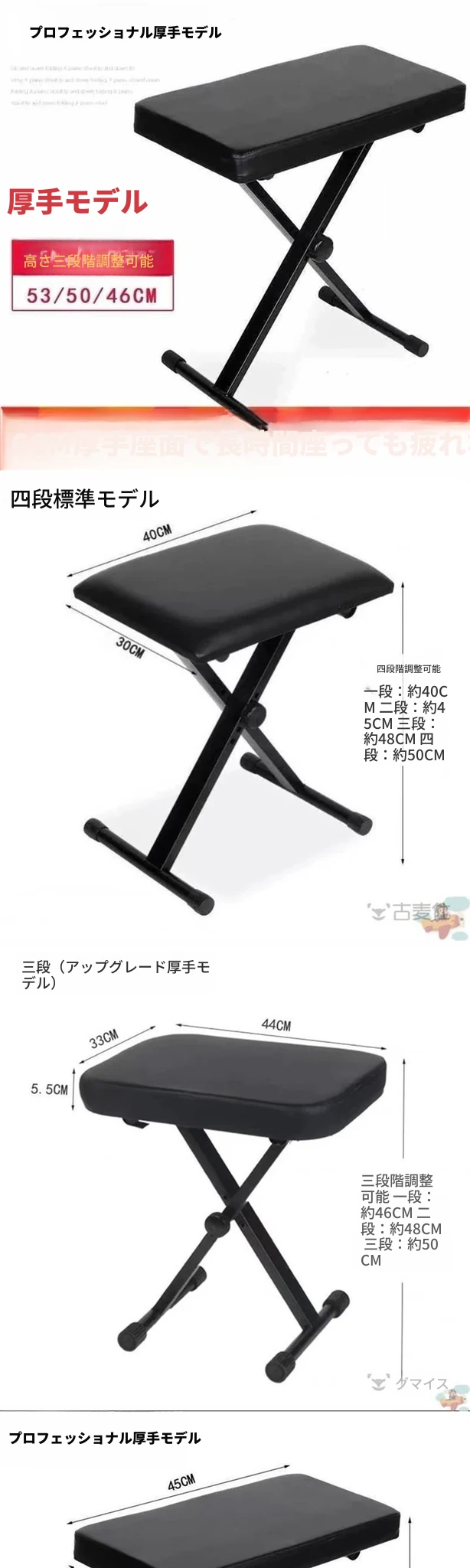 四段厚手電子琴X凳-黒色