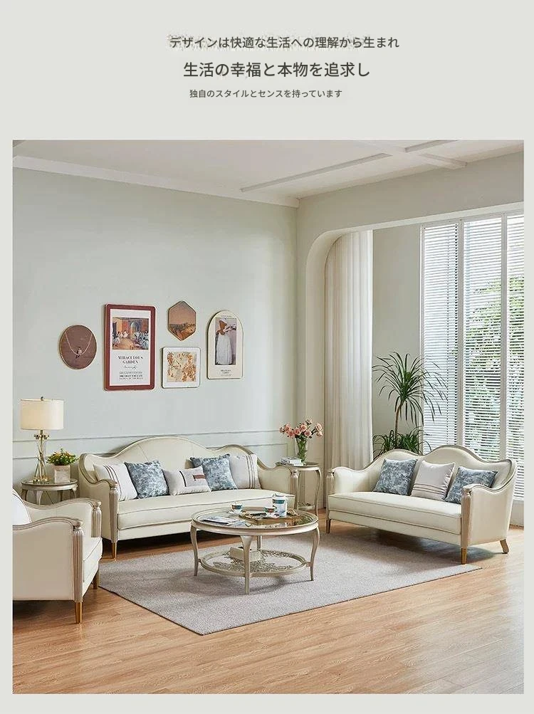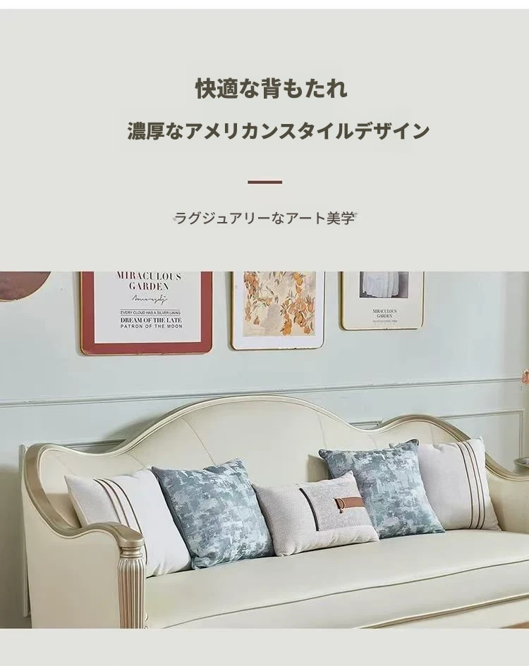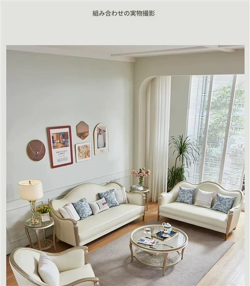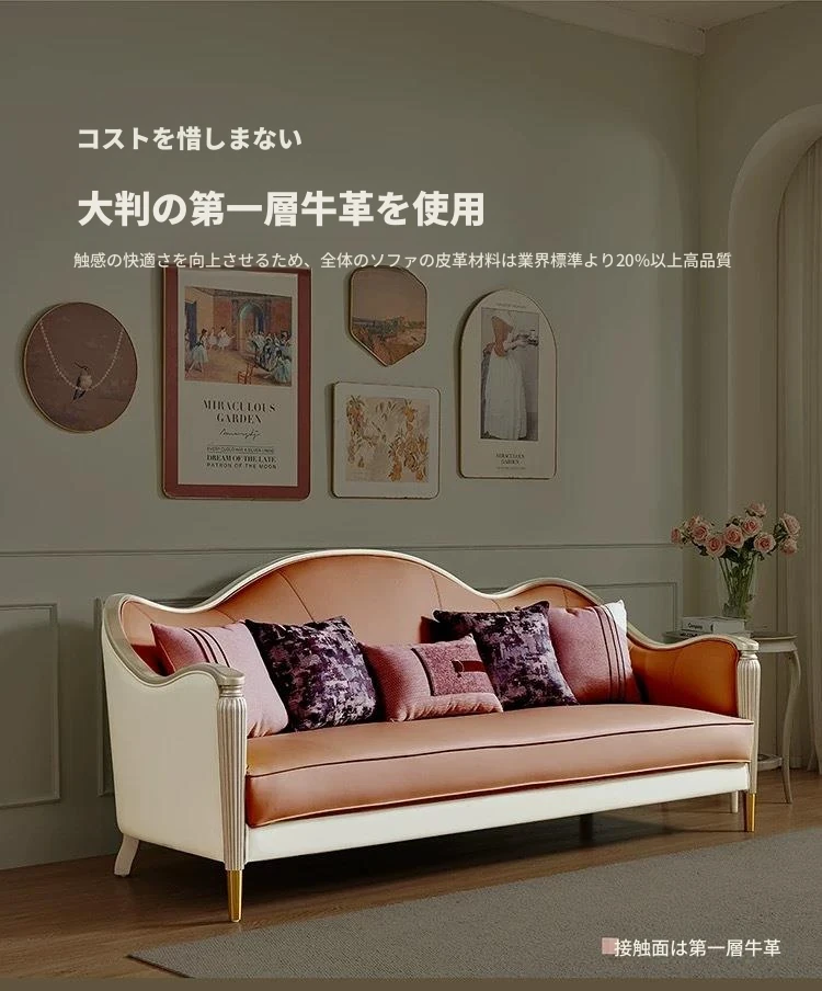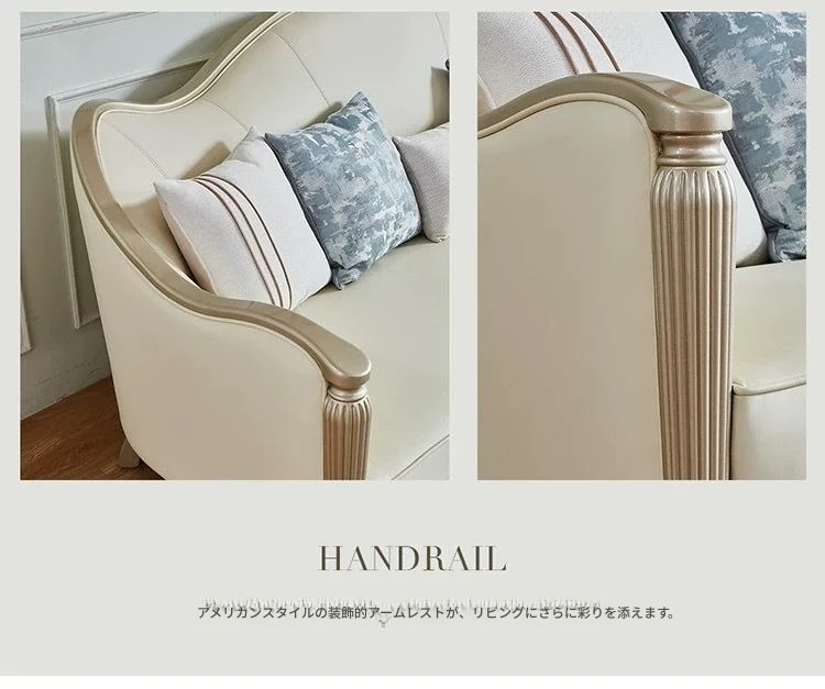 アメリカン・ライトラグジュアリー フレンチスタイル 本革・無垢材ソファ 123コンビネーション サイズ別対応 リビングルームに最適な皮革家具 全室コーディネート可能!
