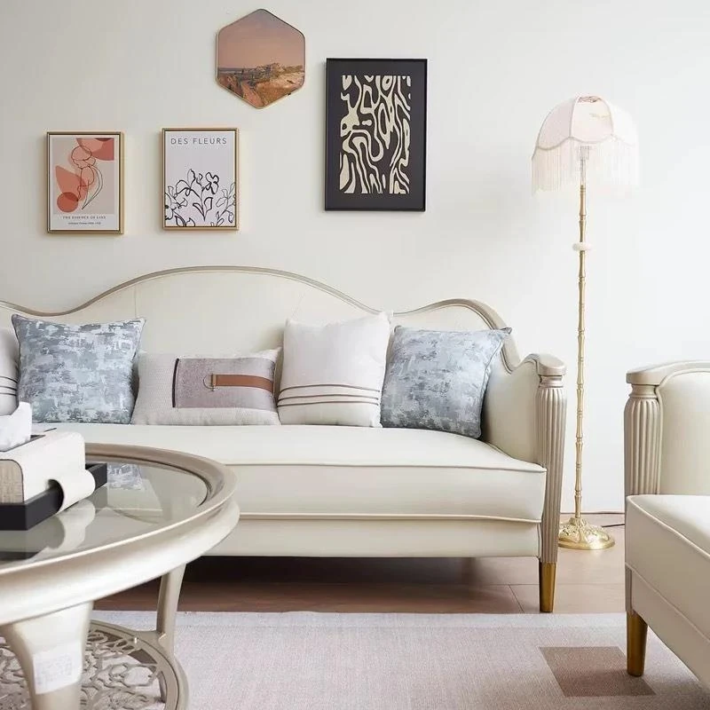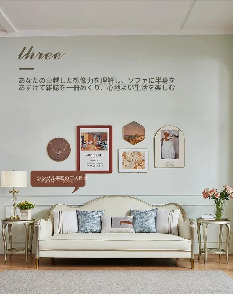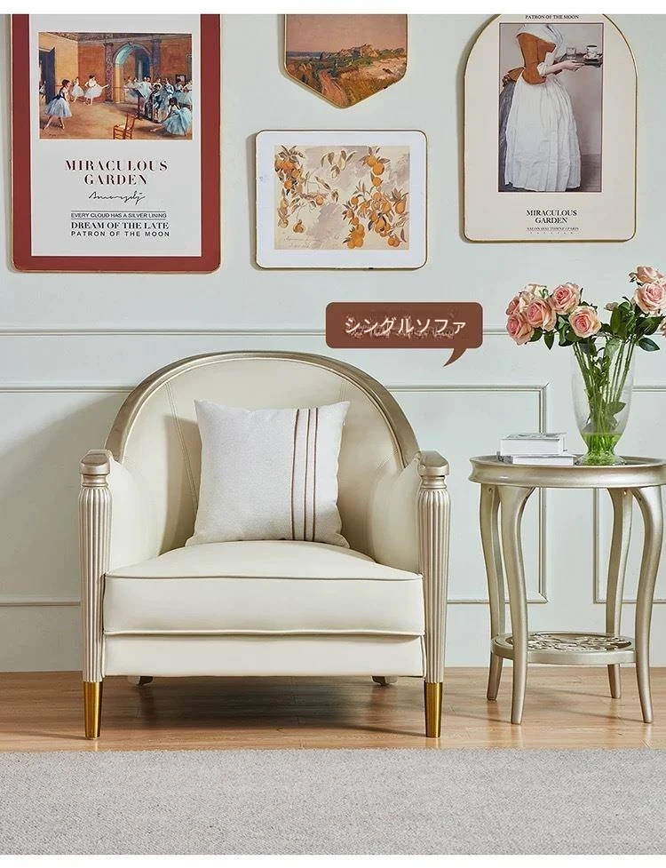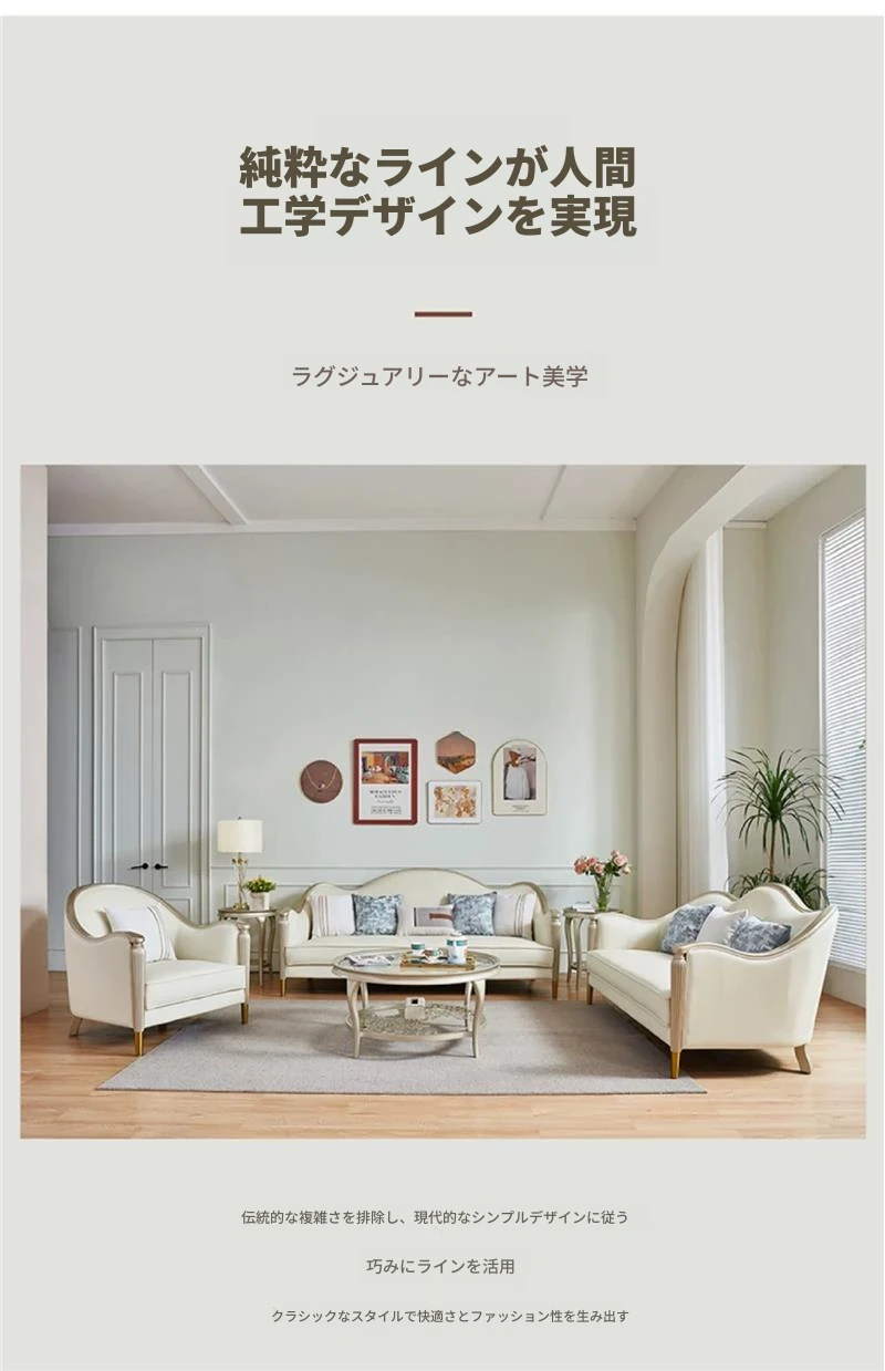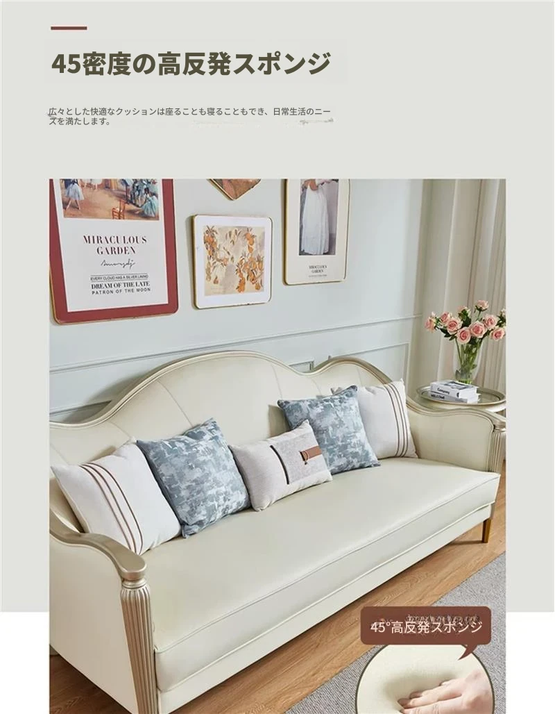 アメリカン・ライトラグジュアリー フレンチスタイル 本革・無垢材ソファ 123コンビネーション サイズ別対応 リビングルームに最適な皮革家具 全室コーディネート可能!