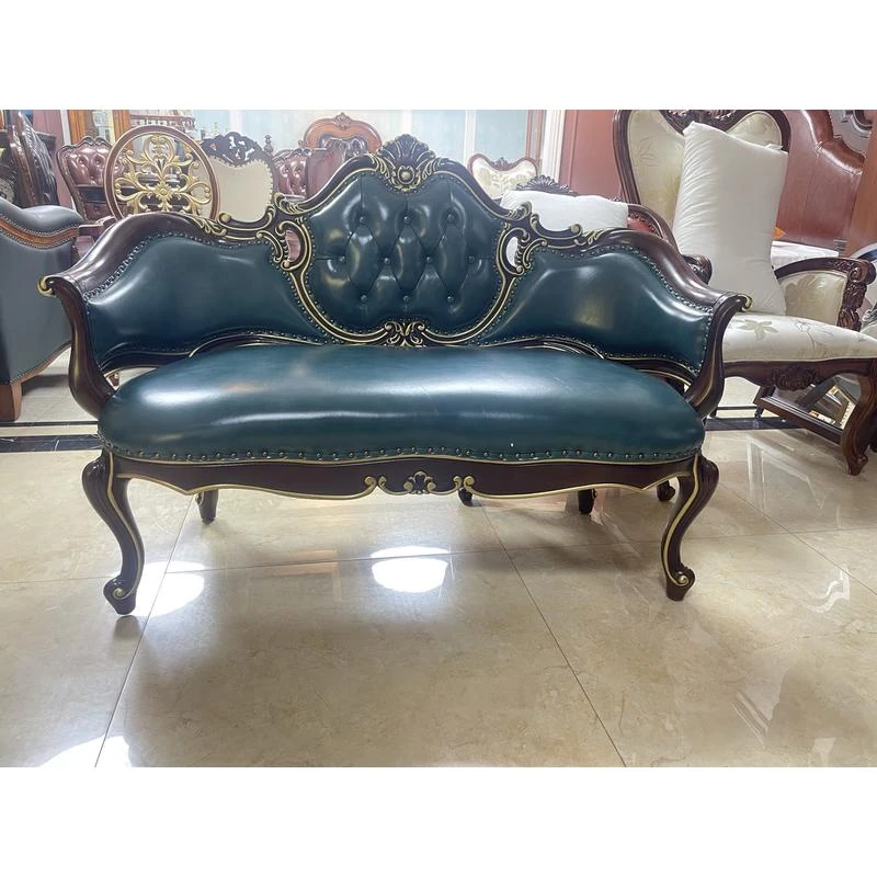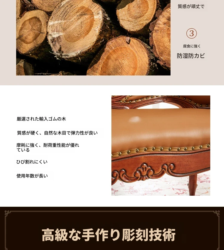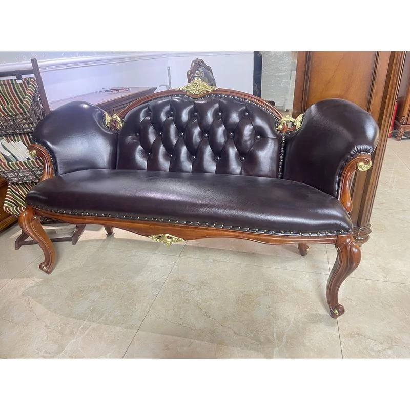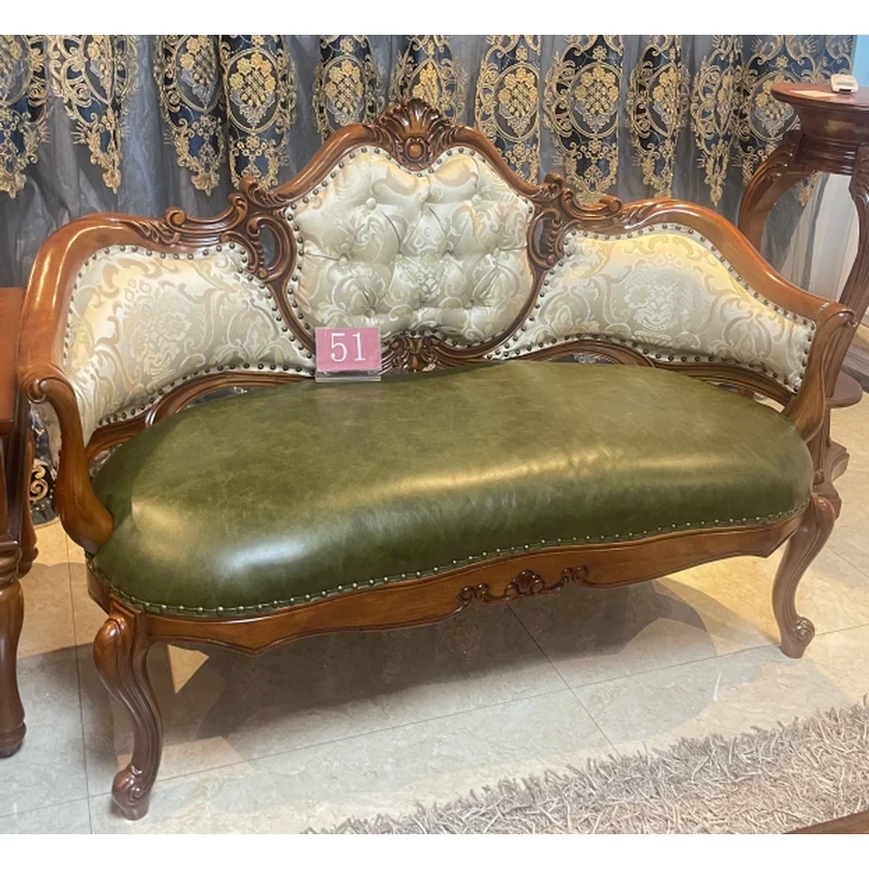 アメリカンスタイルの全木製フットレスト付き本革ソファチェア - 彫刻デザインのリビングルーム用談話椅子、リラックスできるヨーロピアンスタイルのレイジーチェア、ベッドサイドベンチにも最適!
