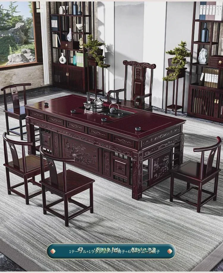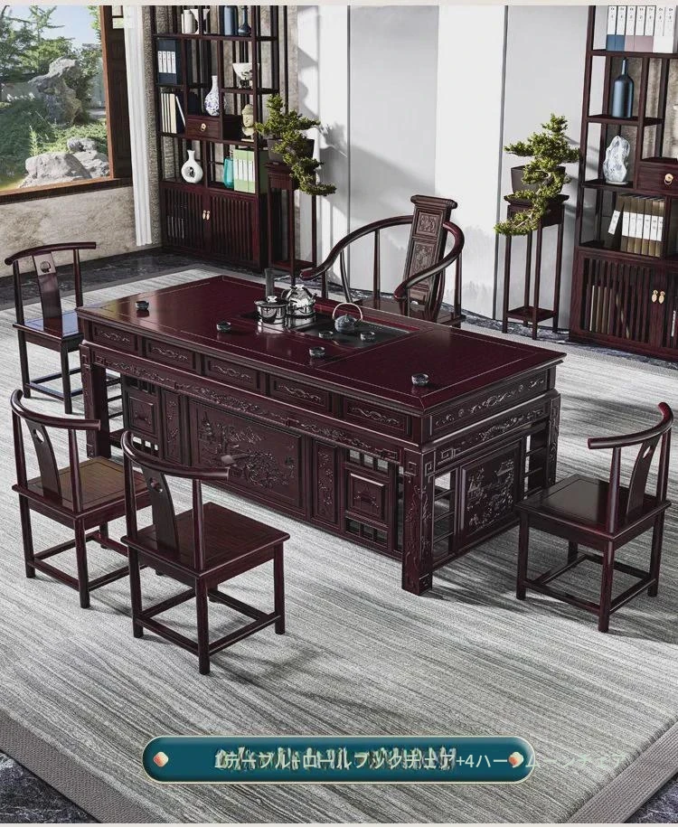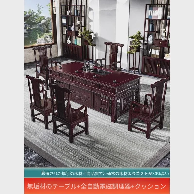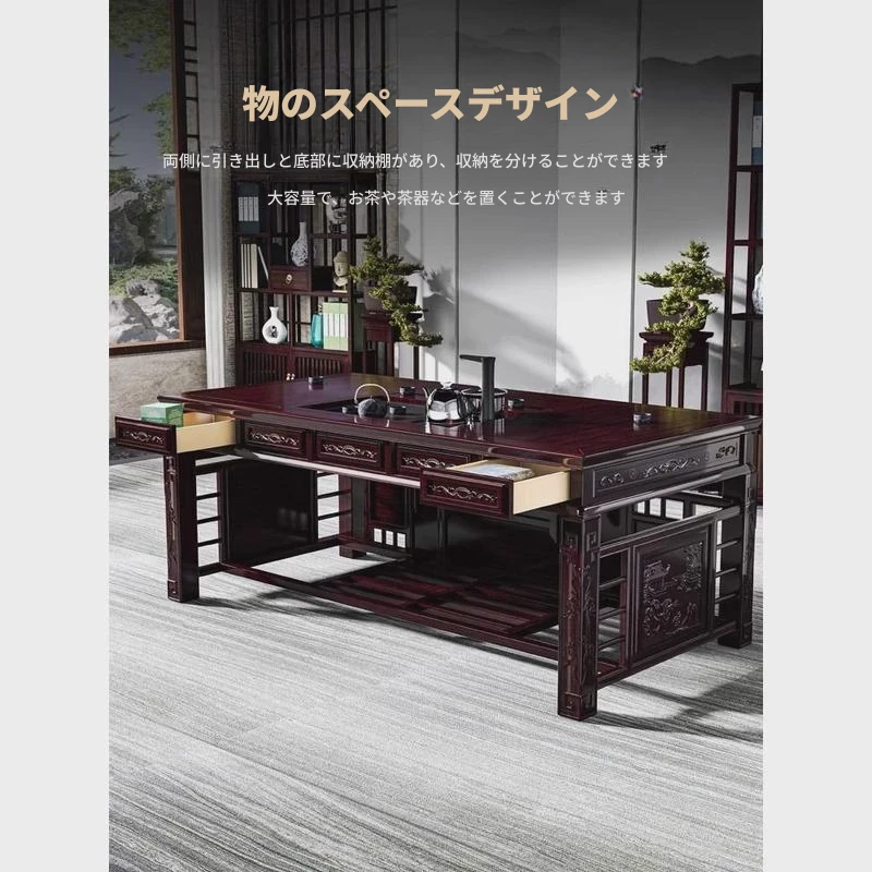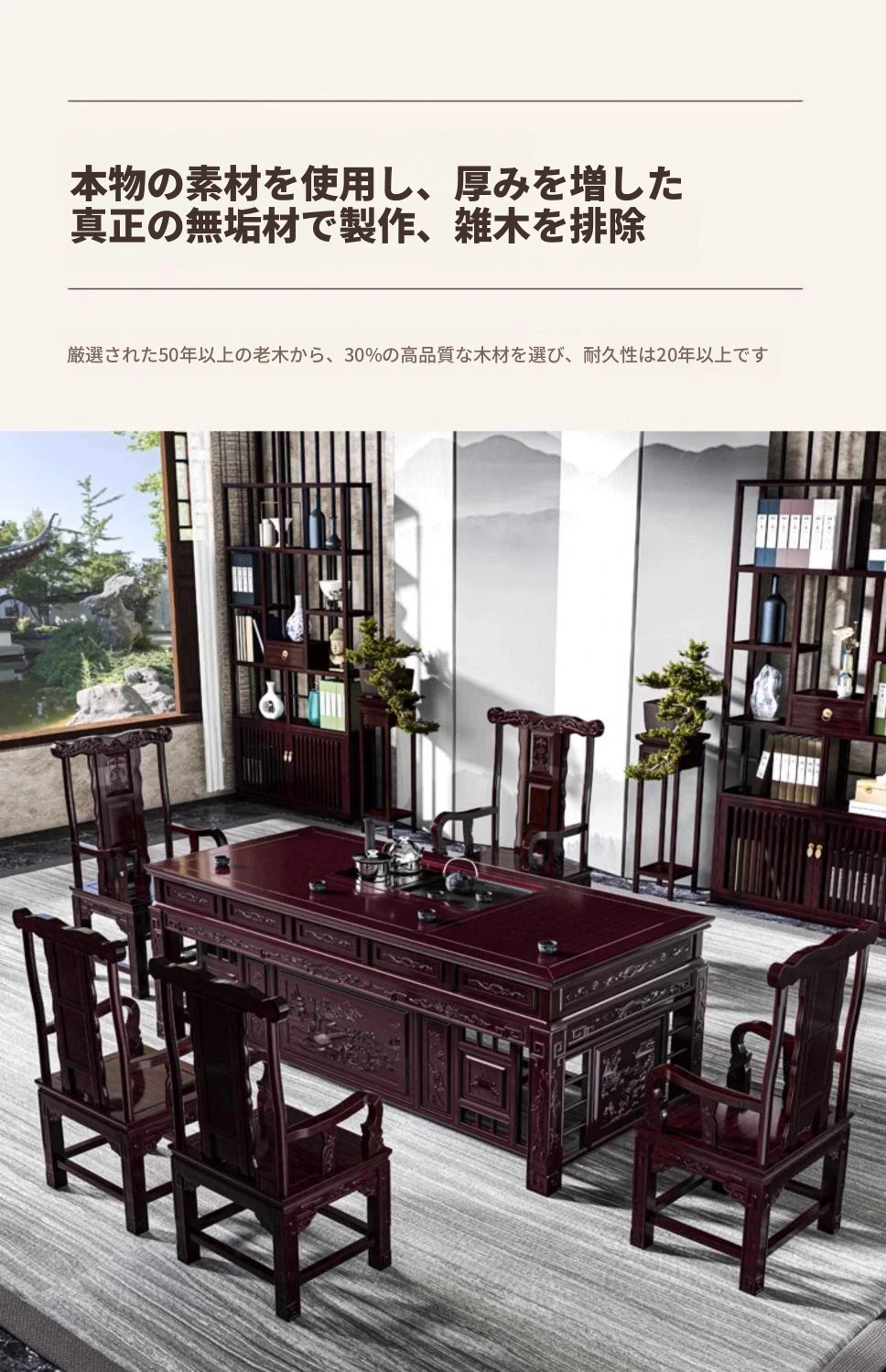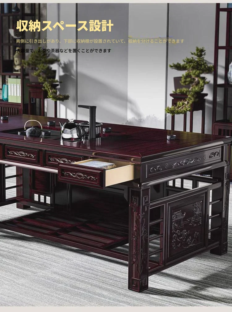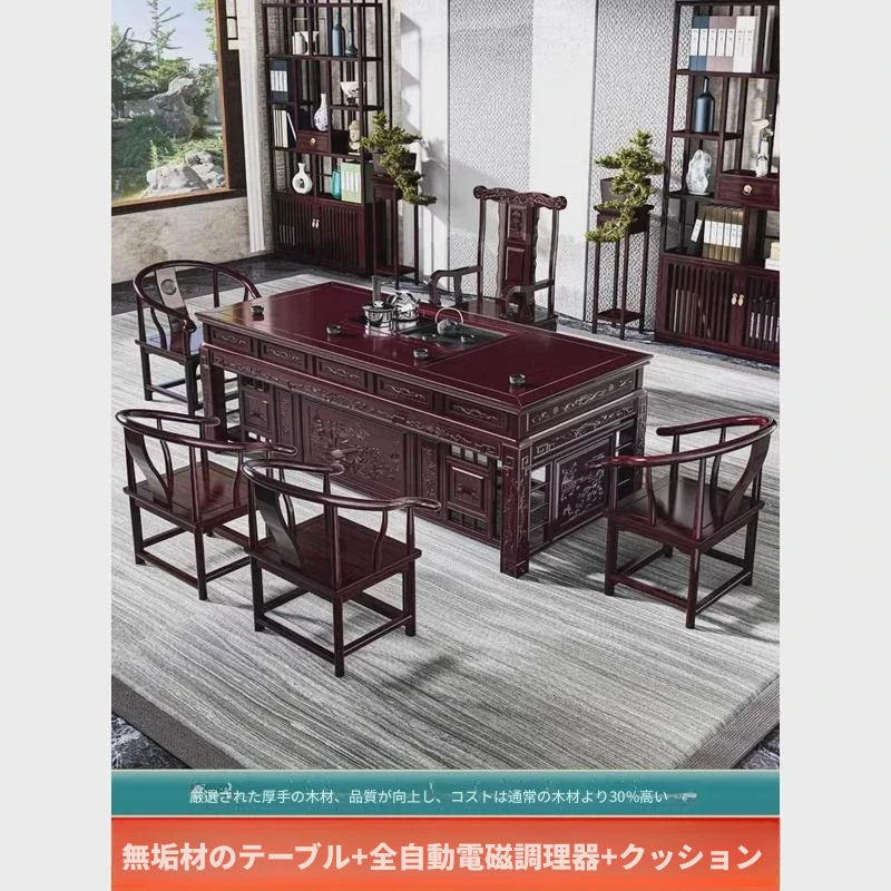 中華スタイルの無垢材製茶卓セット!楡の木を使用した高級感あふれるデザイン。オフィスや家庭での功夫茶体験に最適な一体型茶卓。リラックスしたひとときをお楽しみください!