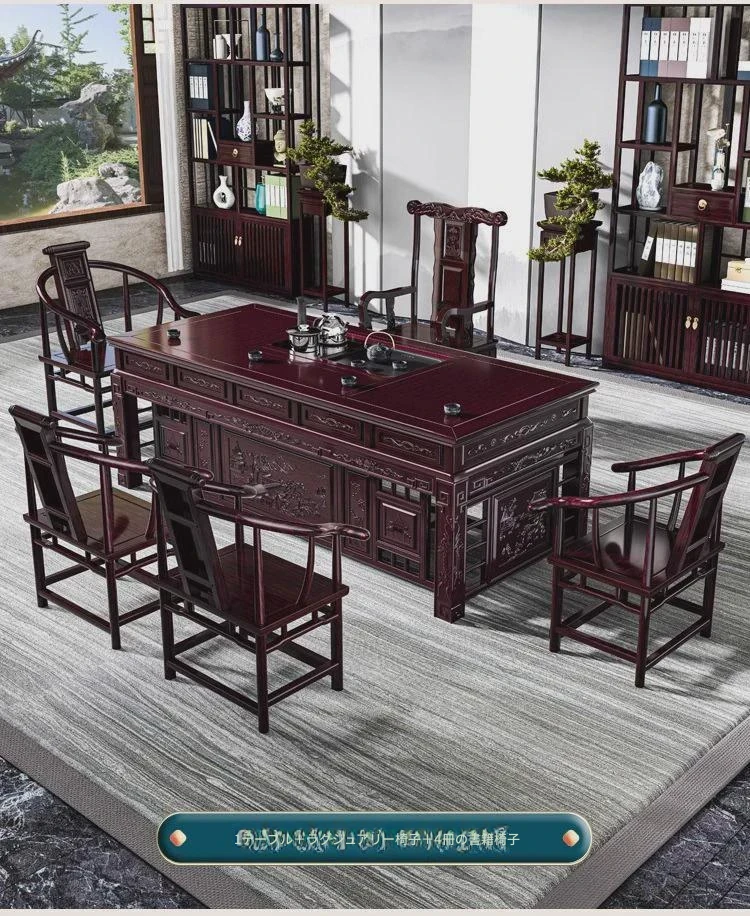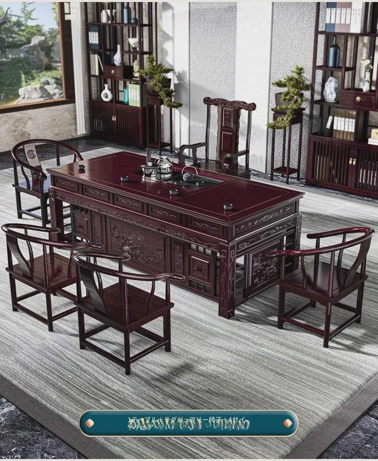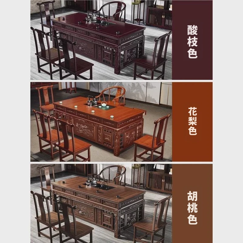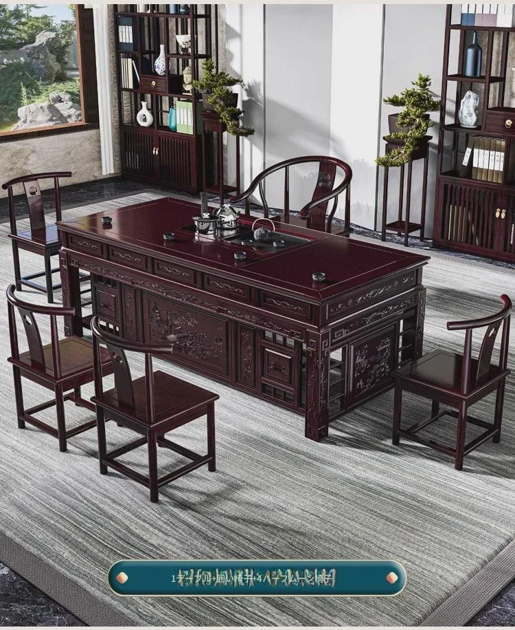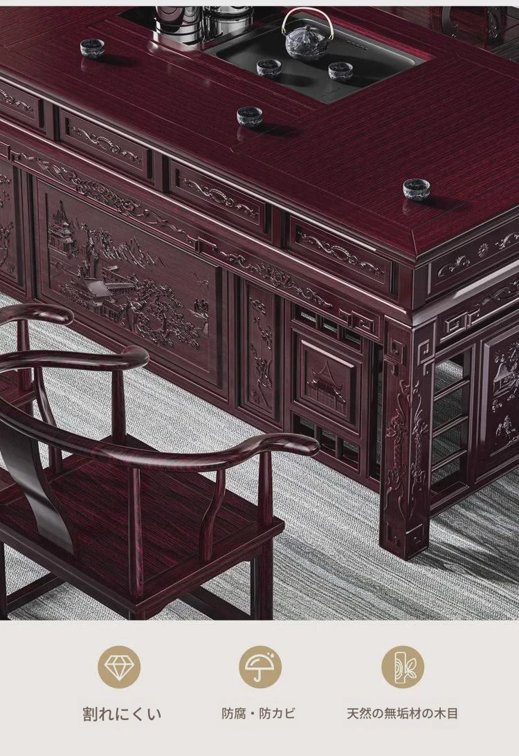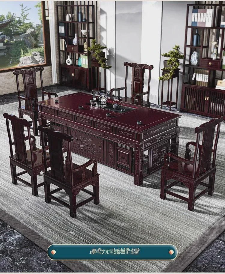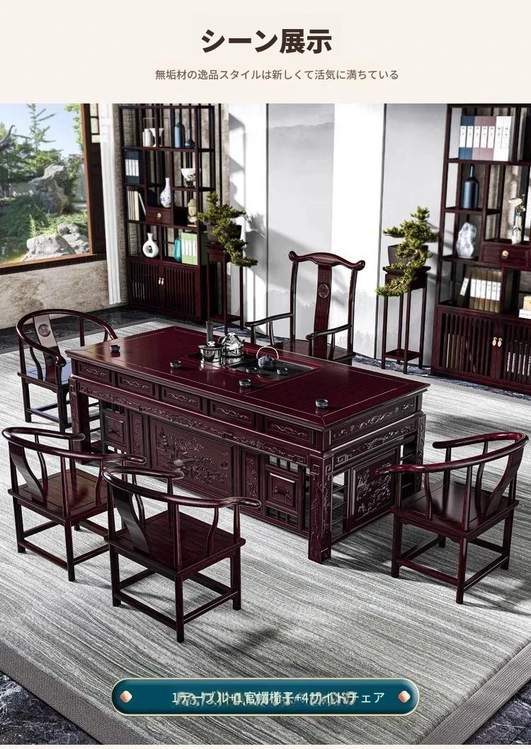 中華スタイルの無垢材製茶卓セット!楡の木を使用した高級感あふれるデザイン。オフィスや家庭での功夫茶体験に最適な一体型茶卓。リラックスしたひとときをお楽しみください!