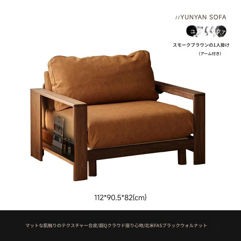 崇匠家具のブラックウォールナット無垢材を使用したシンプルモダンな一人掛けソファチェア。リラックスした読書タイムにぴったりの中世風デザイン。快適さとスタイルを兼ね備えた、あなたの特別な空間を演出します!
