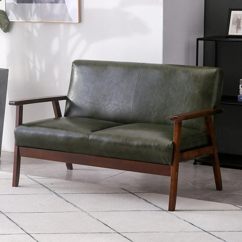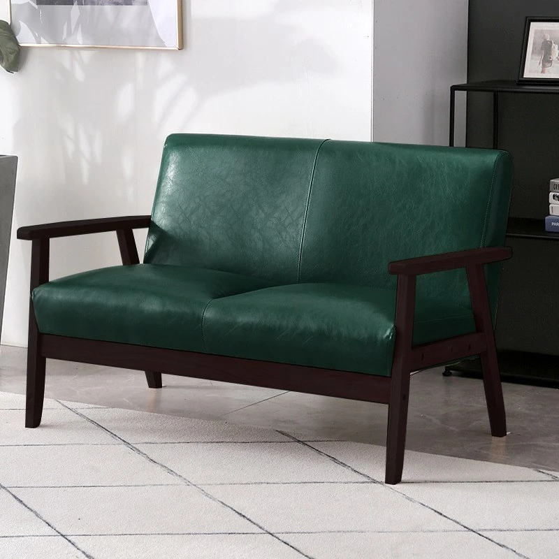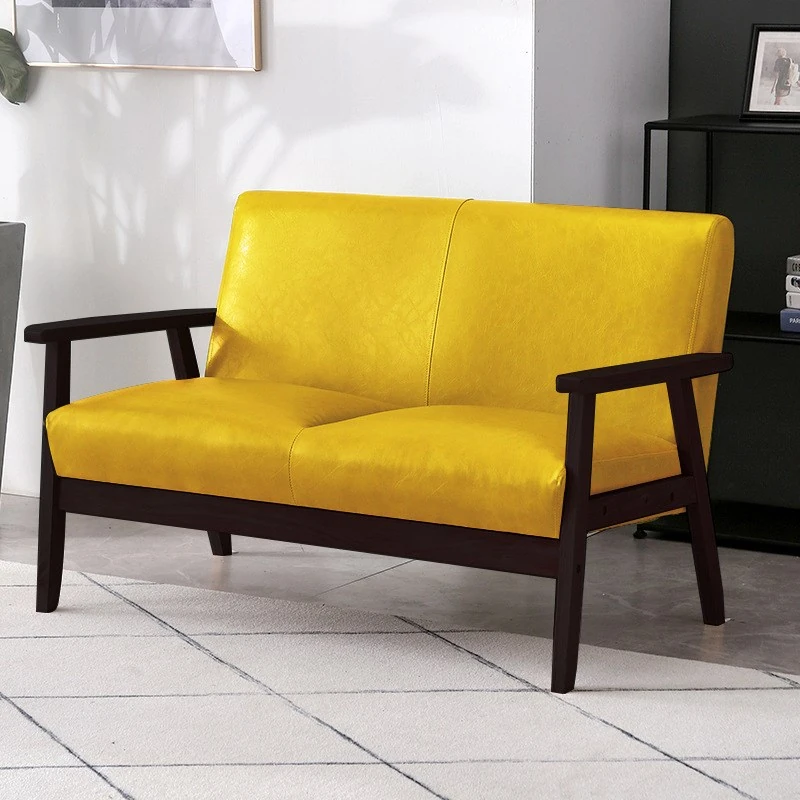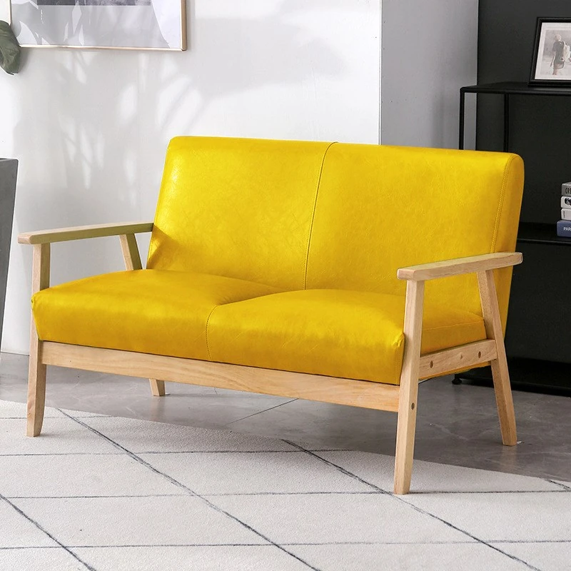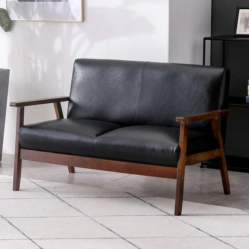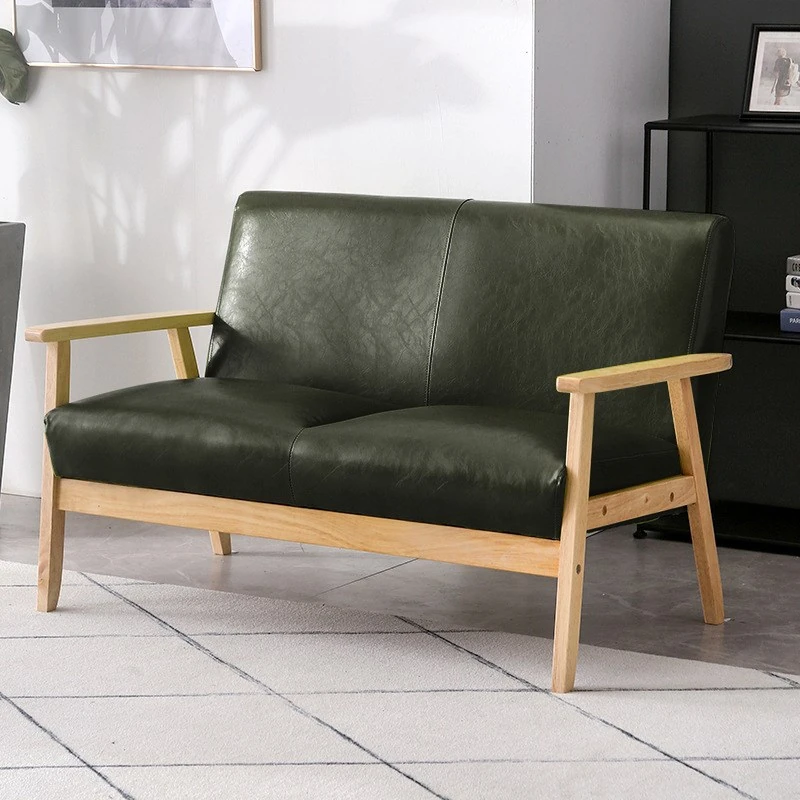 ミニサイズの革製ソファ - シンプルでスタイリッシュなデザイン!1人用・2人用・3人用、天然木フレームと布製カバーで、小さな部屋やリビングにぴったり。コンパクトでも快適な座り心地を実現!