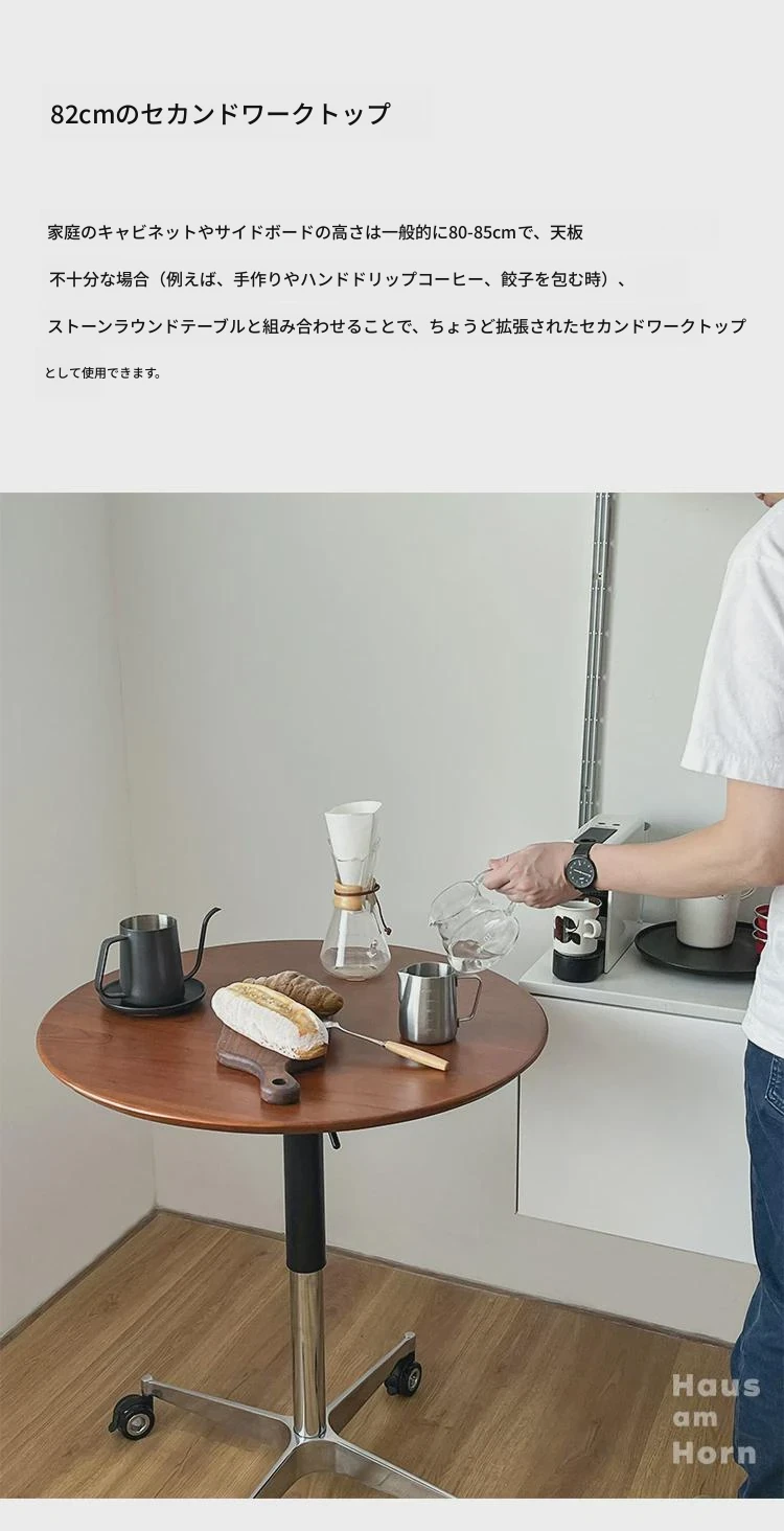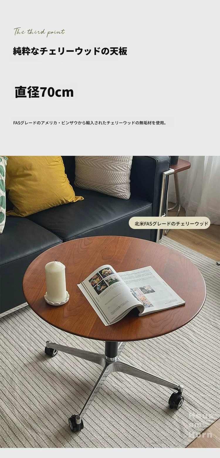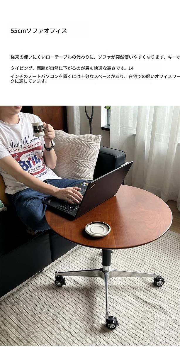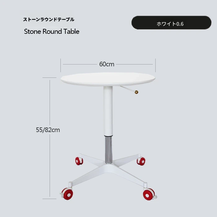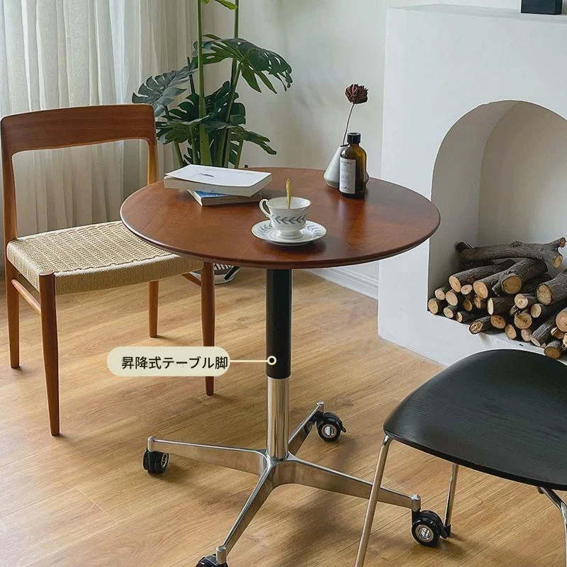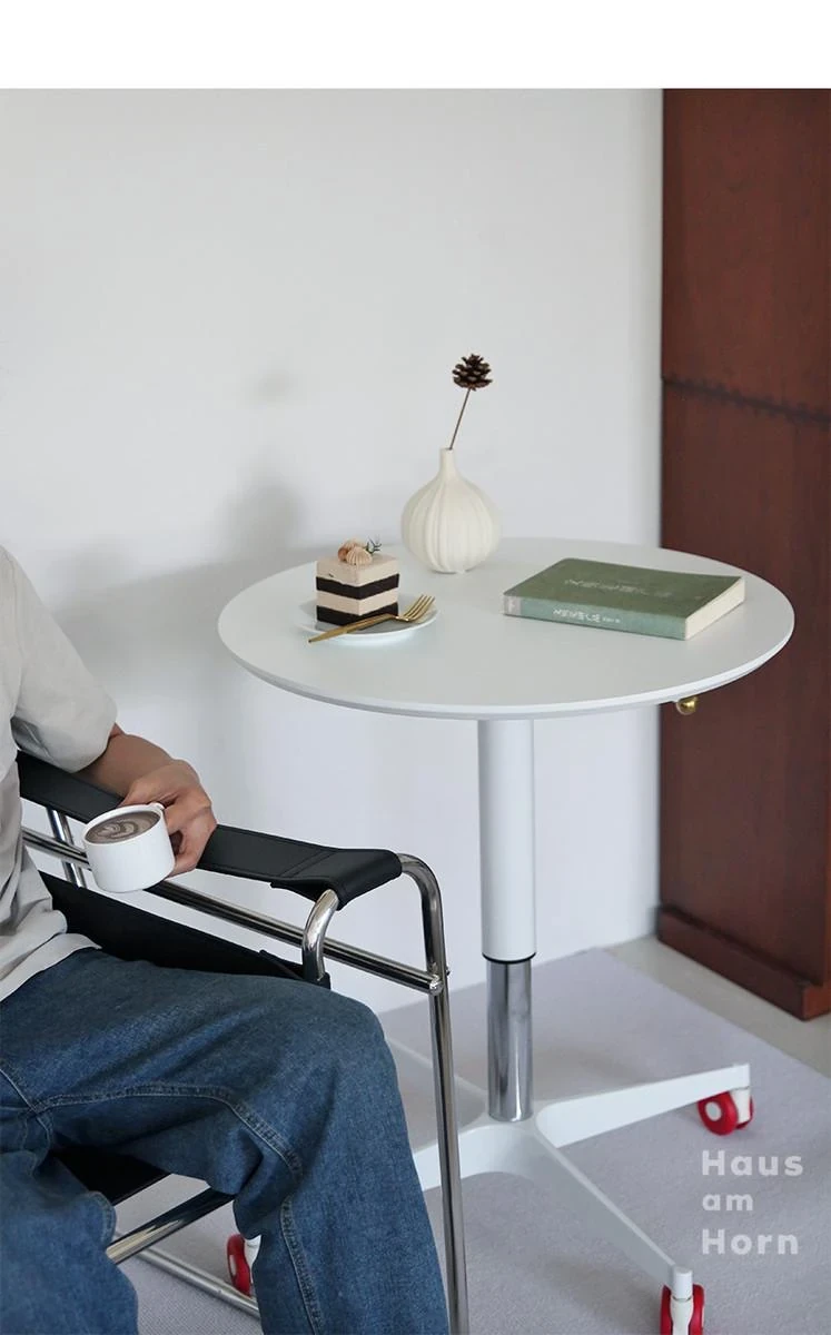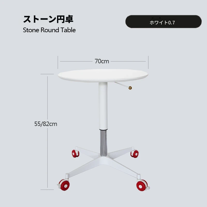 『号角屋 奥白小円卓』クリーミーな風合いの円形昇降式テーブル、移動も簡単!家庭用のリラックススペースにぴったりなサイドテーブル。