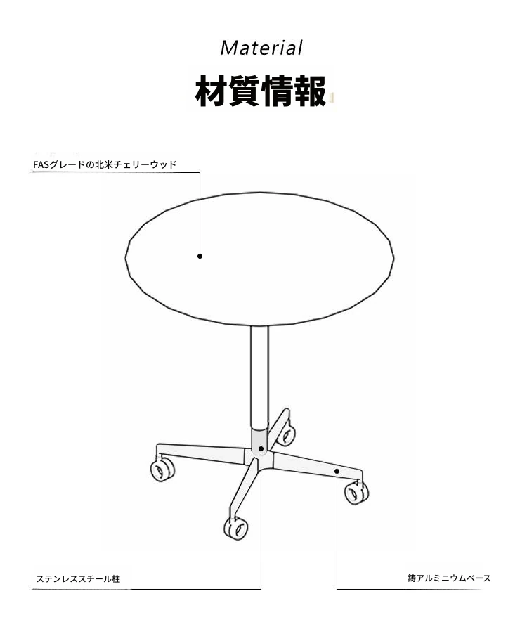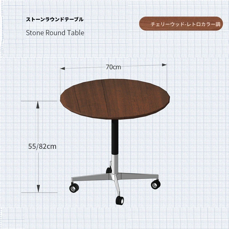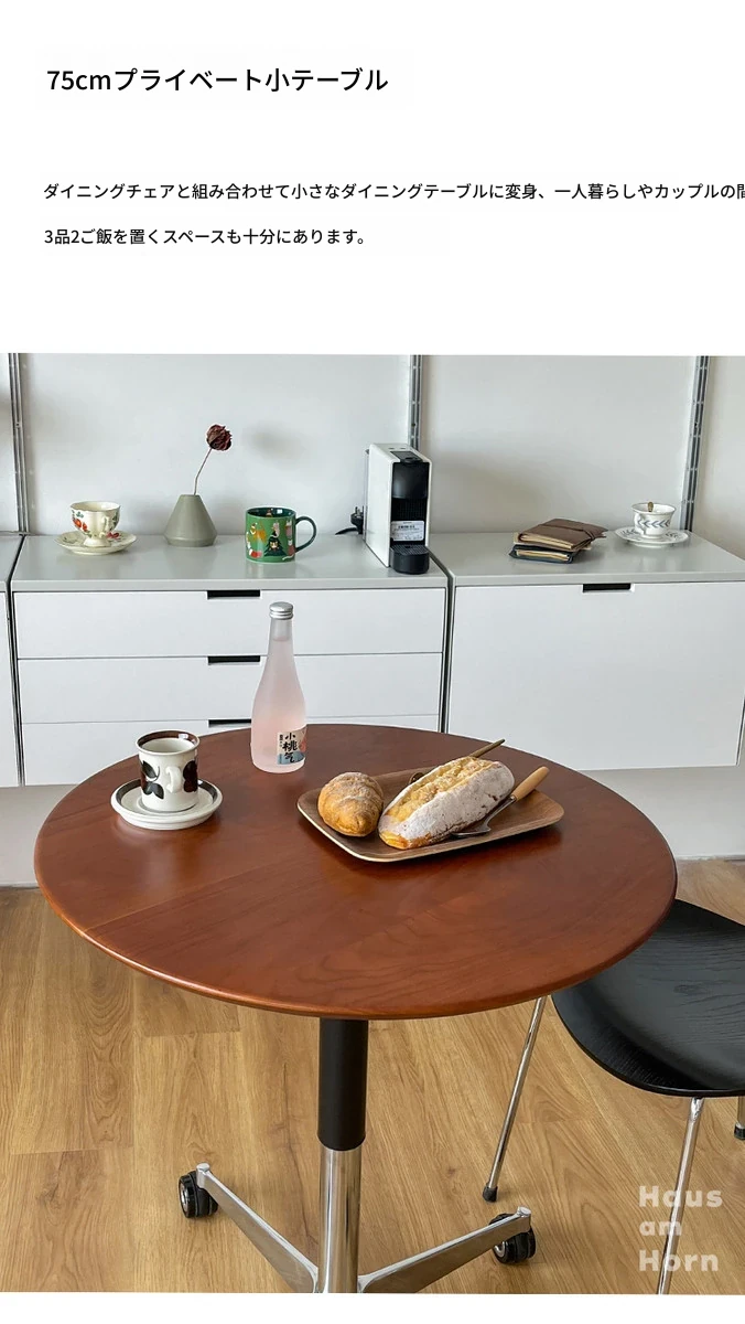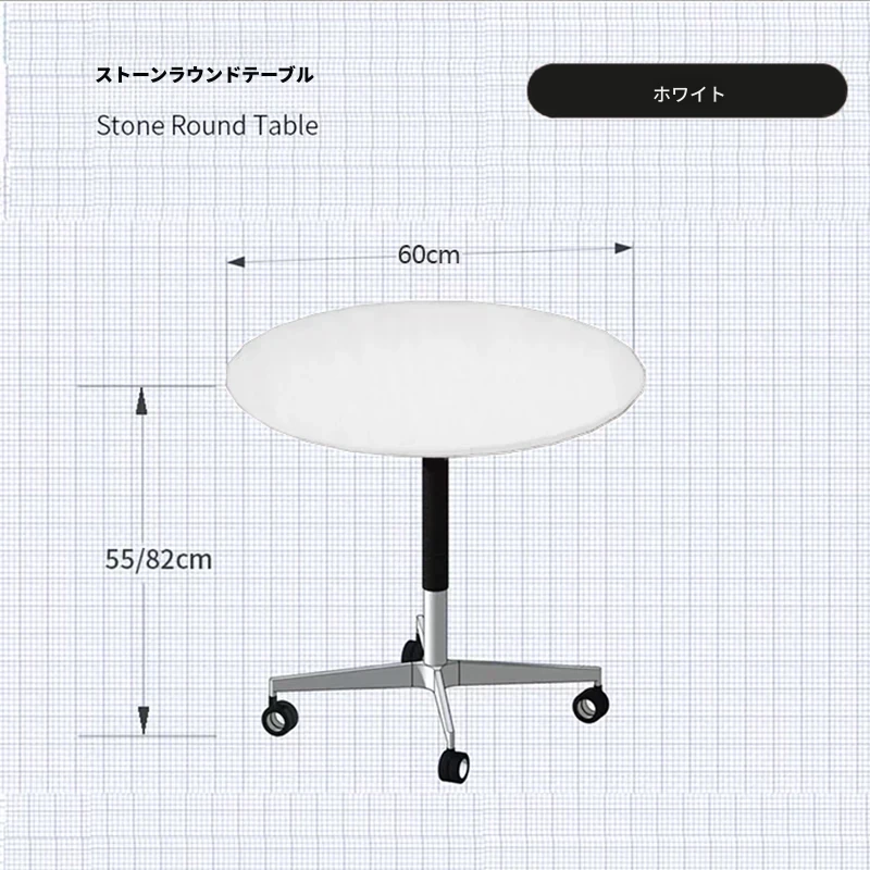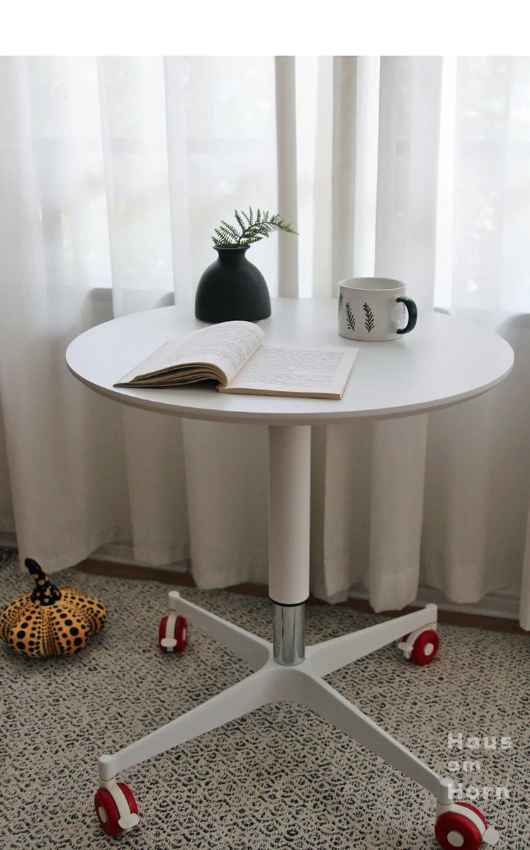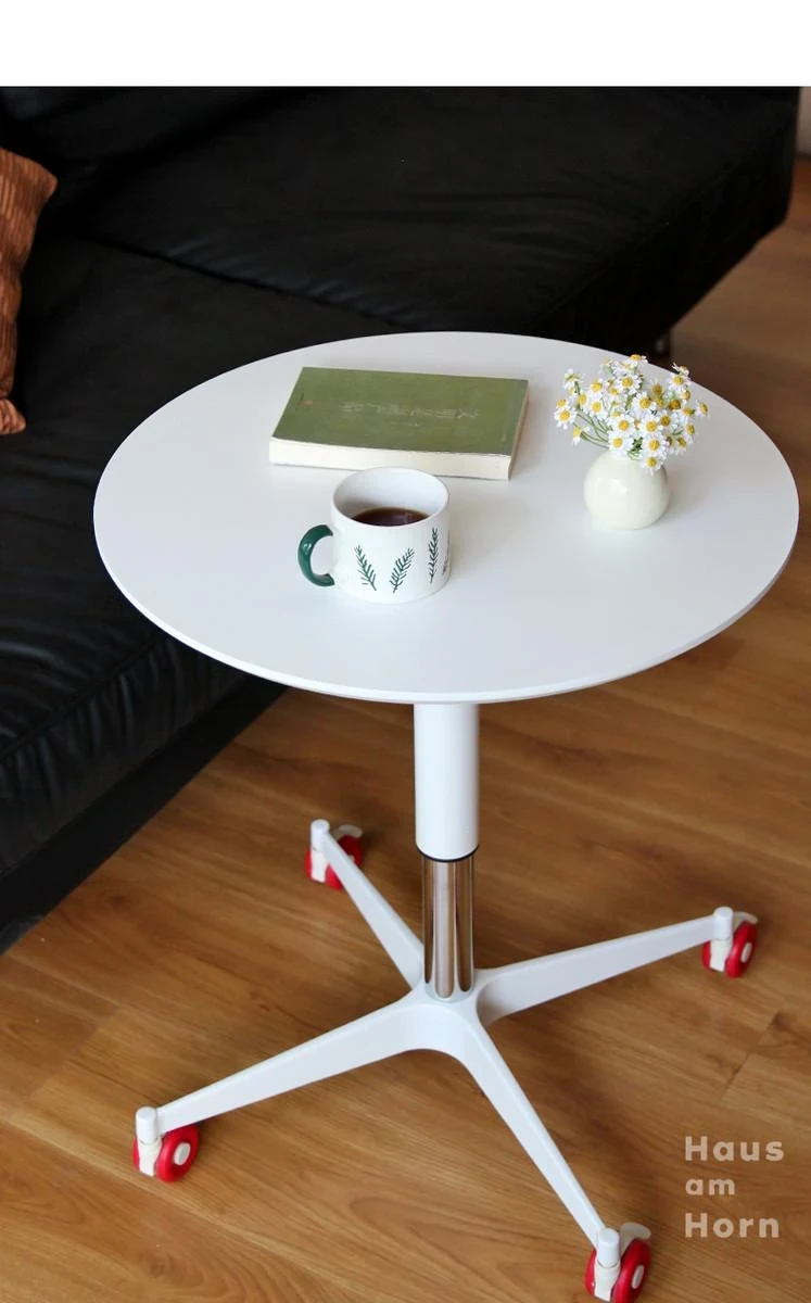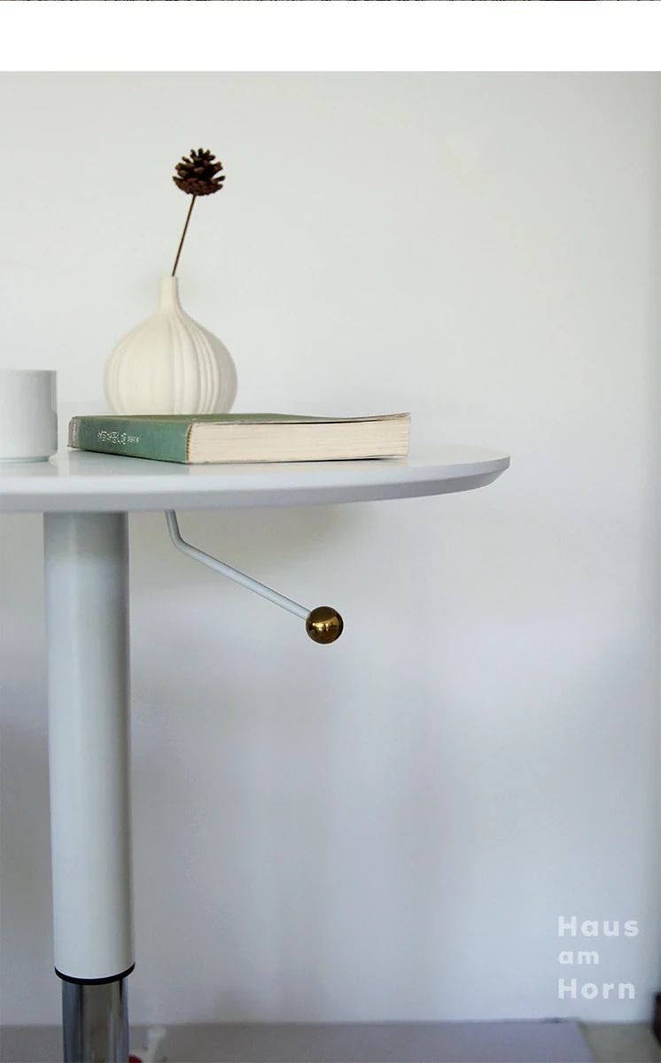 『号角屋 奥白小円卓』クリーミーな風合いの円形昇降式テーブル、移動も簡単!家庭用のリラックススペースにぴったりなサイドテーブル。