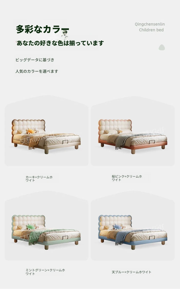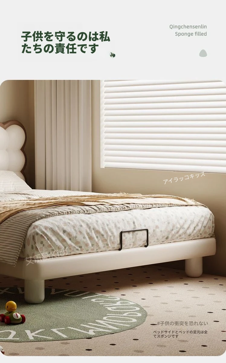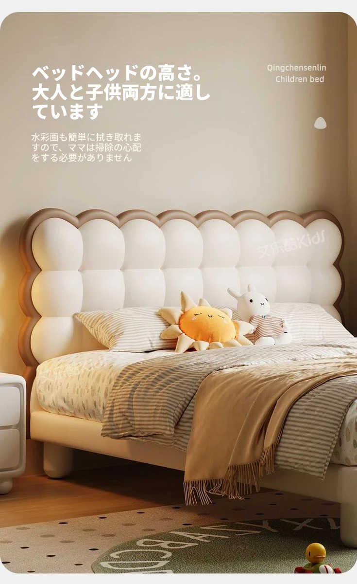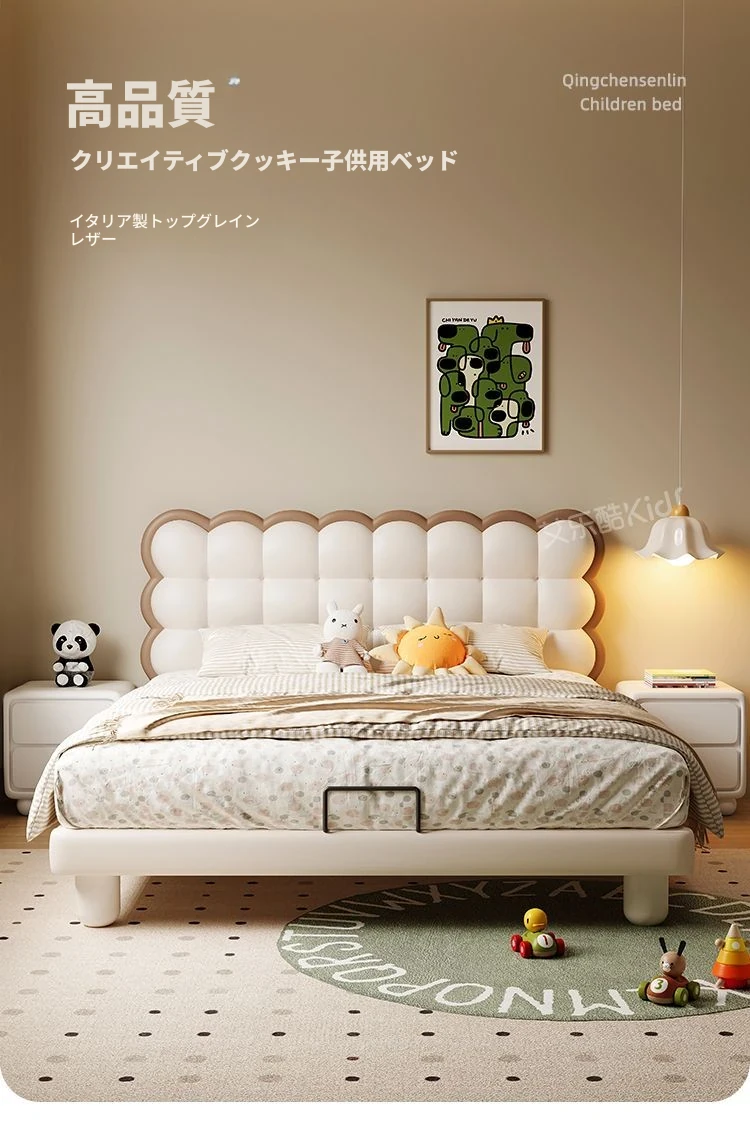 男の子にぴったり!クリエイティブなクッキー型デザインのシングルベッド。シンプルでモダンなスタイル、移動可能なヘッドボード、上質な本革使用。子供部屋をおしゃれに彩るベッドで、快適な睡眠をサポートします!