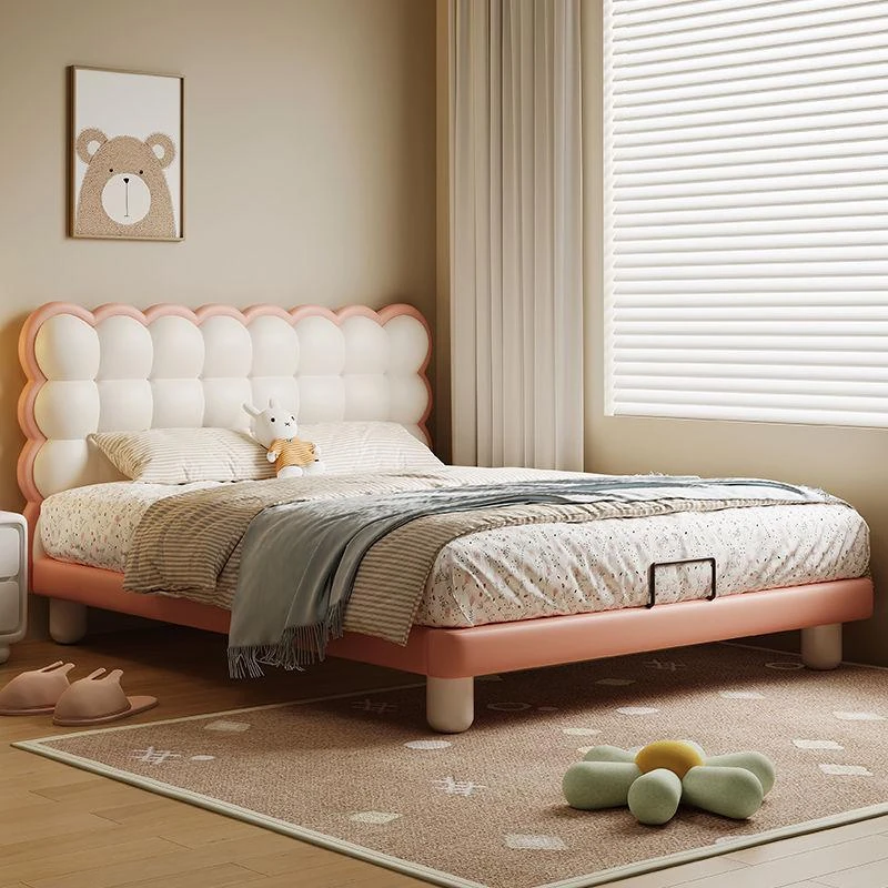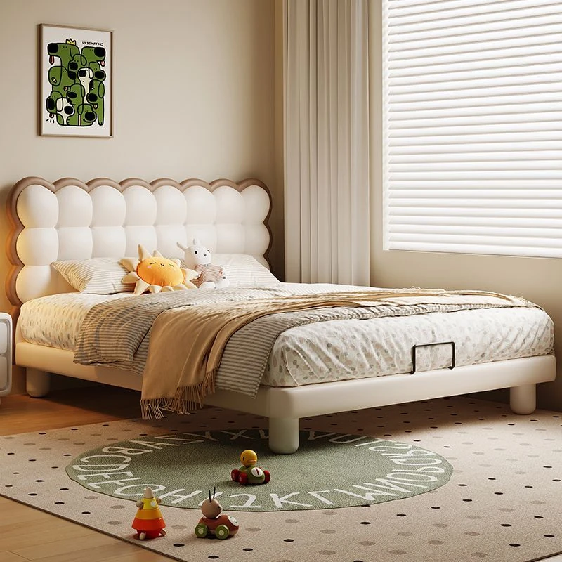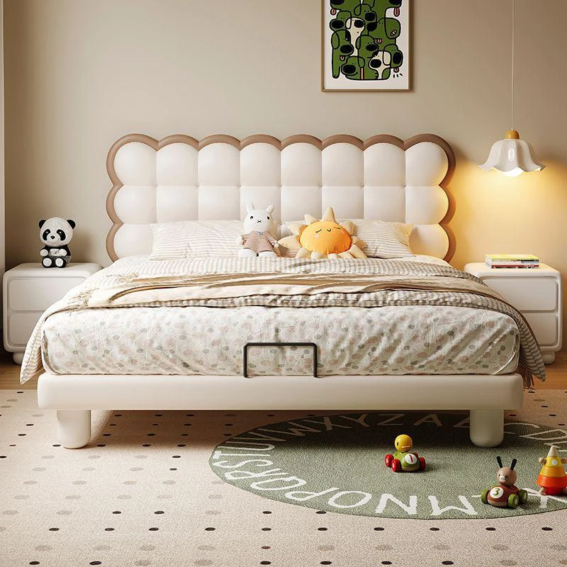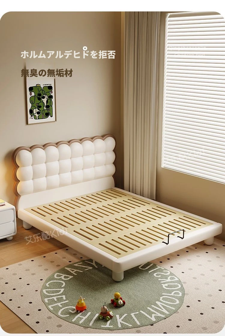 男の子にぴったり!クリエイティブなクッキー型デザインのシングルベッド。シンプルでモダンなスタイル、移動可能なヘッドボード、上質な本革使用。子供部屋をおしゃれに彩るベッドで、快適な睡眠をサポートします!