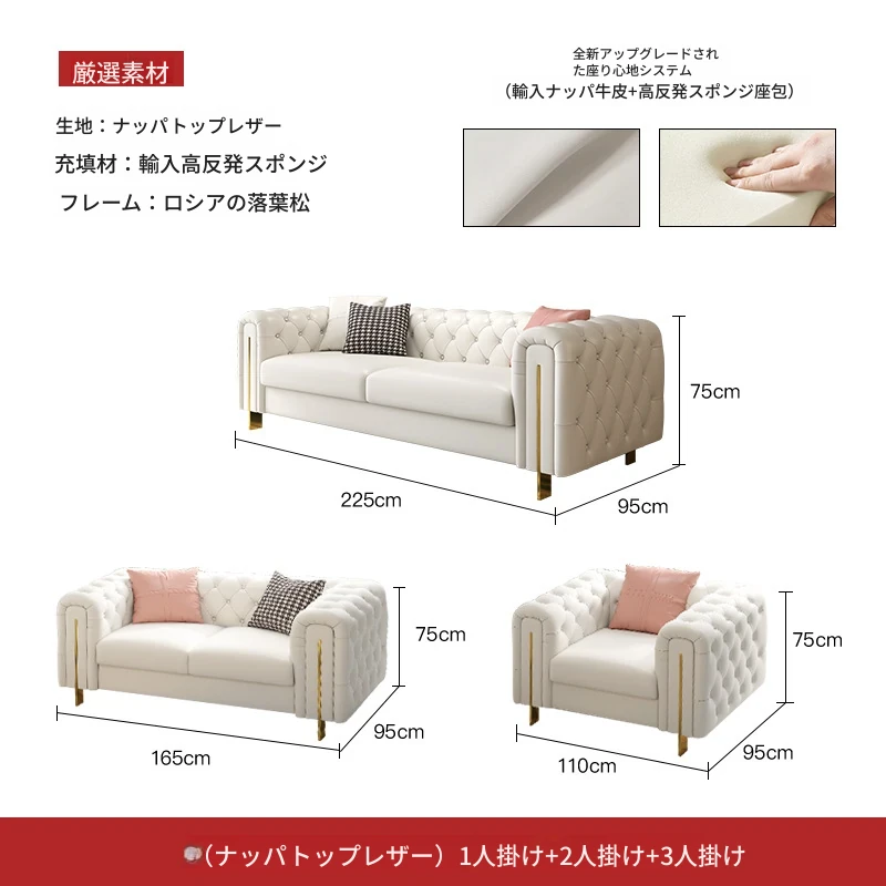 【ナパ本革】1人掛け + 2人掛け + 3人掛け コンビネーション