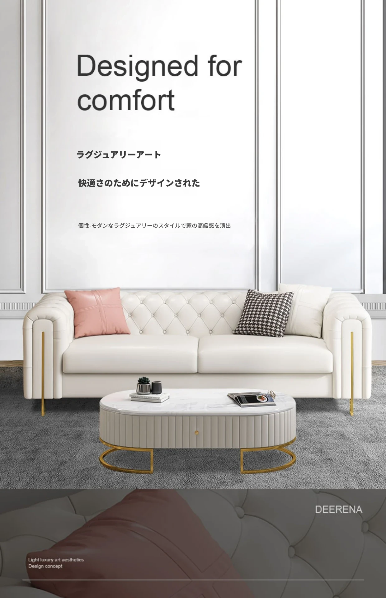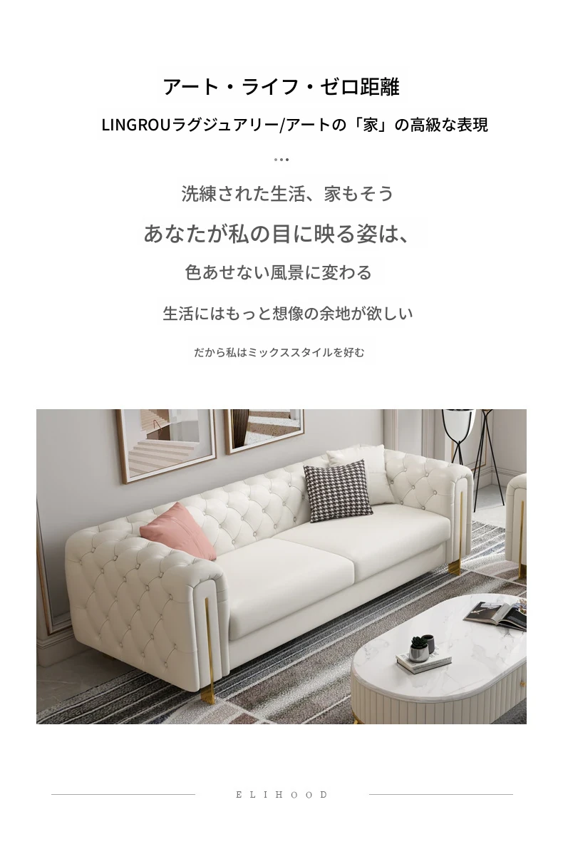 デザイナーのラグジュアリーソファ - お手入れ不要のテクノロジー布製、現代的な高級感溢れるアメリカンスタイルのリビングに最適。2人掛け・3人掛けも対応、小さな住まいにもぴったりな直列デザイン!