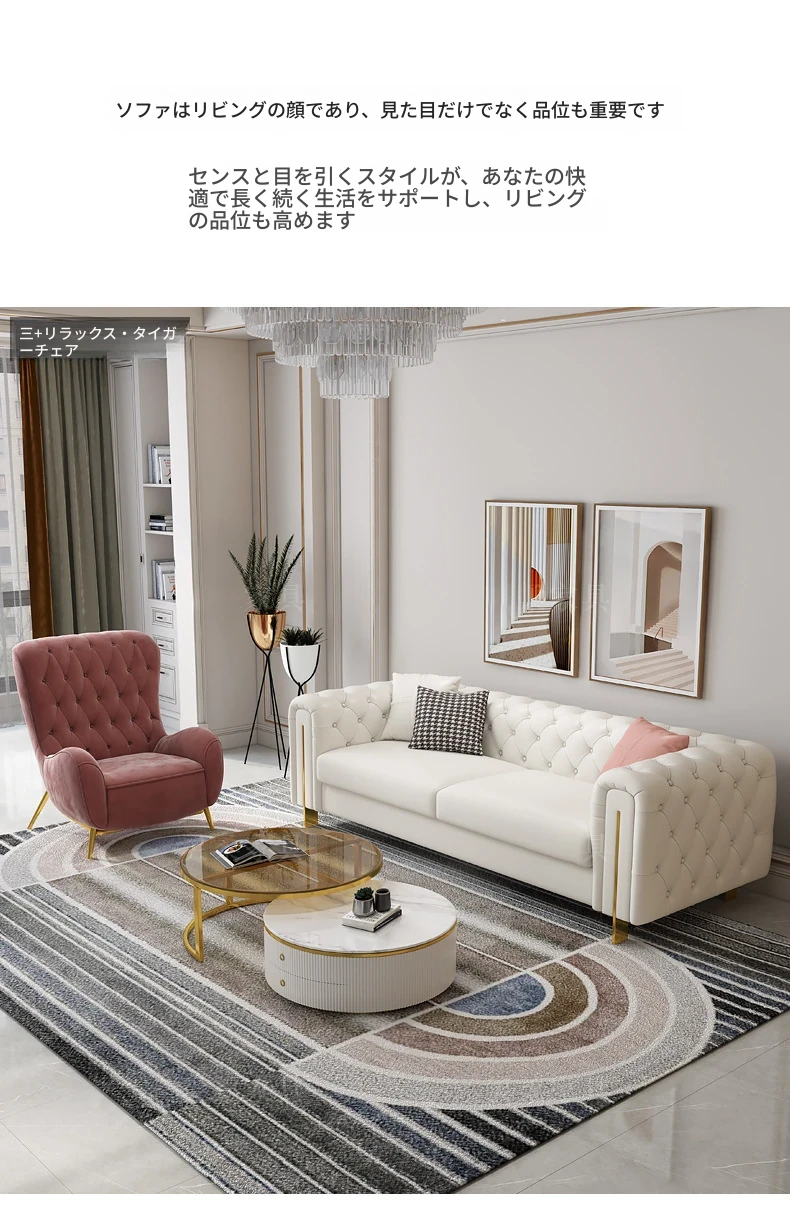 -【ナパ本革3人掛けソファ + カジュアルタイガーチェア】