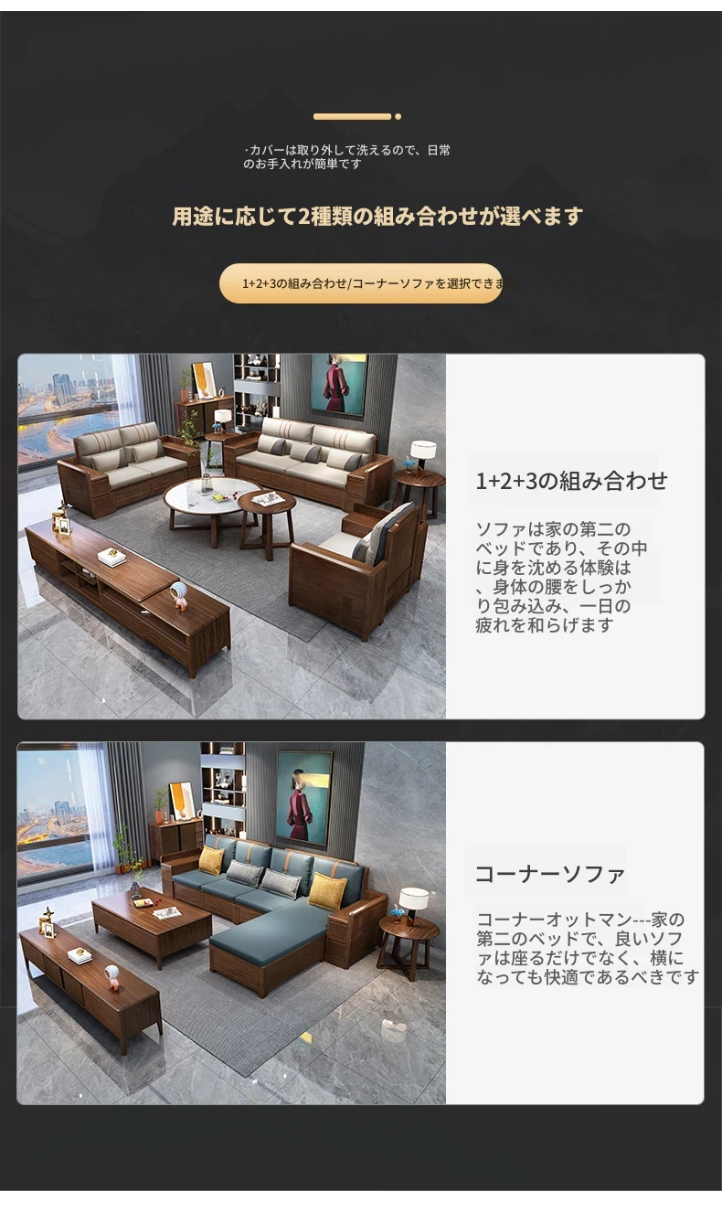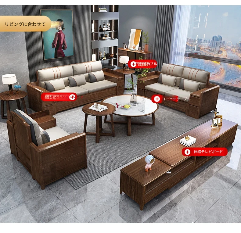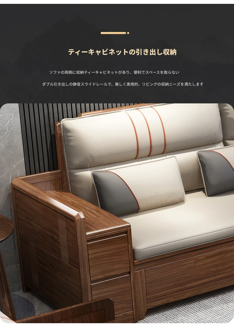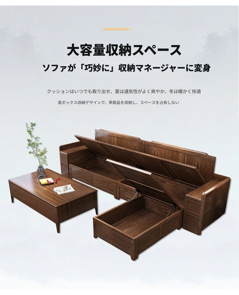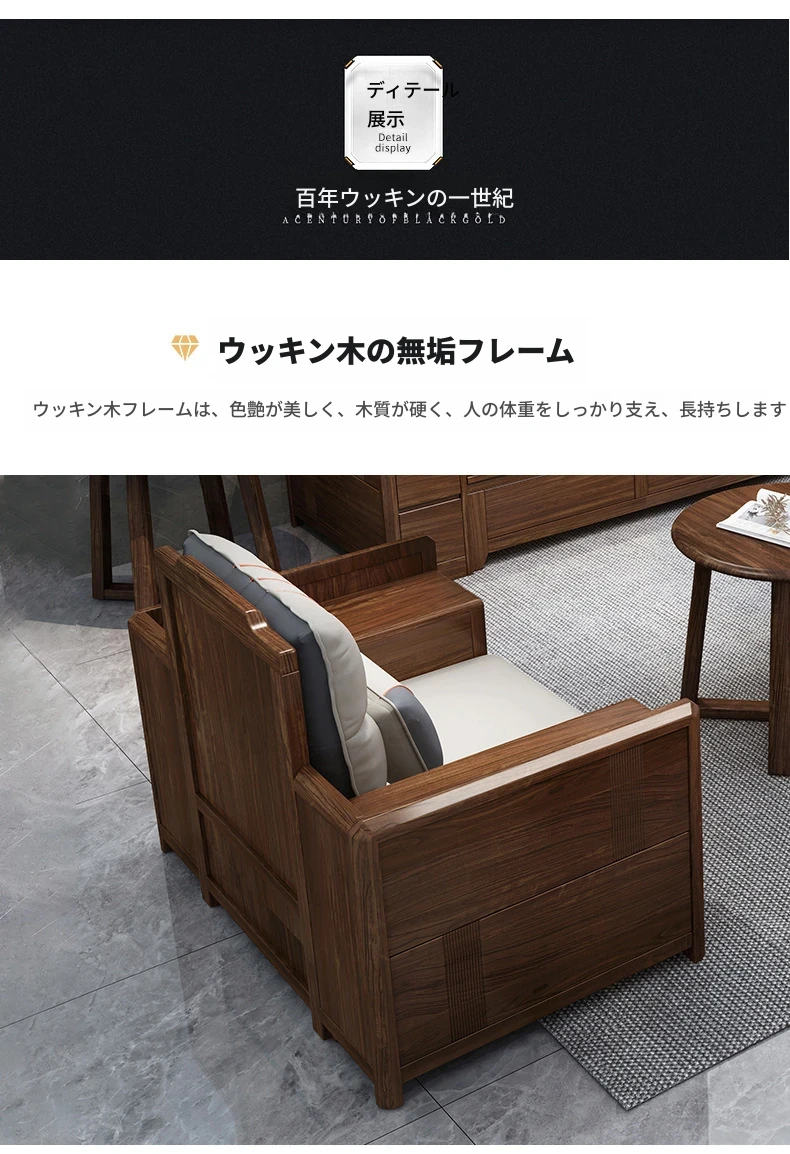 ウーキン木製中式実木ソファ123組み合わせ角度付き貴妃スタイル、冬夏両用のリビング収納小型家具。おしゃれで機能的、コンパクトな空間を彩るあなたの理想のソファです!