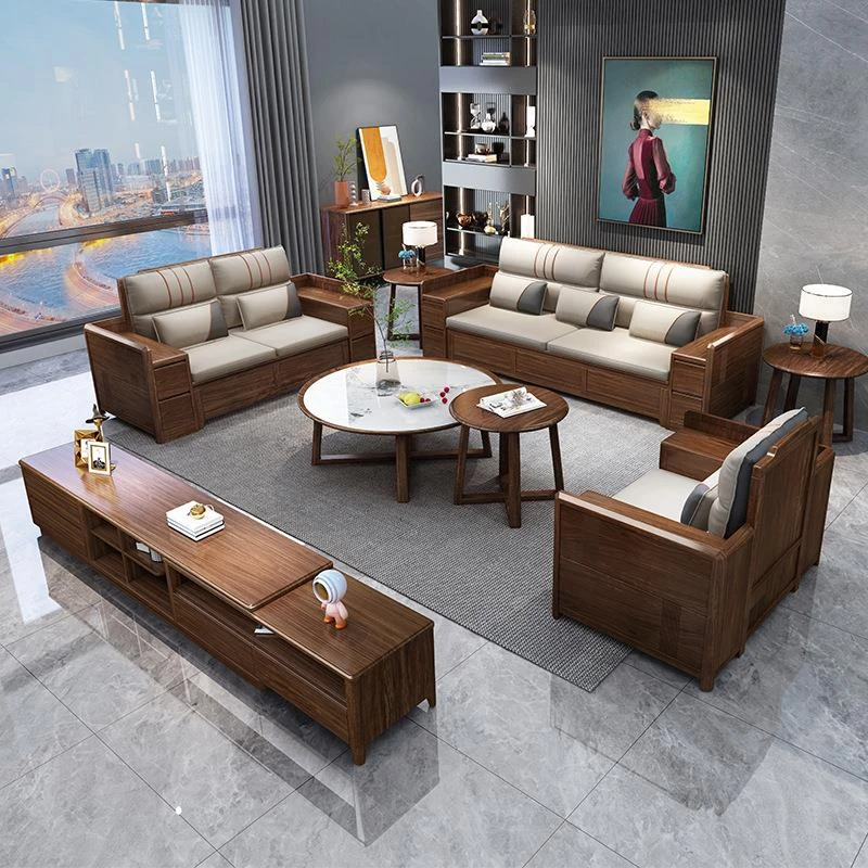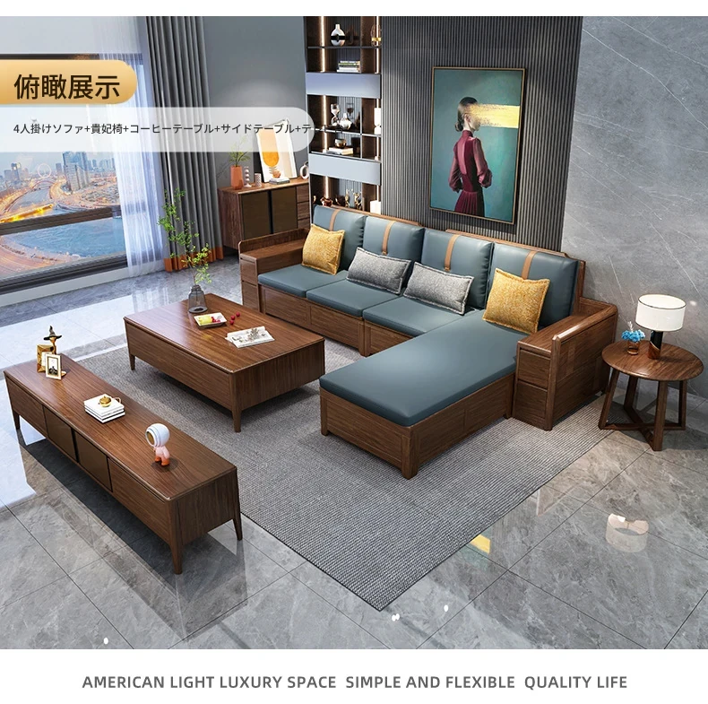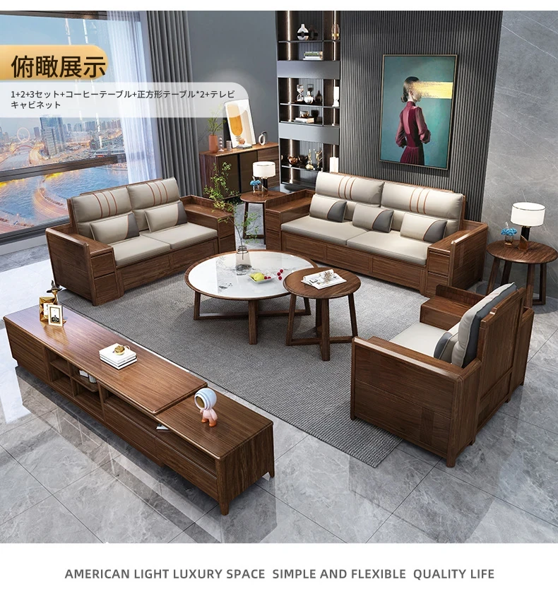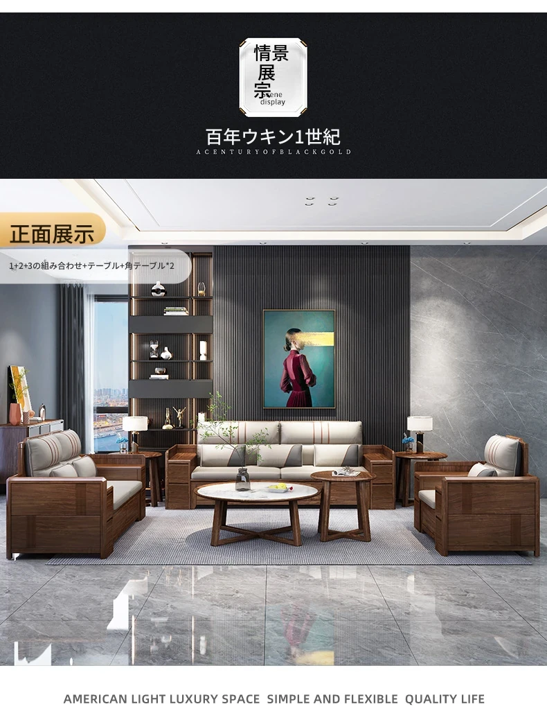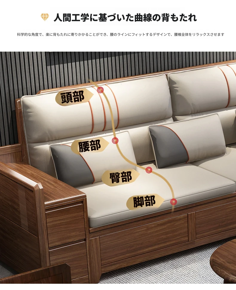 ウーキン木製中式実木ソファ123組み合わせ角度付き貴妃スタイル、冬夏両用のリビング収納小型家具。おしゃれで機能的、コンパクトな空間を彩るあなたの理想のソファです!