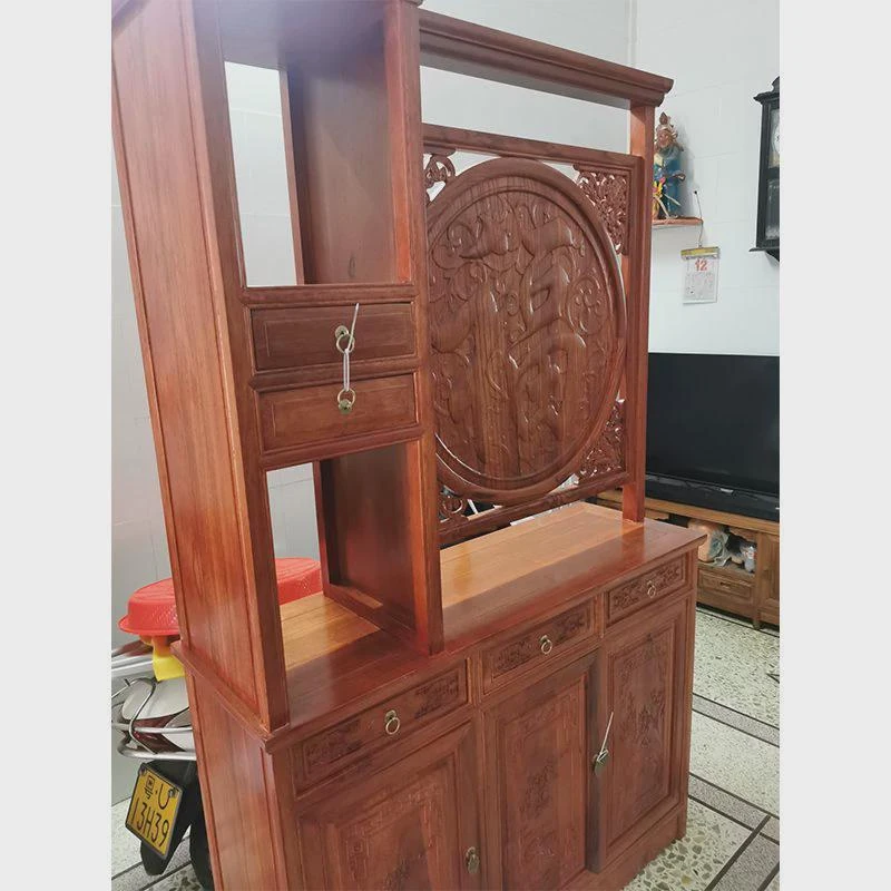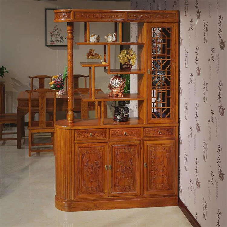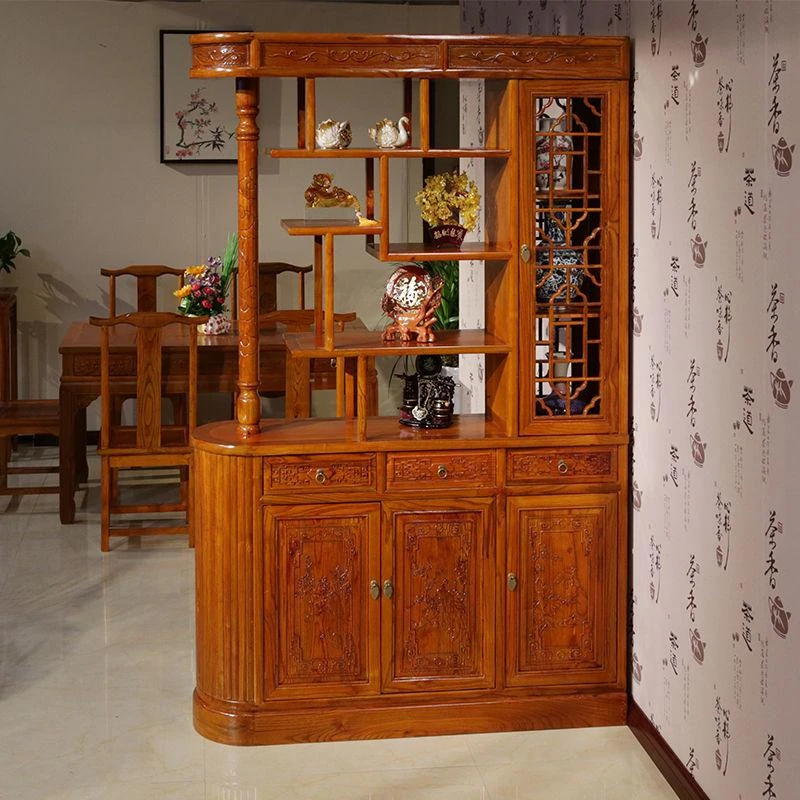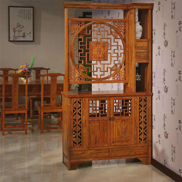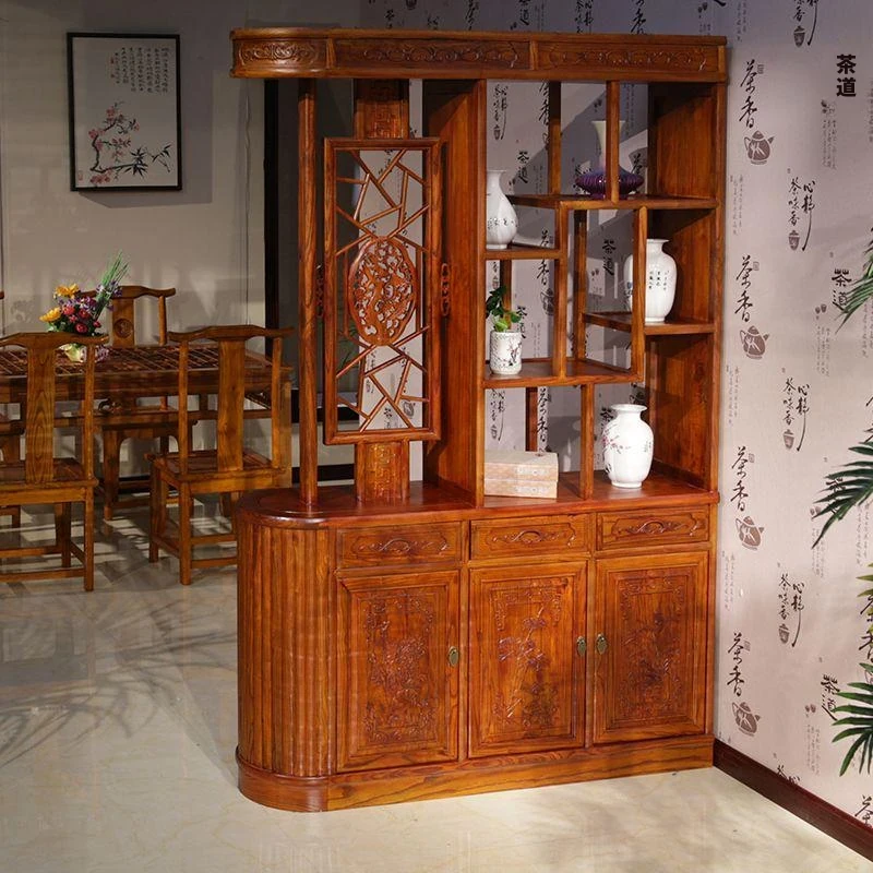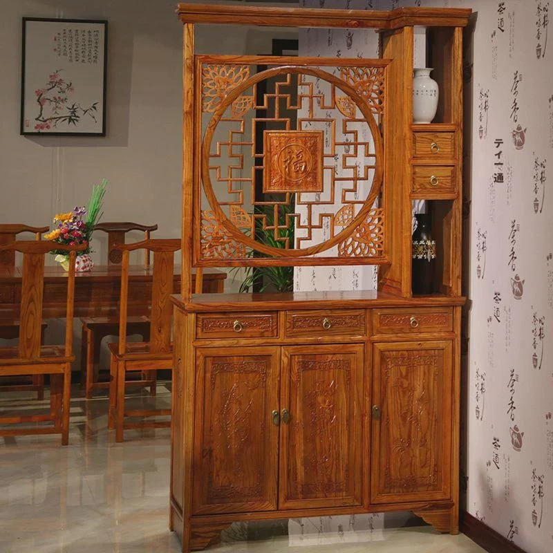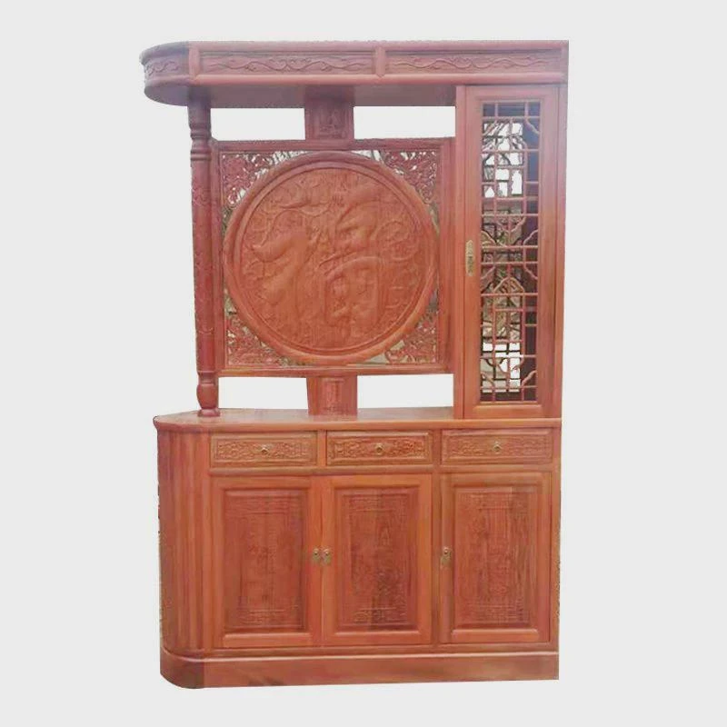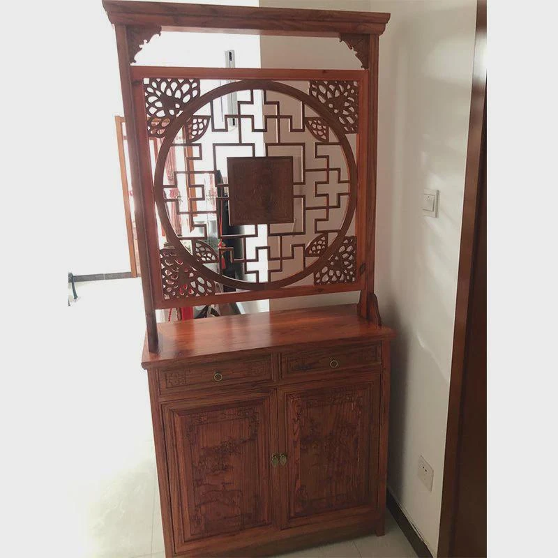 中華風天然木製玄関キャビネット おしゃれなリビングの間仕切り 二面彫刻のワインキャビネット スクリーン付きシューズキャビネット 在庫一掃セール!お部屋を美しく演出するマルチファンクショナル家具!