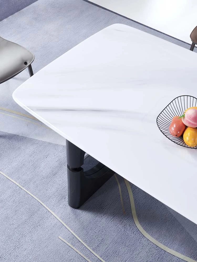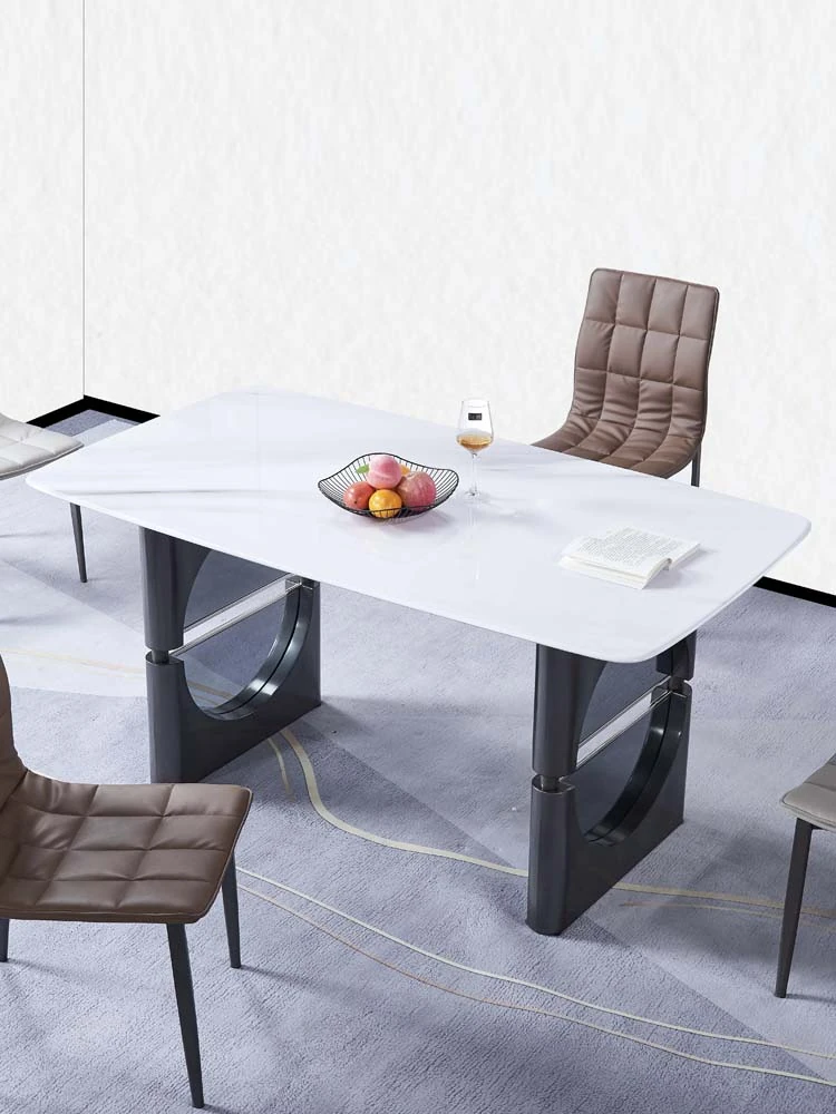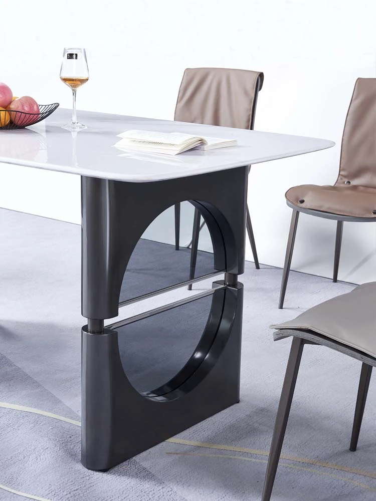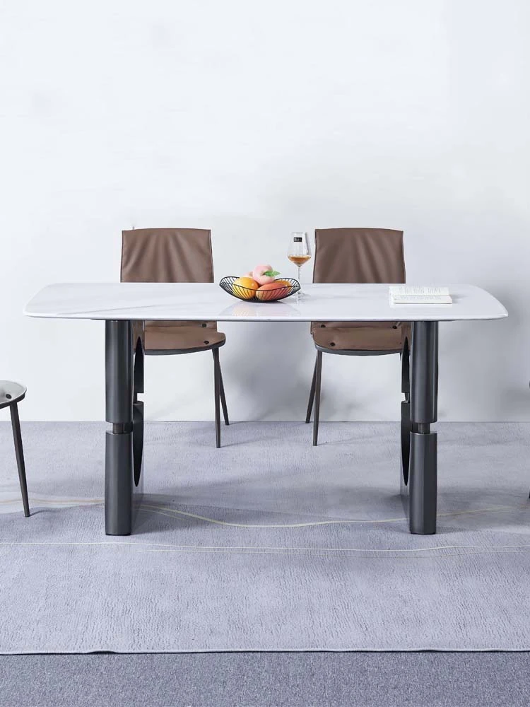 イタリアンラグジュアリー大理石ダイニングテーブル - モダンでシンプルなデザイン、小型住宅に最適なステンレス製長方形テーブル。おしゃれなリビングにぴったりの一品!