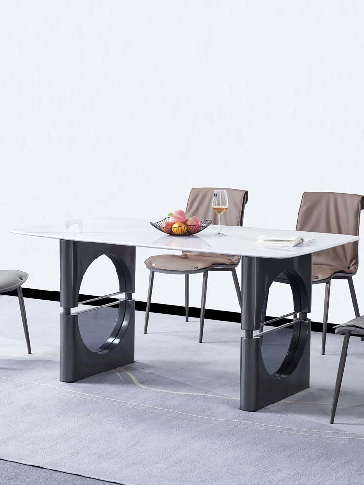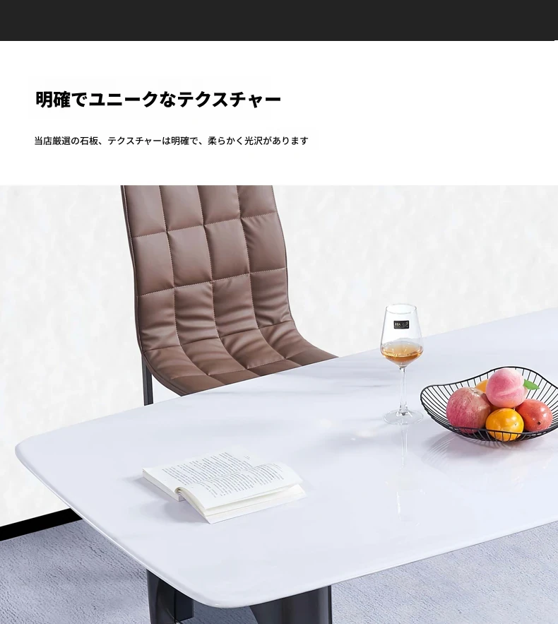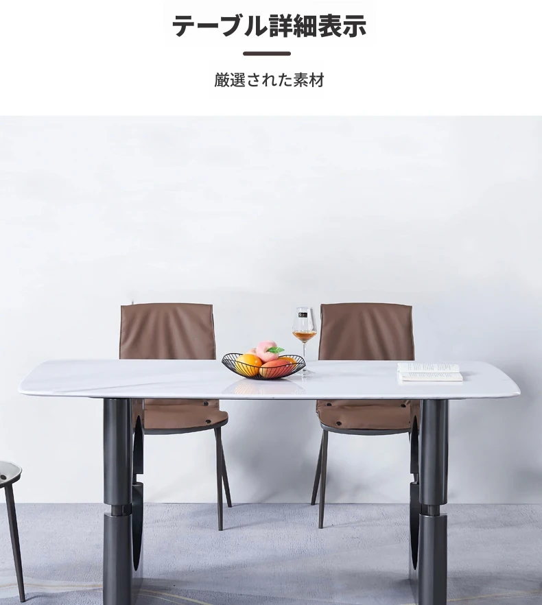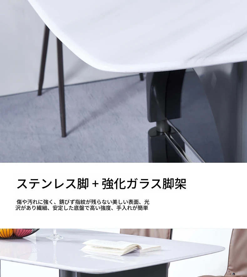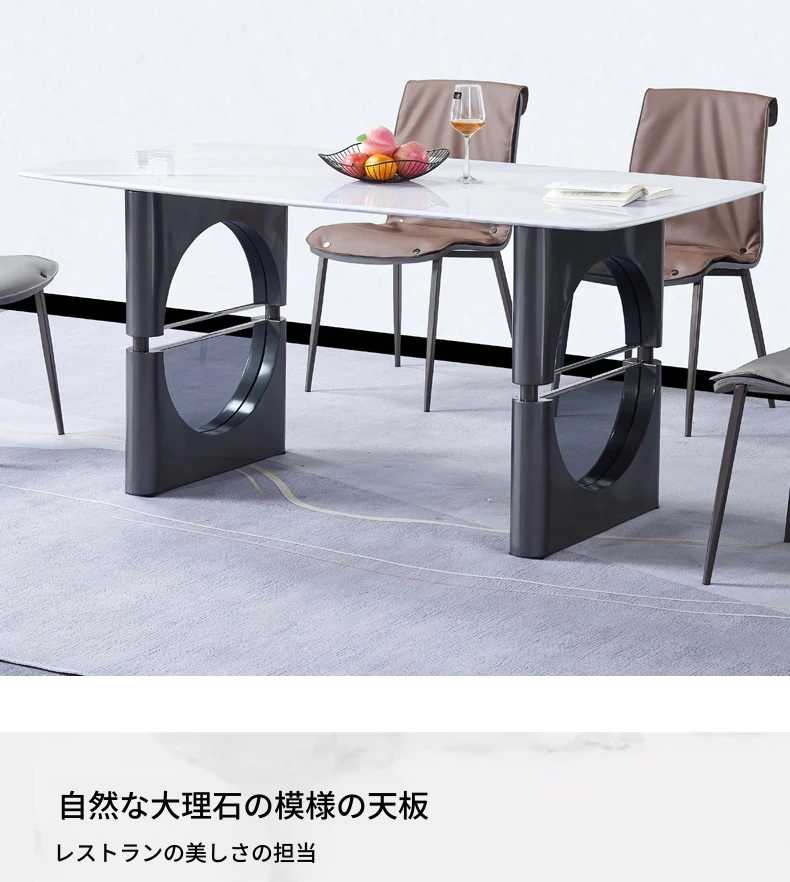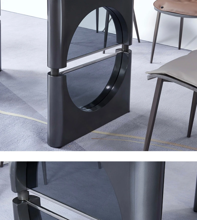 単一ダイニングテーブル(カーボンスチール+強化ガラス脚+大理石天板)