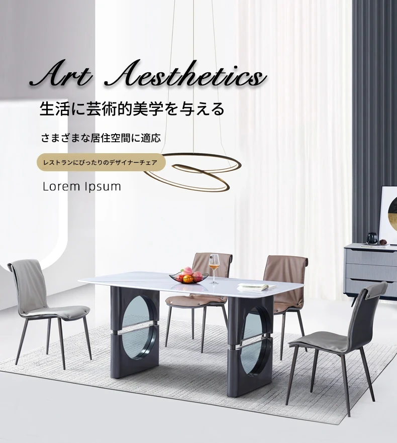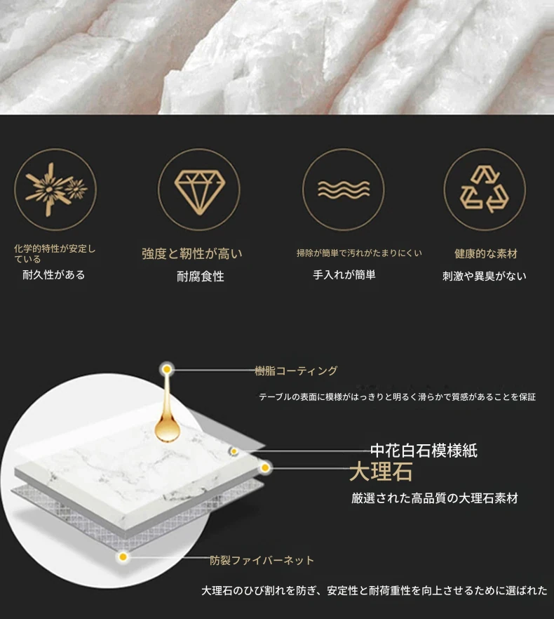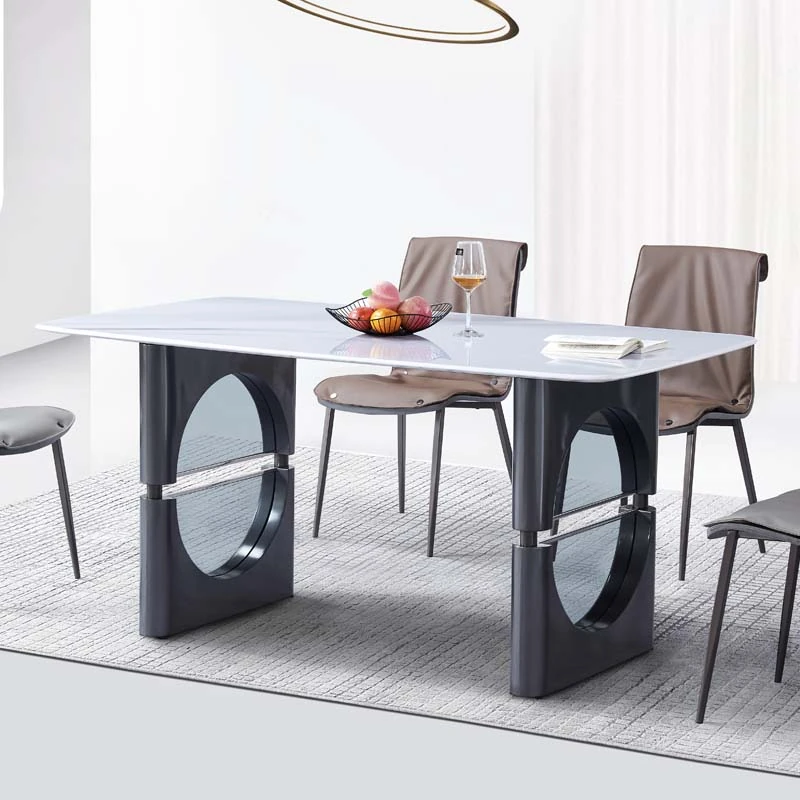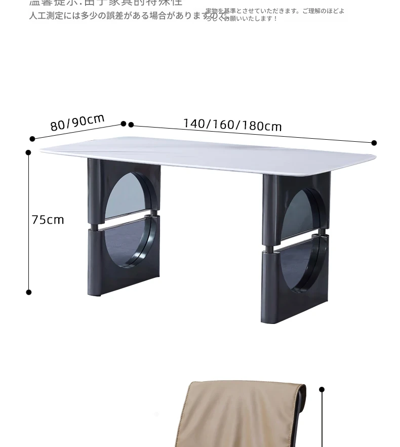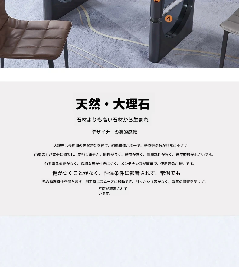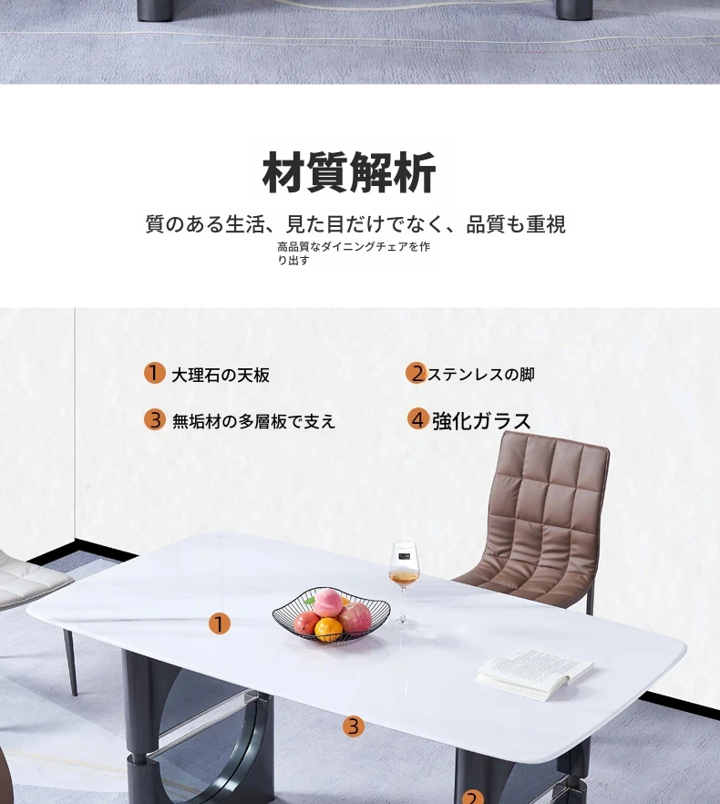 単一ダイニングテーブル(カーボンスチール+強化ガラス脚+大理石天板)