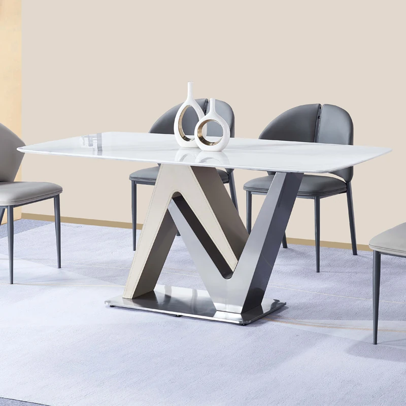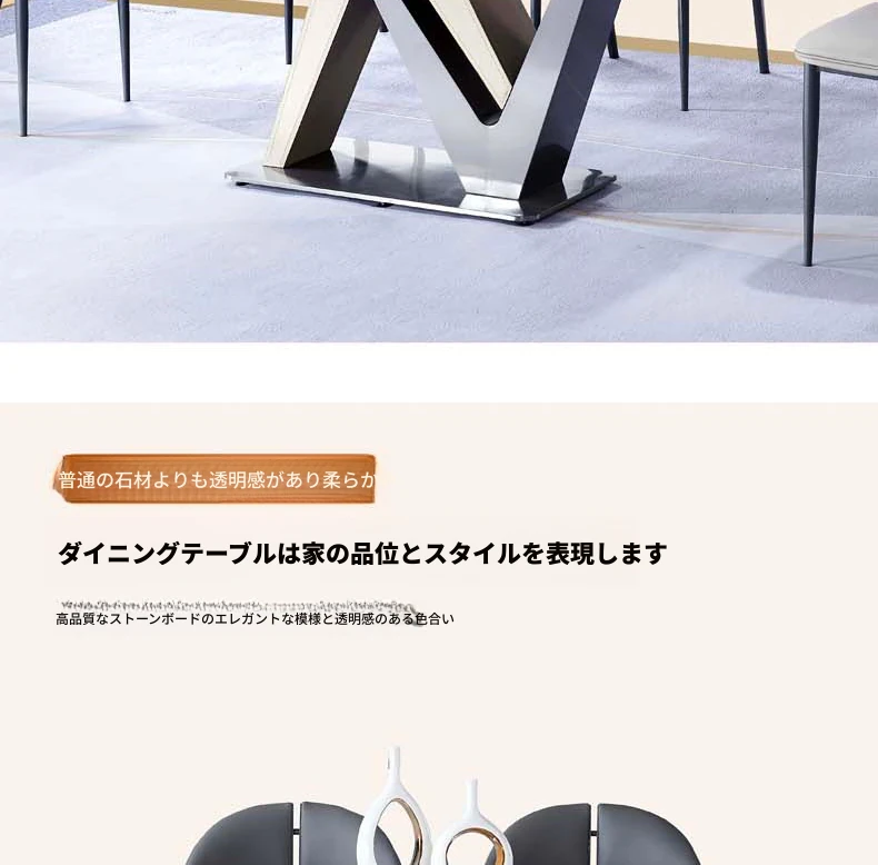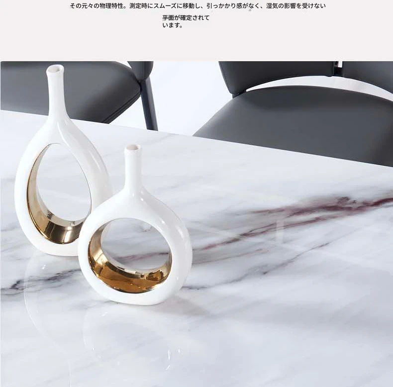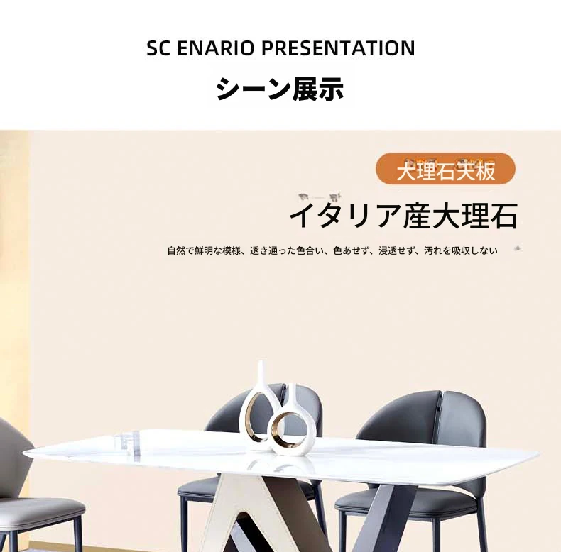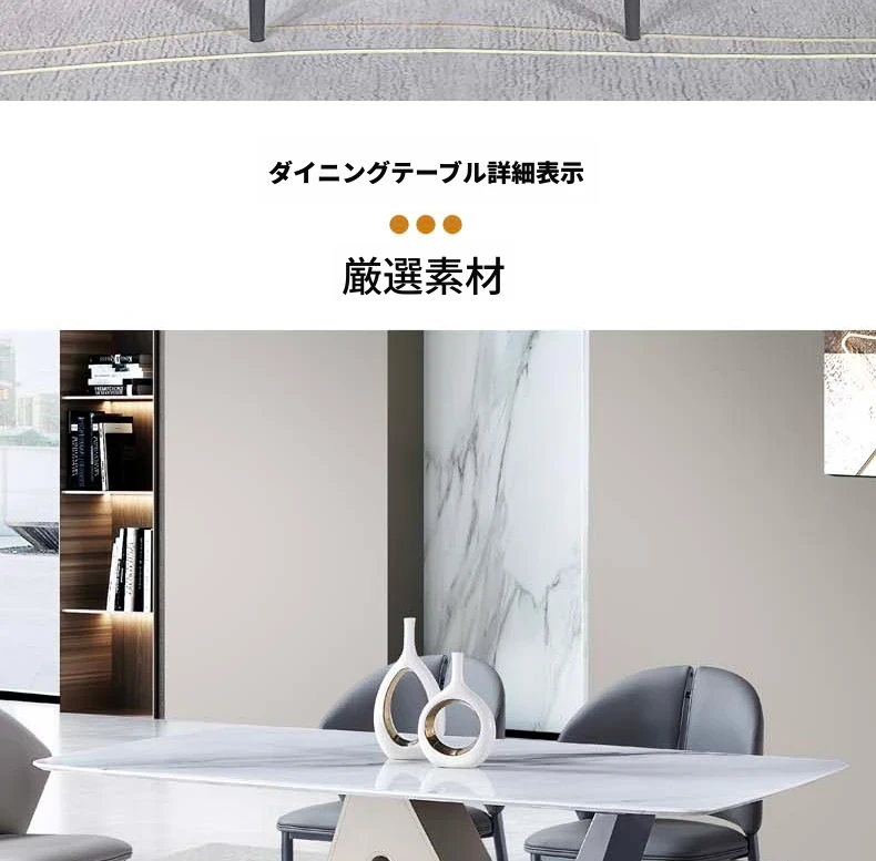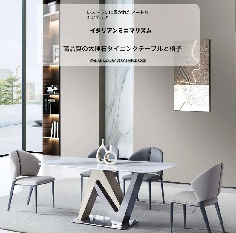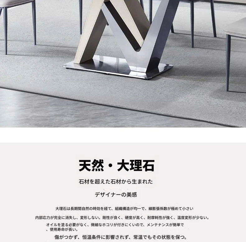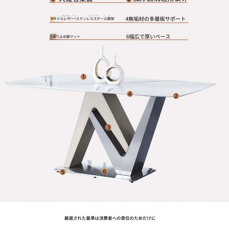 洗練された大理石のダイニングテーブル|イタリアンミニマルデザイン|コンパクトサイズでどんなお部屋にもフィット|ステンレス光沢仕上げの高級感溢れる長方形テーブル