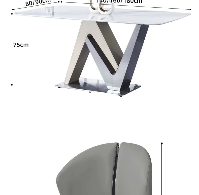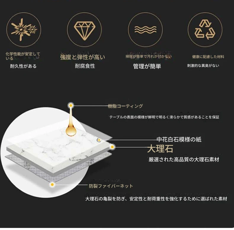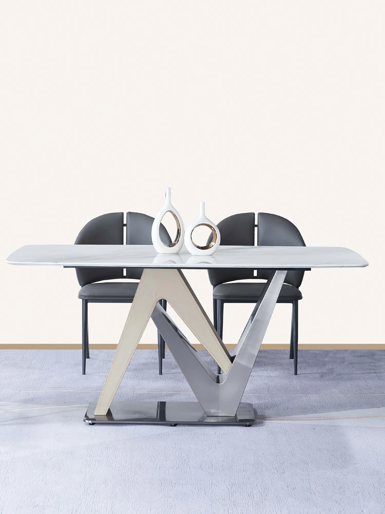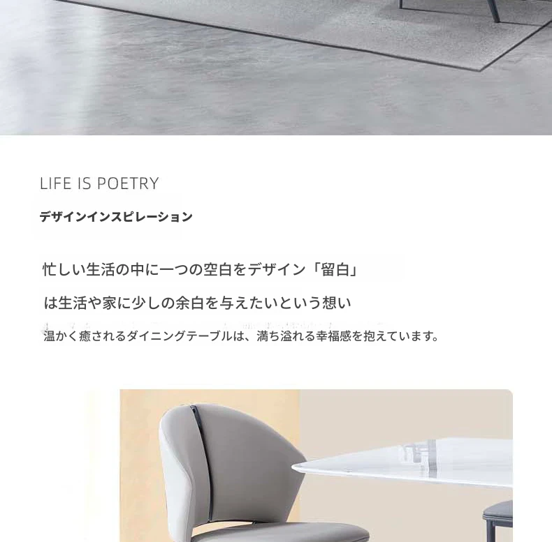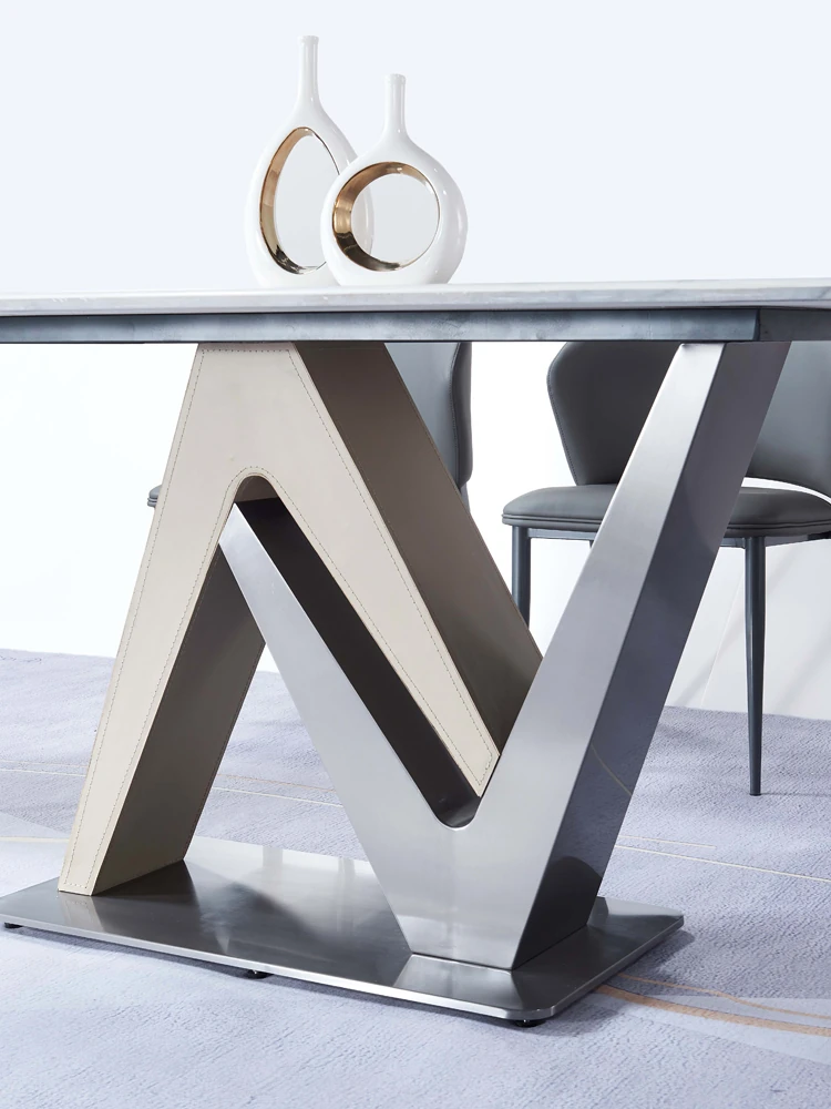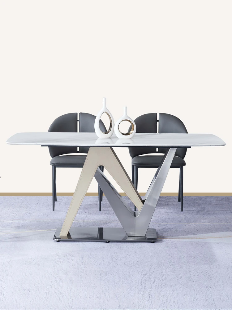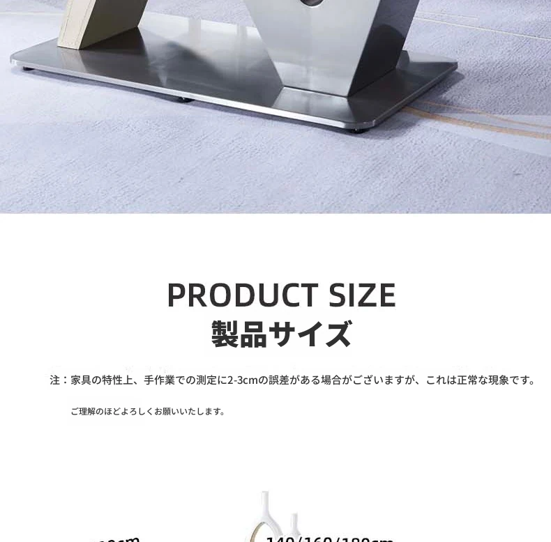 洗練された大理石のダイニングテーブル|イタリアンミニマルデザイン|コンパクトサイズでどんなお部屋にもフィット|ステンレス光沢仕上げの高級感溢れる長方形テーブル