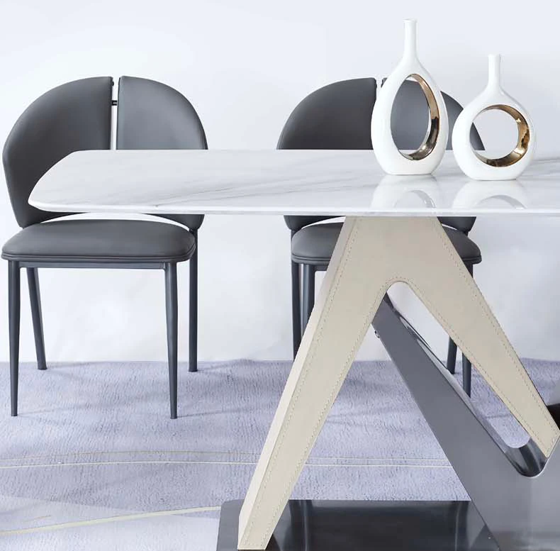 単一のダイニングテーブル(バイソンレザー+ステンレス脚+大理石天板)