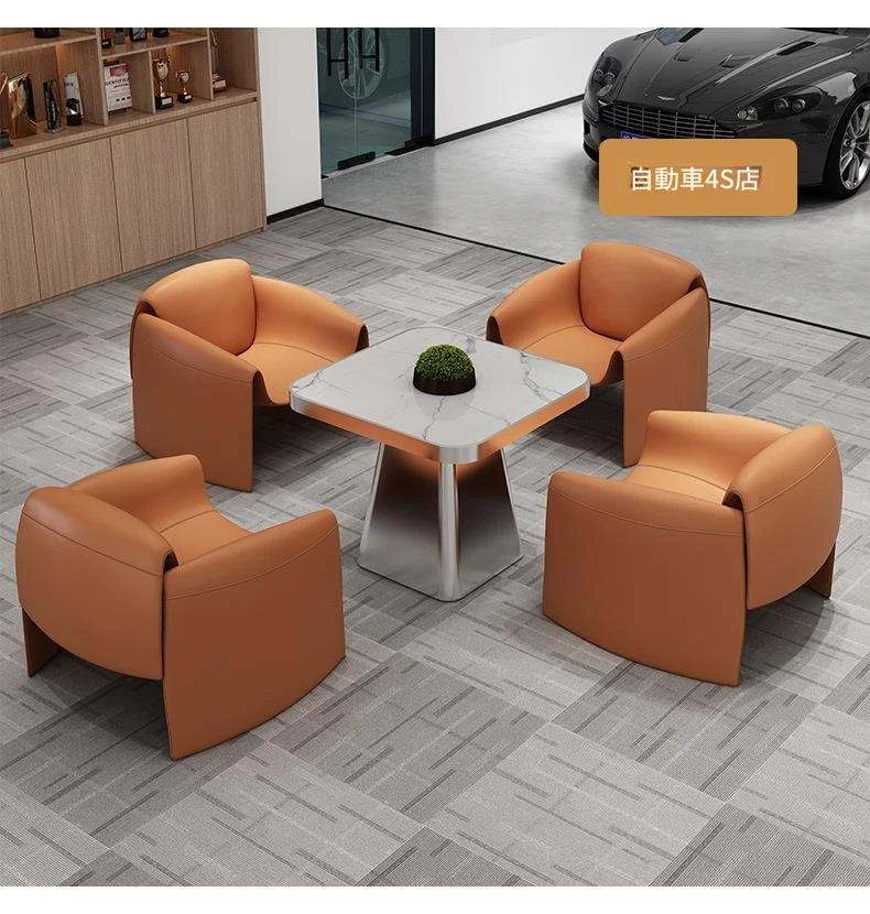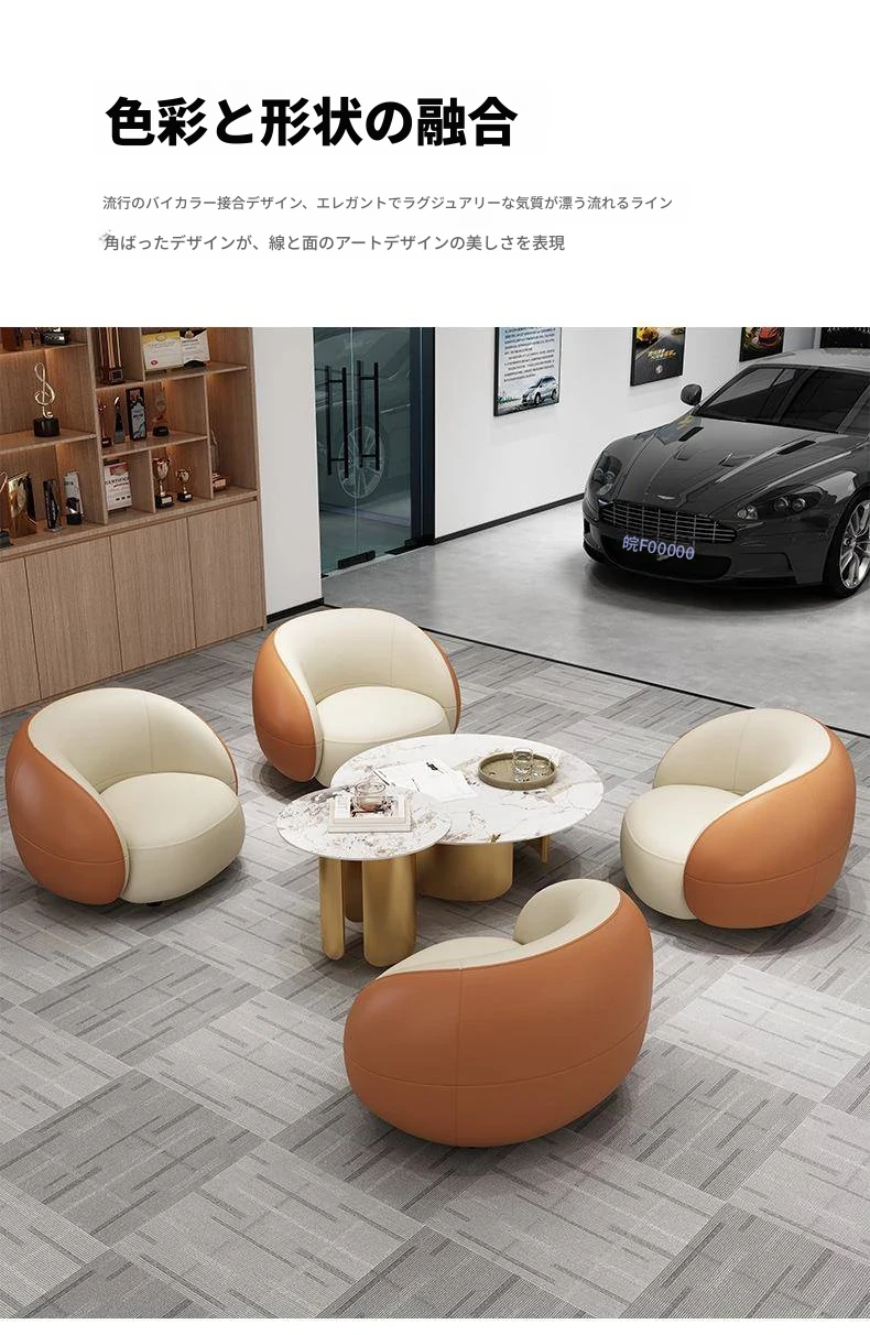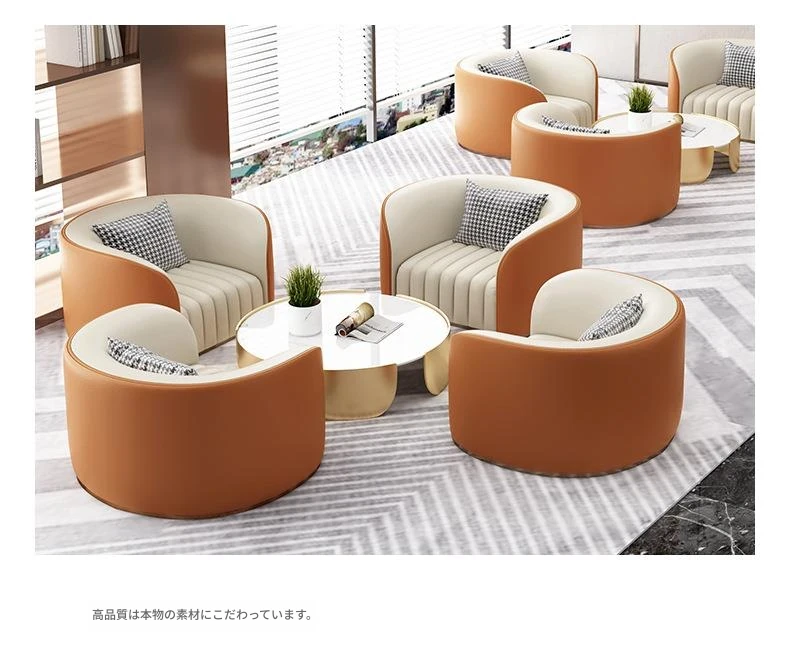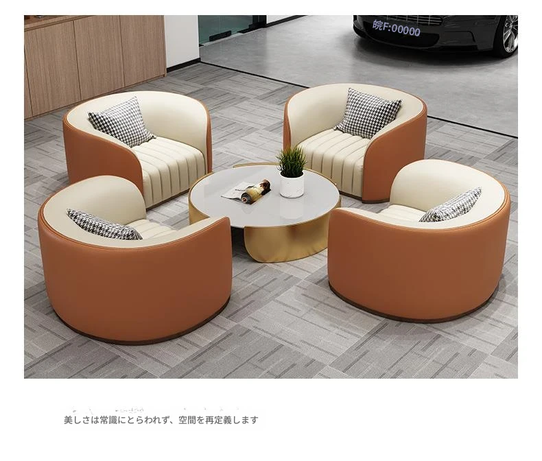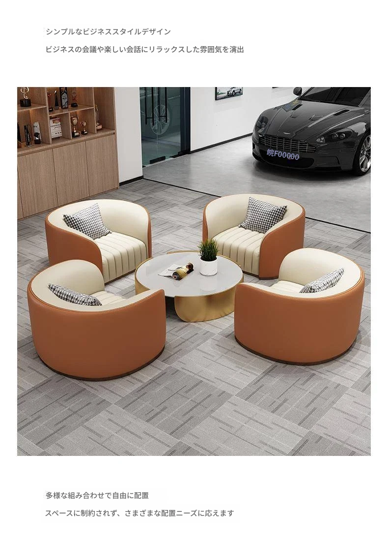 高級感溢れる不動産営業所用談話テーブル&チェアセット - シンプルで快適な休憩エリア、ビジネス接待や会議に最適なソファ付き。おしゃれな空間でお客様をお迎えします!