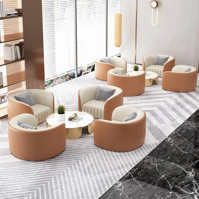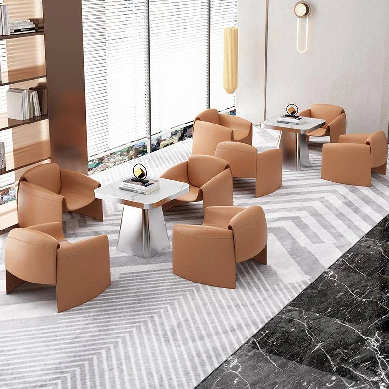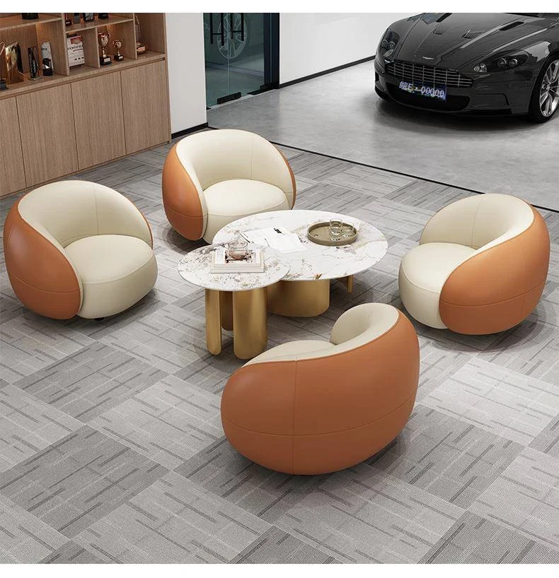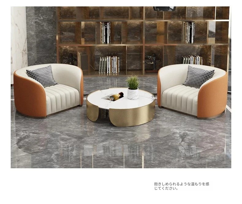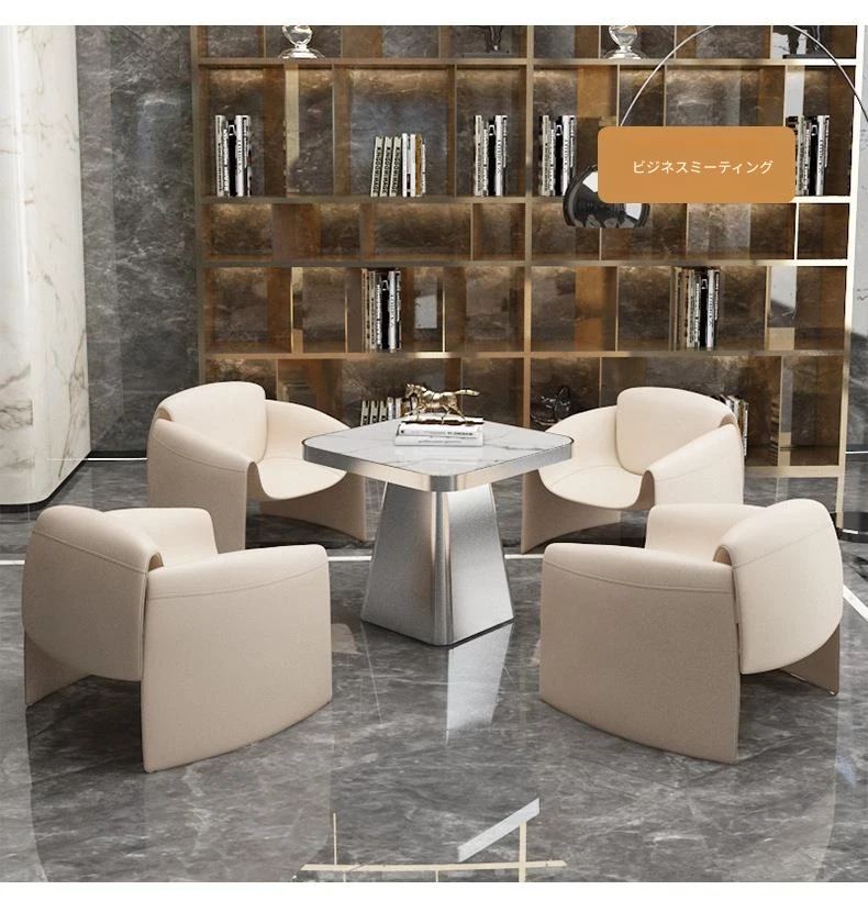 高級感溢れる不動産営業所用談話テーブル&チェアセット - シンプルで快適な休憩エリア、ビジネス接待や会議に最適なソファ付き。おしゃれな空間でお客様をお迎えします!