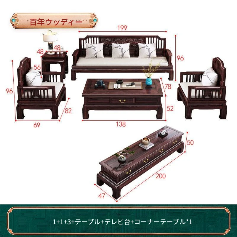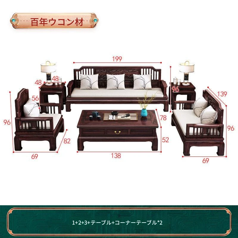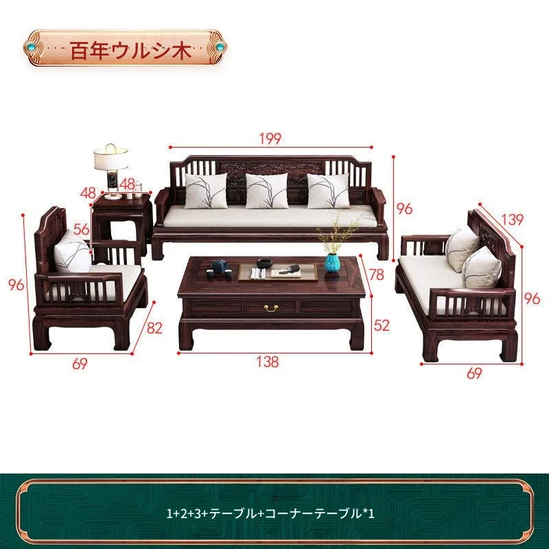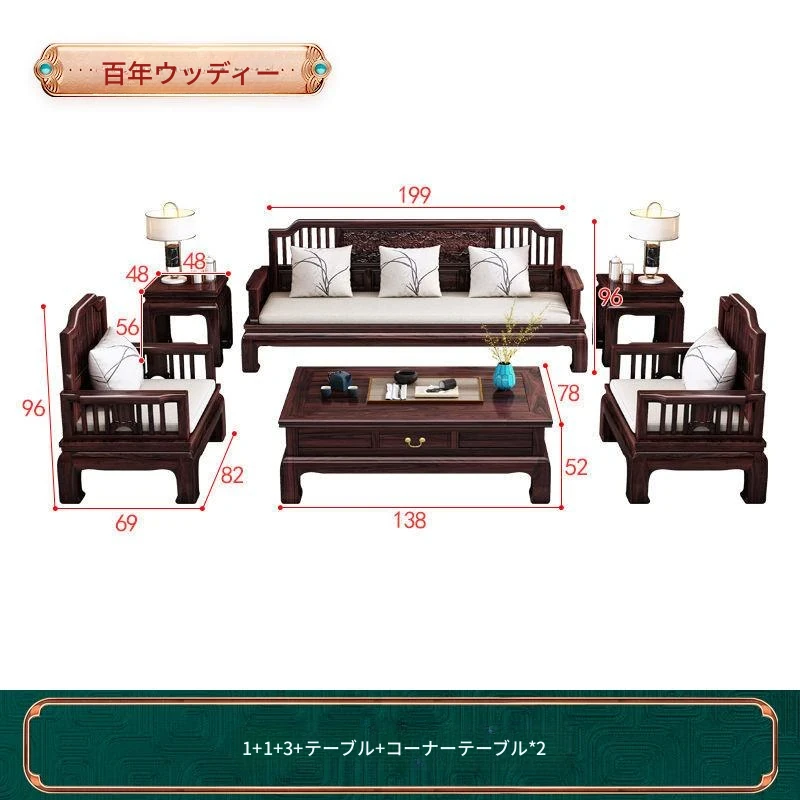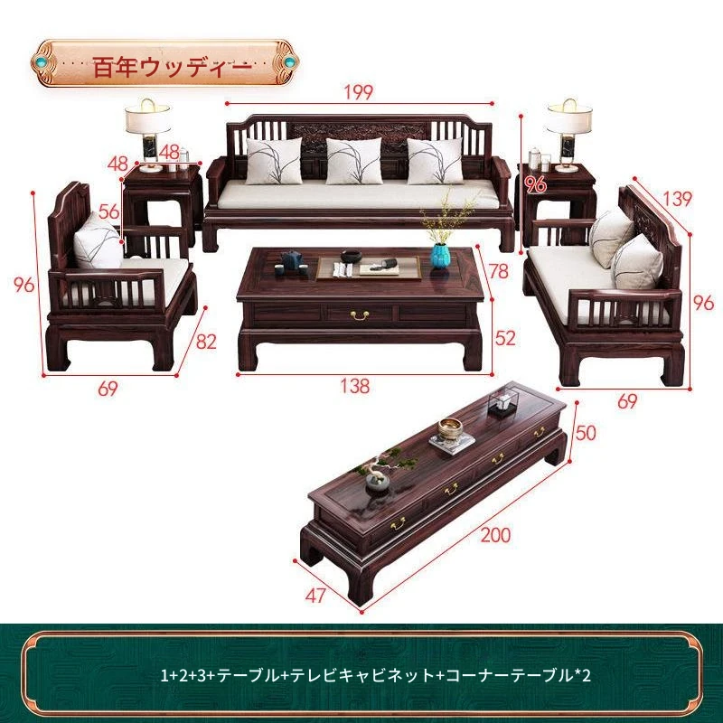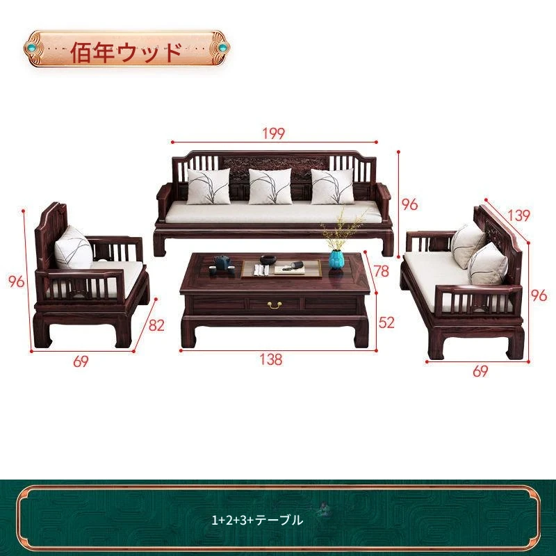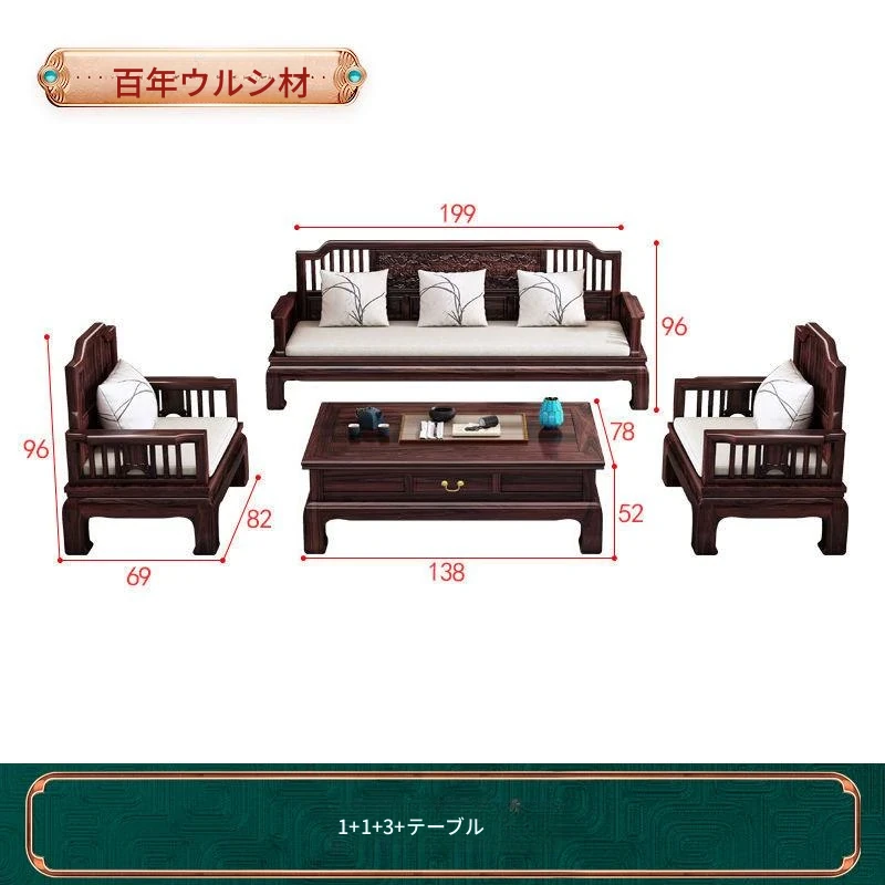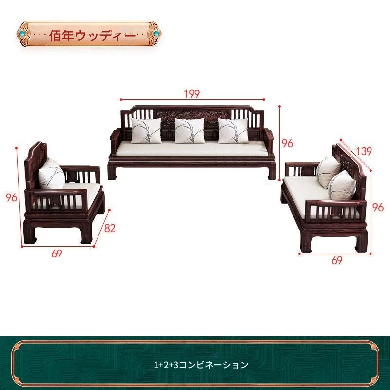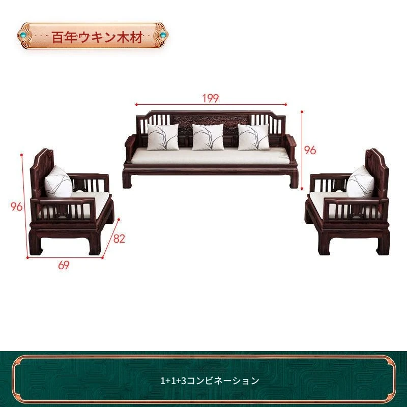新中式ウーキン材123ソファセット|軽奢華で古典的なデザイン|大小型住宅に最適なリビング用|高品質の無垢材家具セットで、あなたの空間を優雅に演出します!