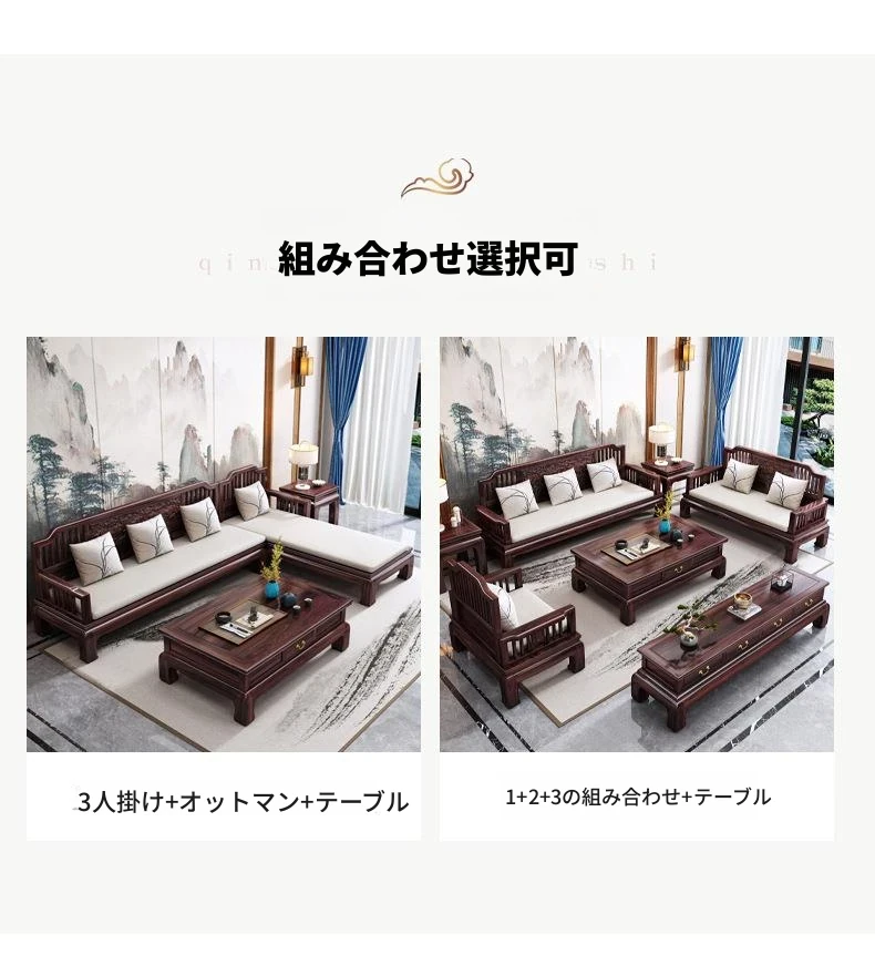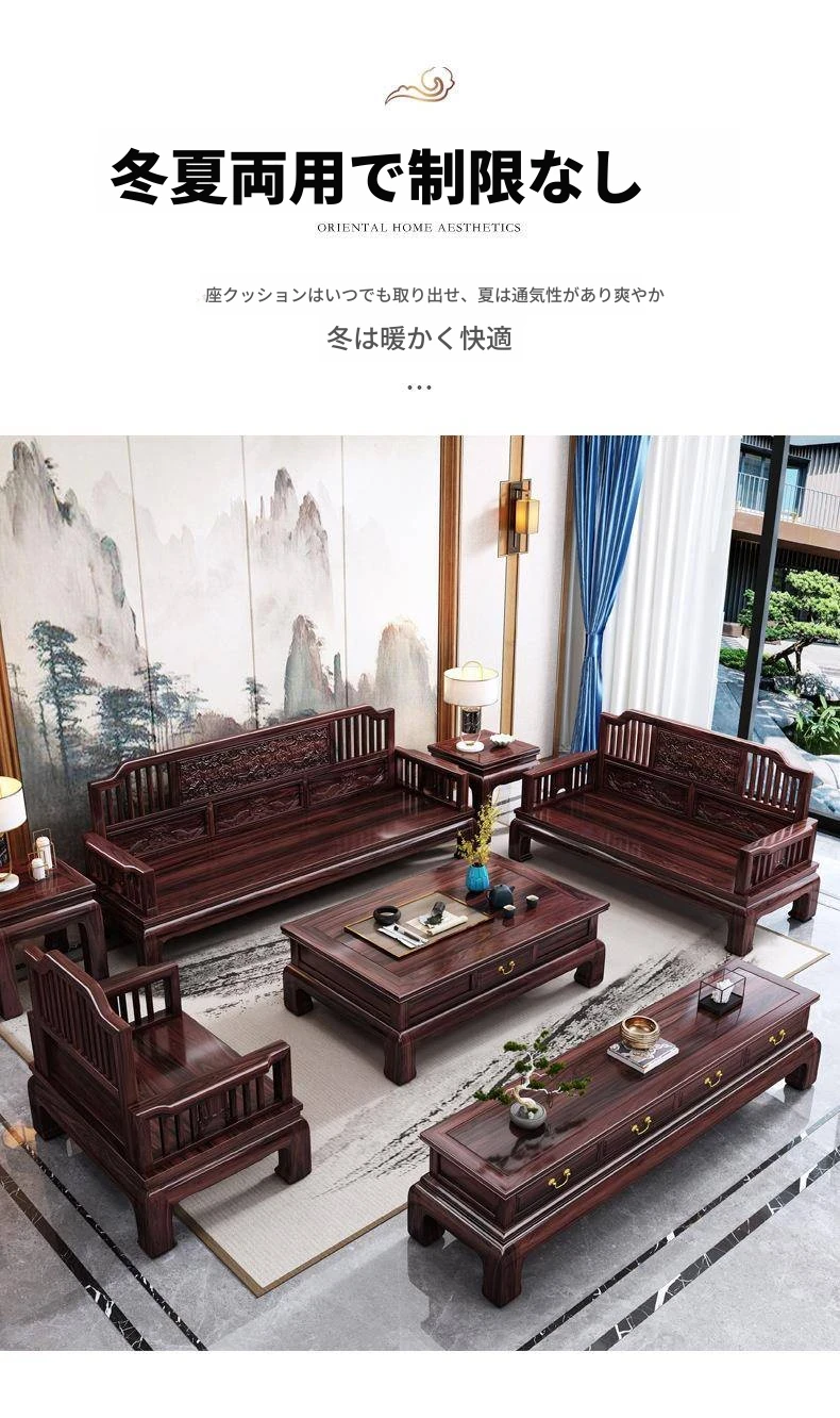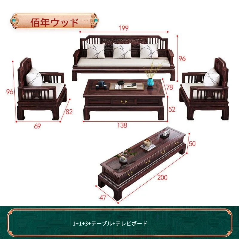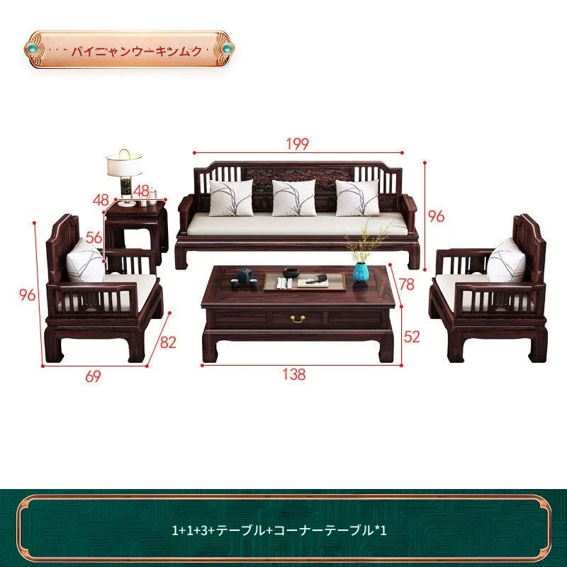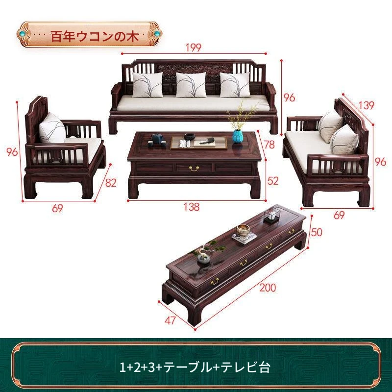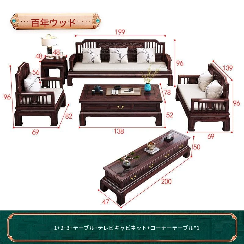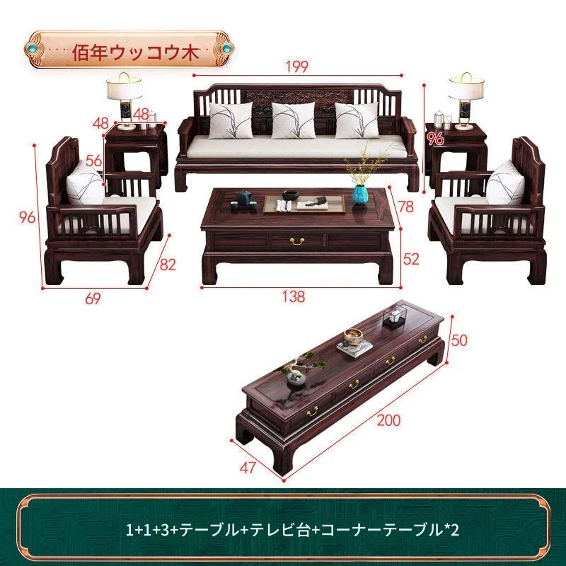 新中式ウーキン材123ソファセット|軽奢華で古典的なデザイン|大小型住宅に最適なリビング用|高品質の無垢材家具セットで、あなたの空間を優雅に演出します!