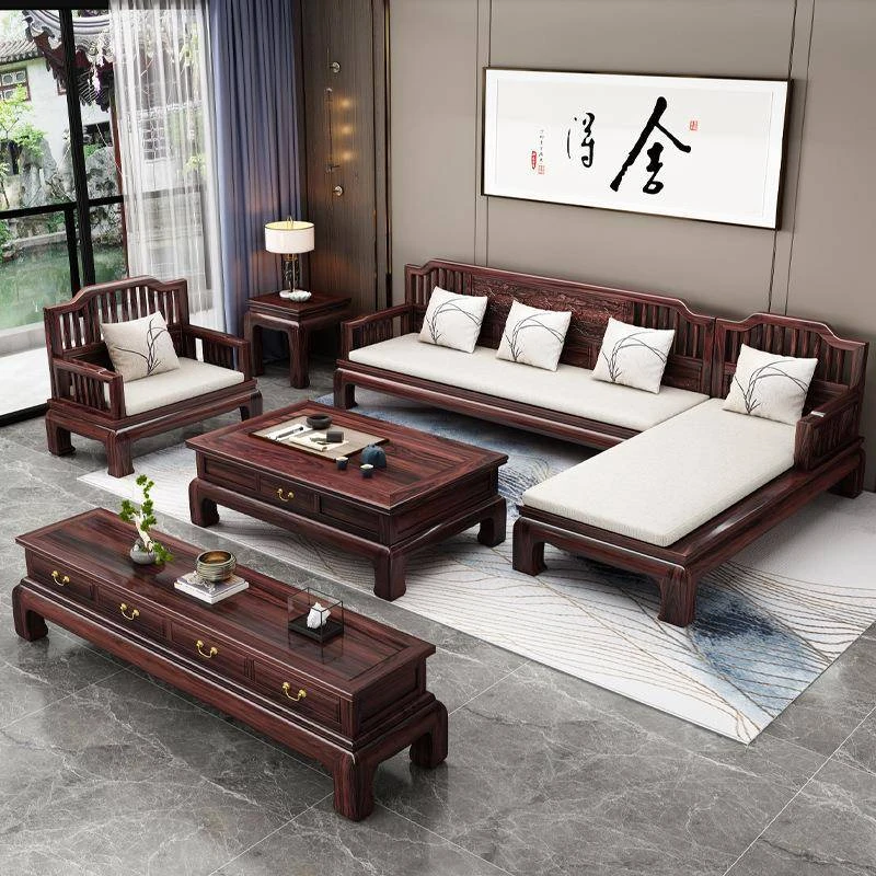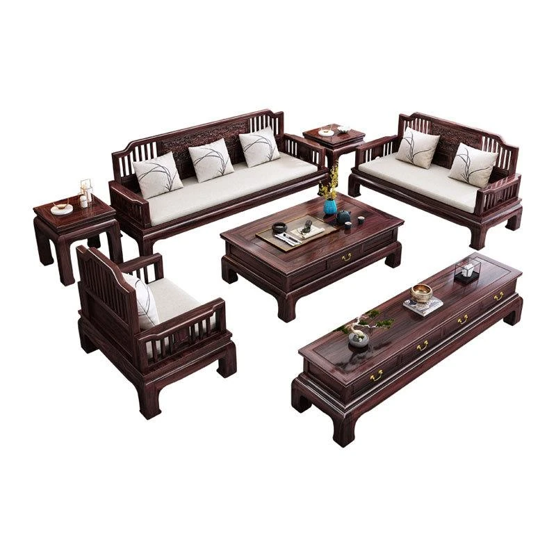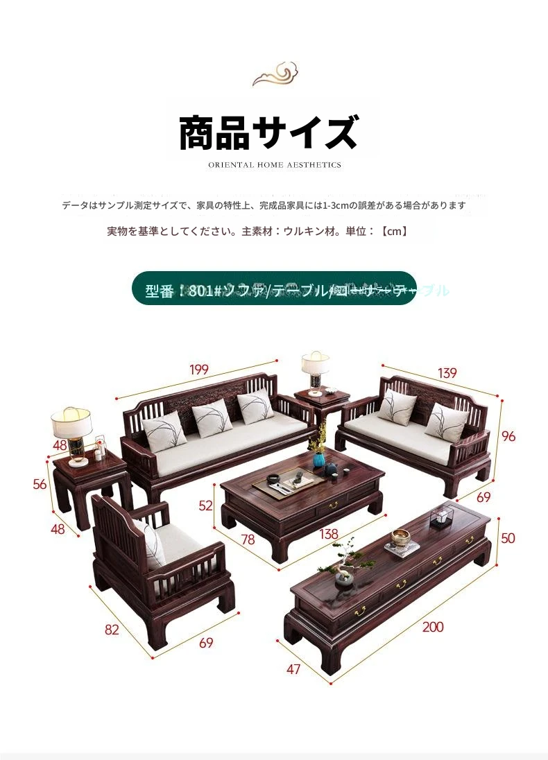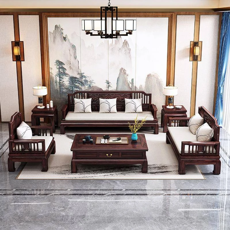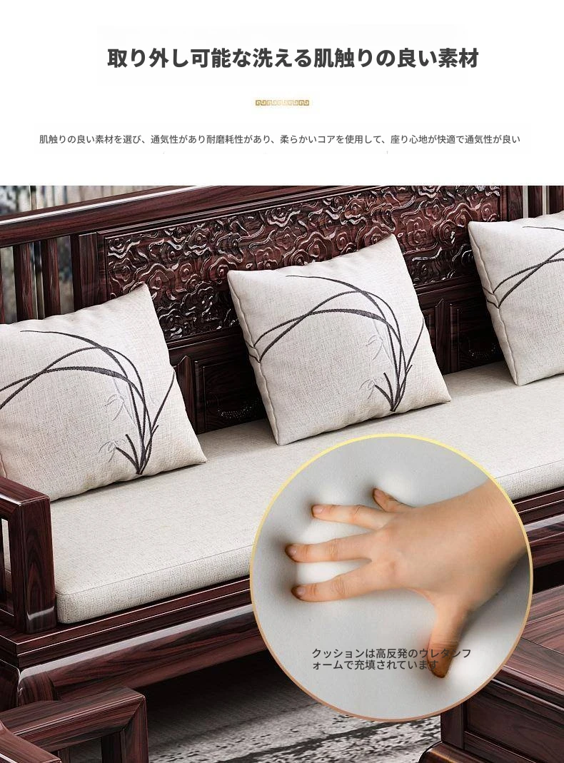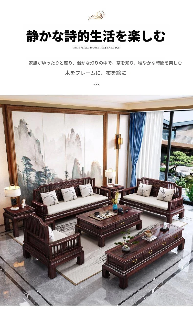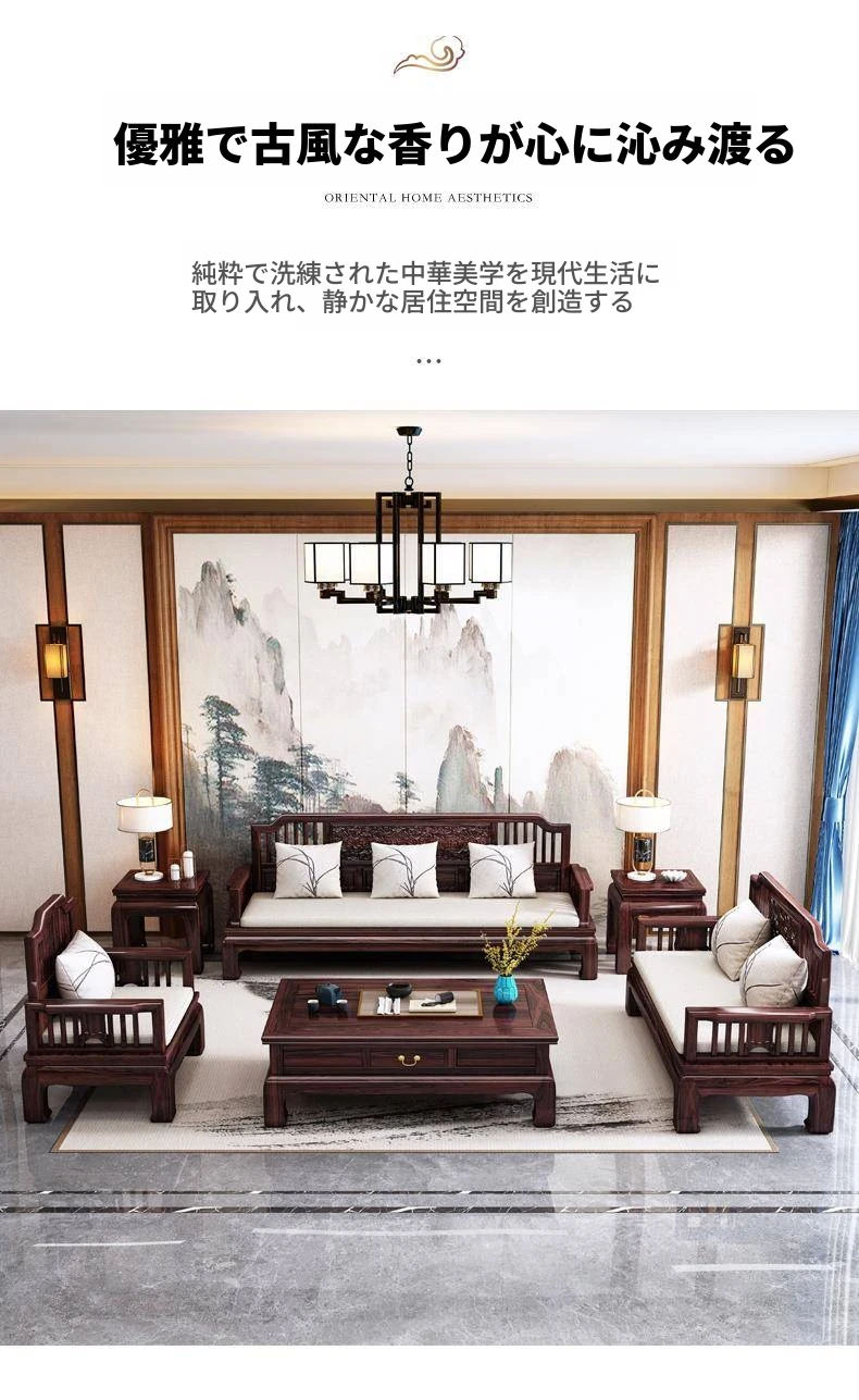 新中式ウーキン材123ソファセット|軽奢華で古典的なデザイン|大小型住宅に最適なリビング用|高品質の無垢材家具セットで、あなたの空間を優雅に演出します!