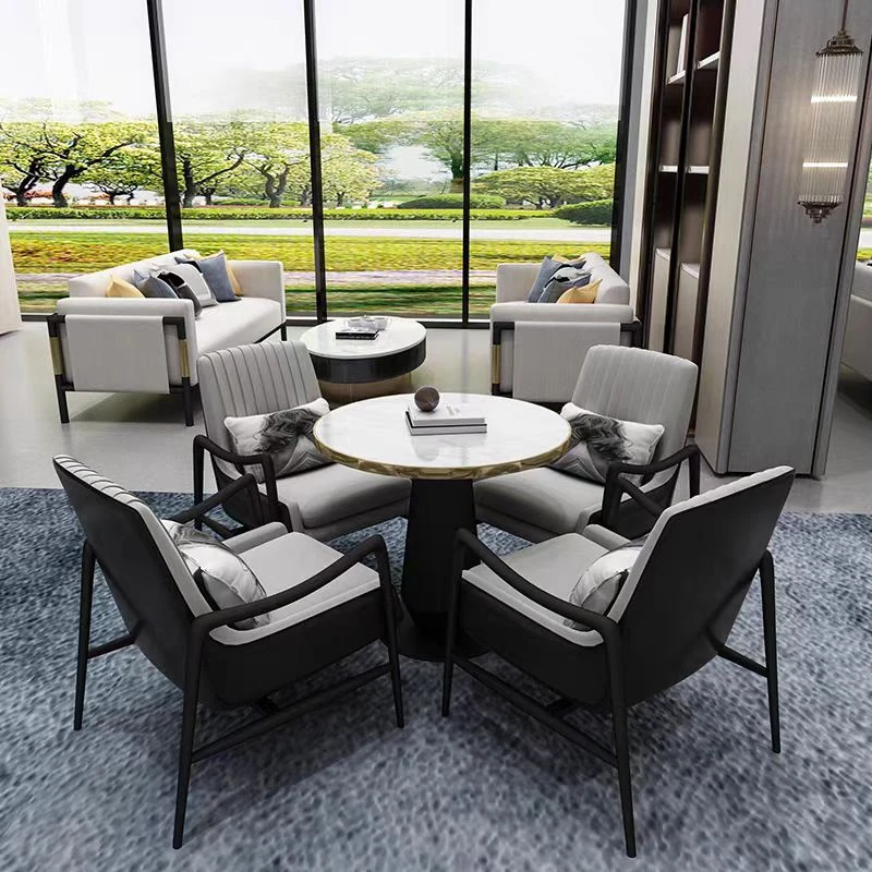 新中式デザインの販売センター用談話ソファー|ホテルロビーや休憩エリアに最適な受け付けエリア向けのスタイリッシュな家具セット|テーブルと椅子の完璧な組み合わせで、快適な空間を演出!