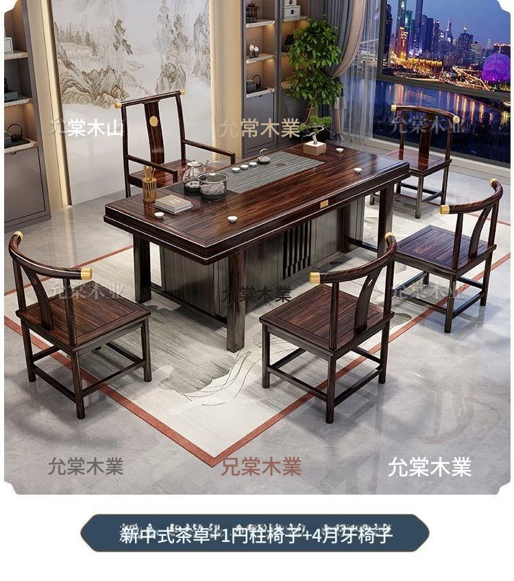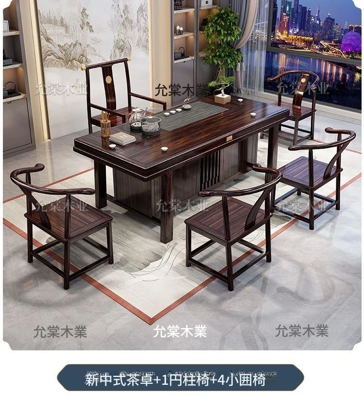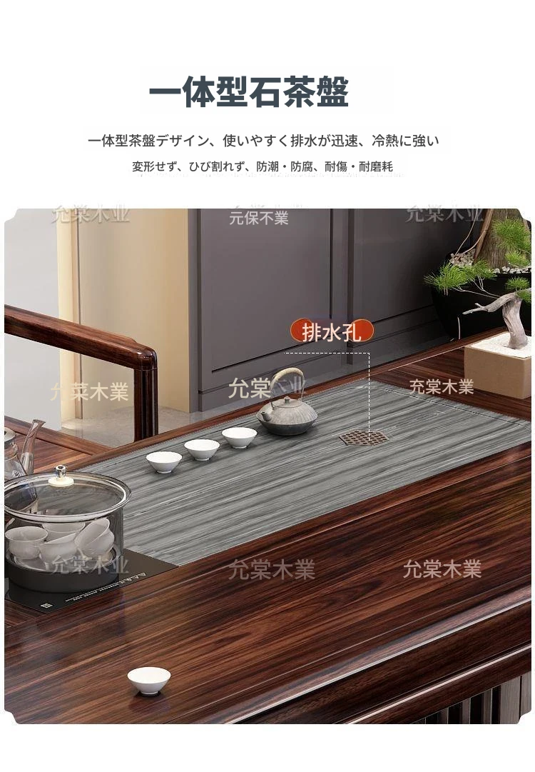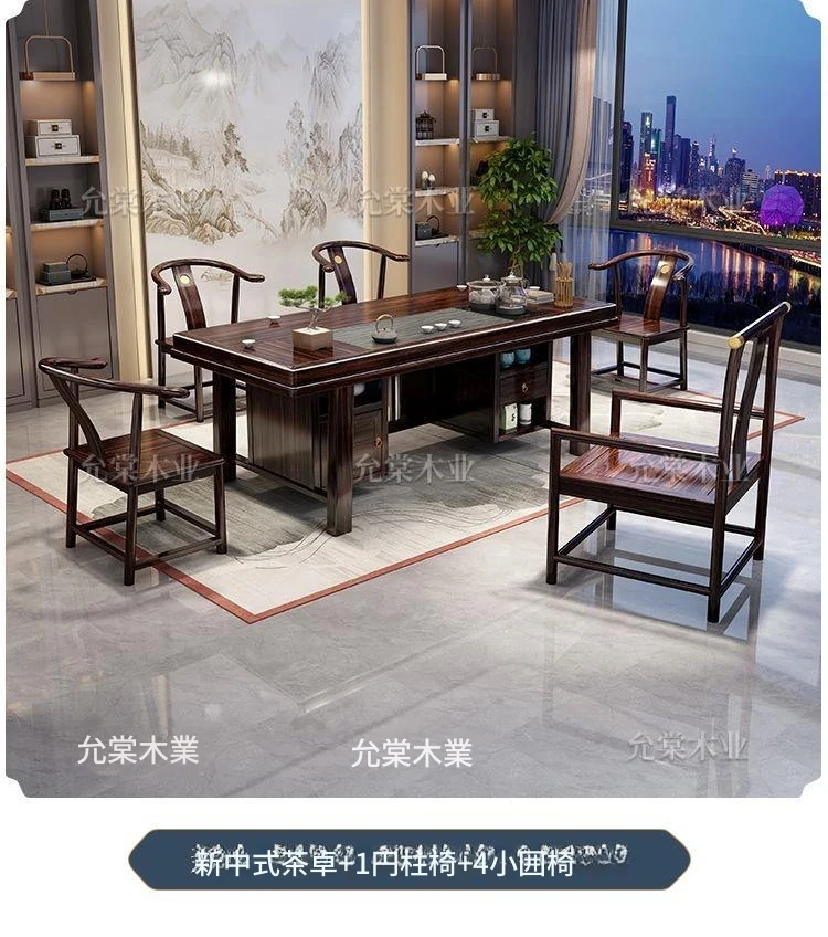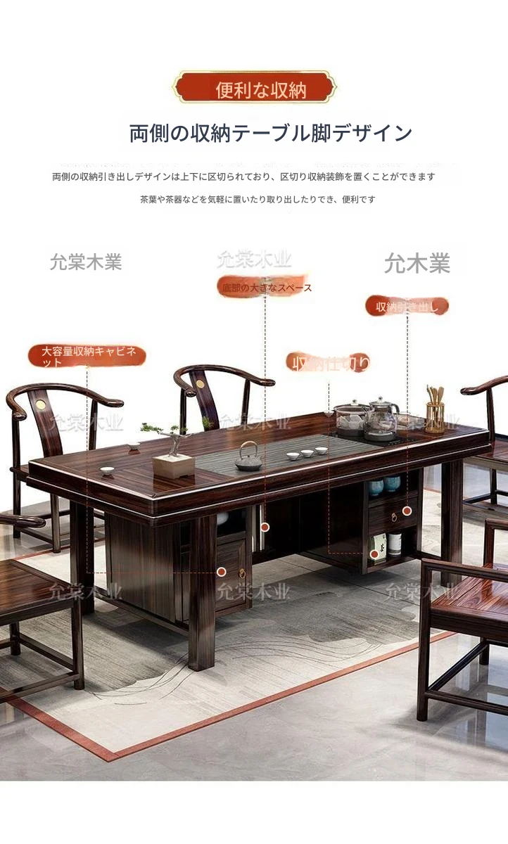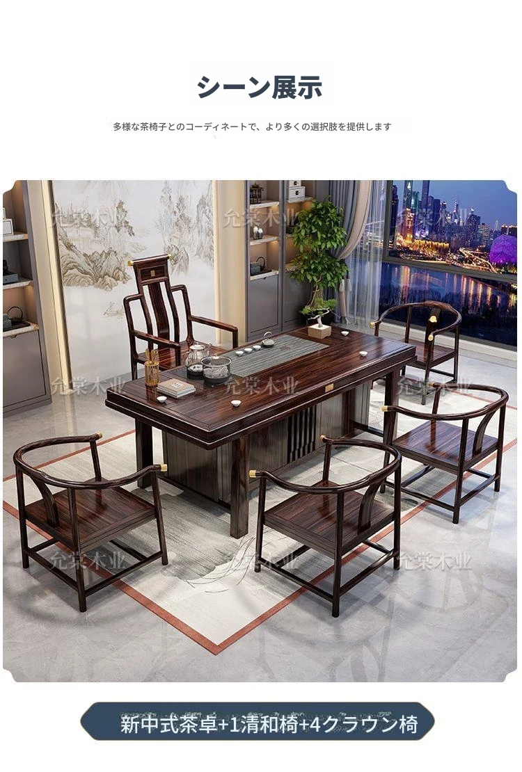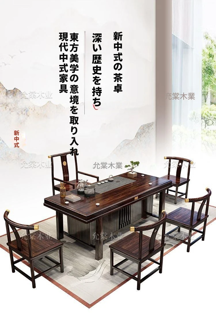 新中式茶台 ウッドブラック材質の美しい茶卓セット - シンプルでスタイリッシュなバルコニー用ティーテーブル、実用的な功夫茶台として、家庭でのリラックスタイムに最適です。