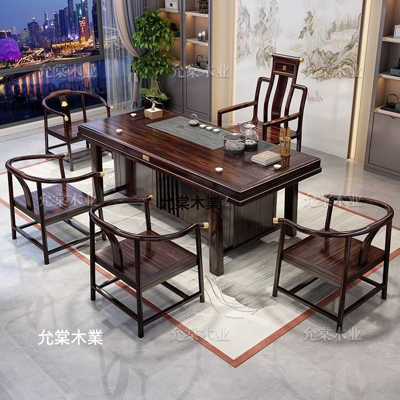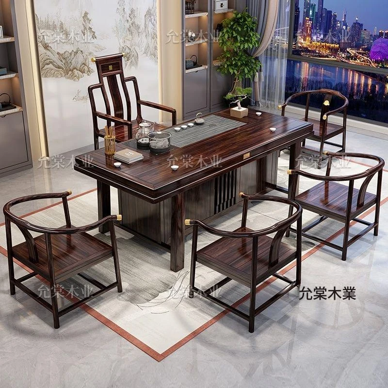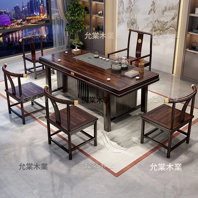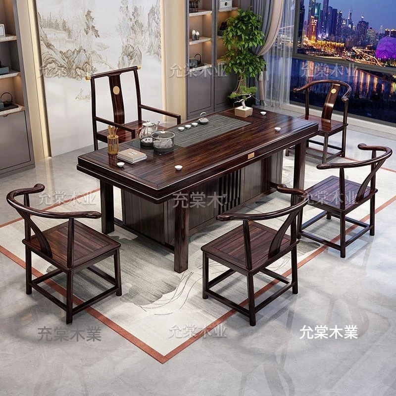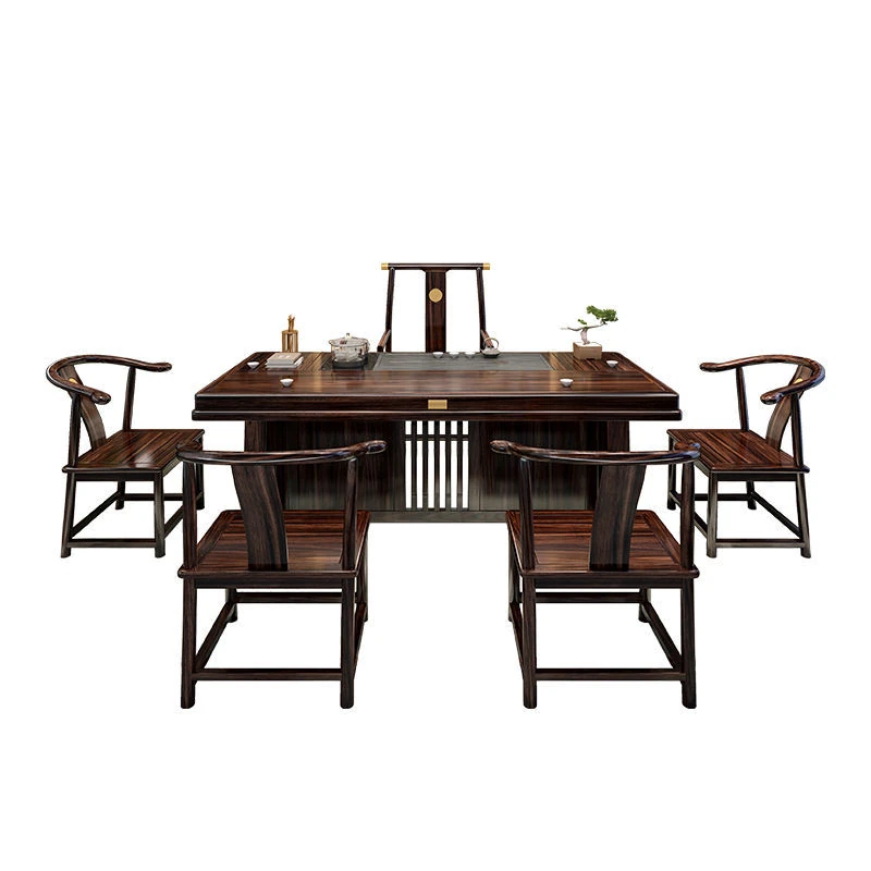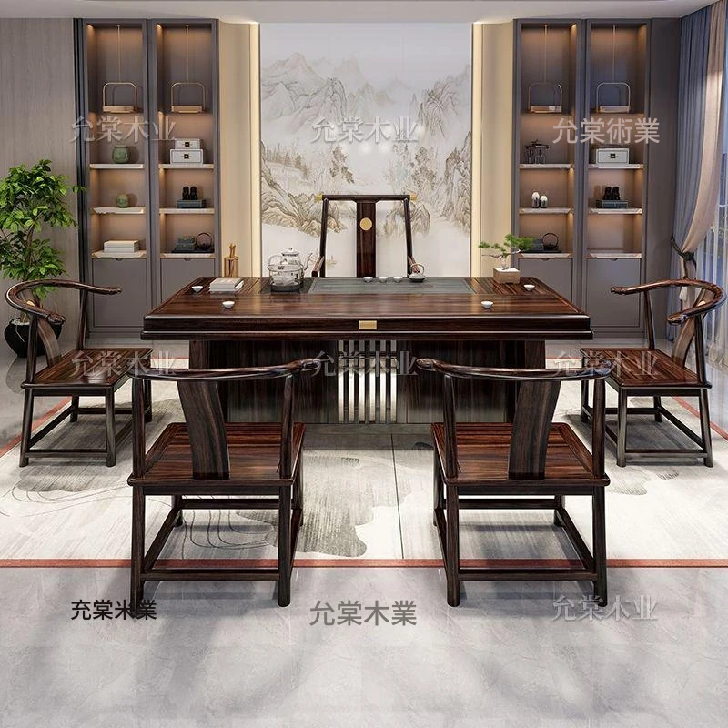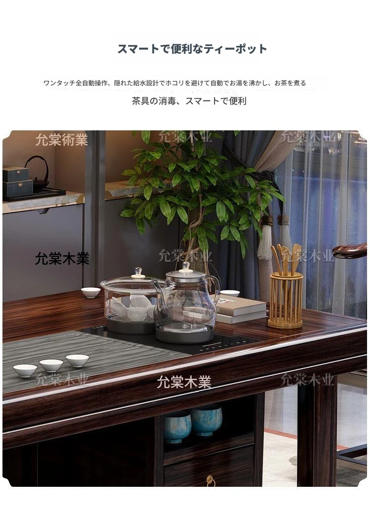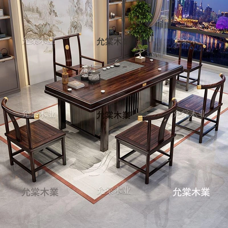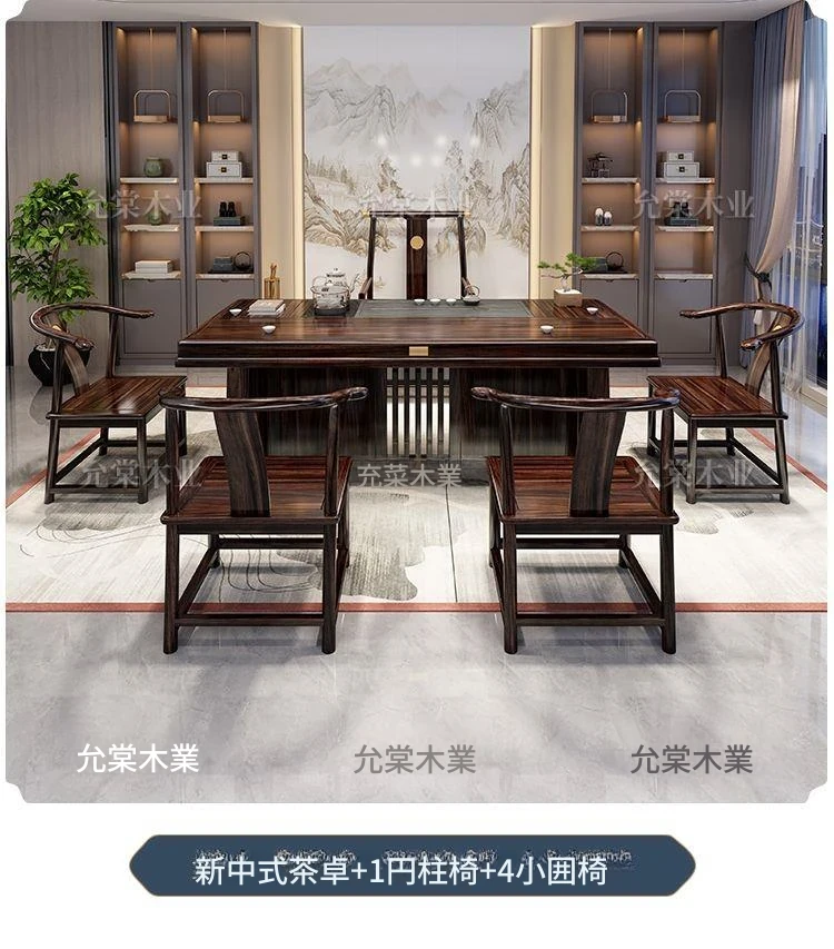 新中式茶台 ウッドブラック材質の美しい茶卓セット - シンプルでスタイリッシュなバルコニー用ティーテーブル、実用的な功夫茶台として、家庭でのリラックスタイムに最適です。