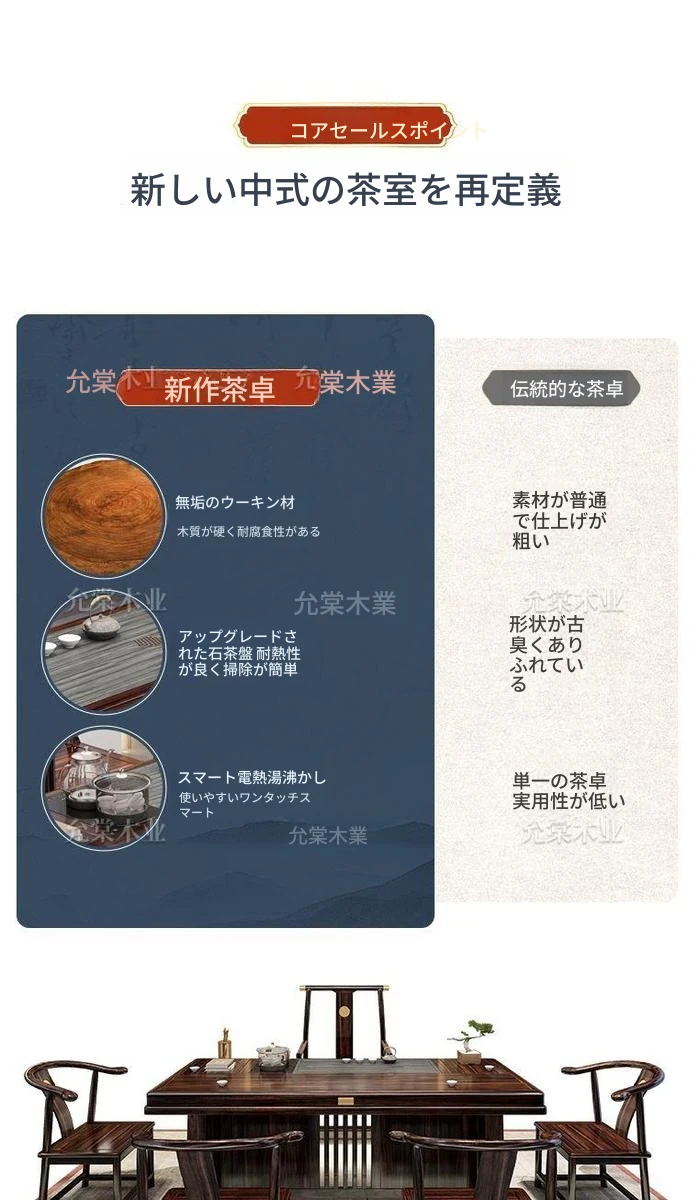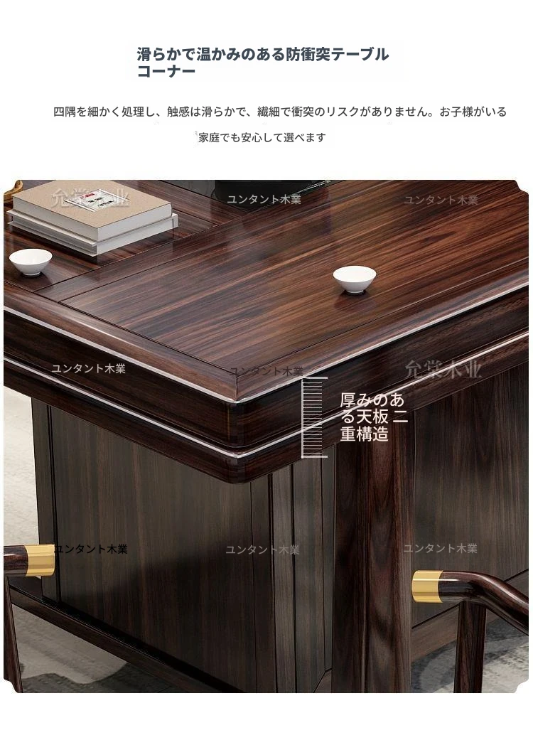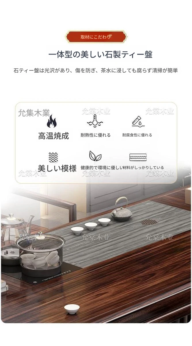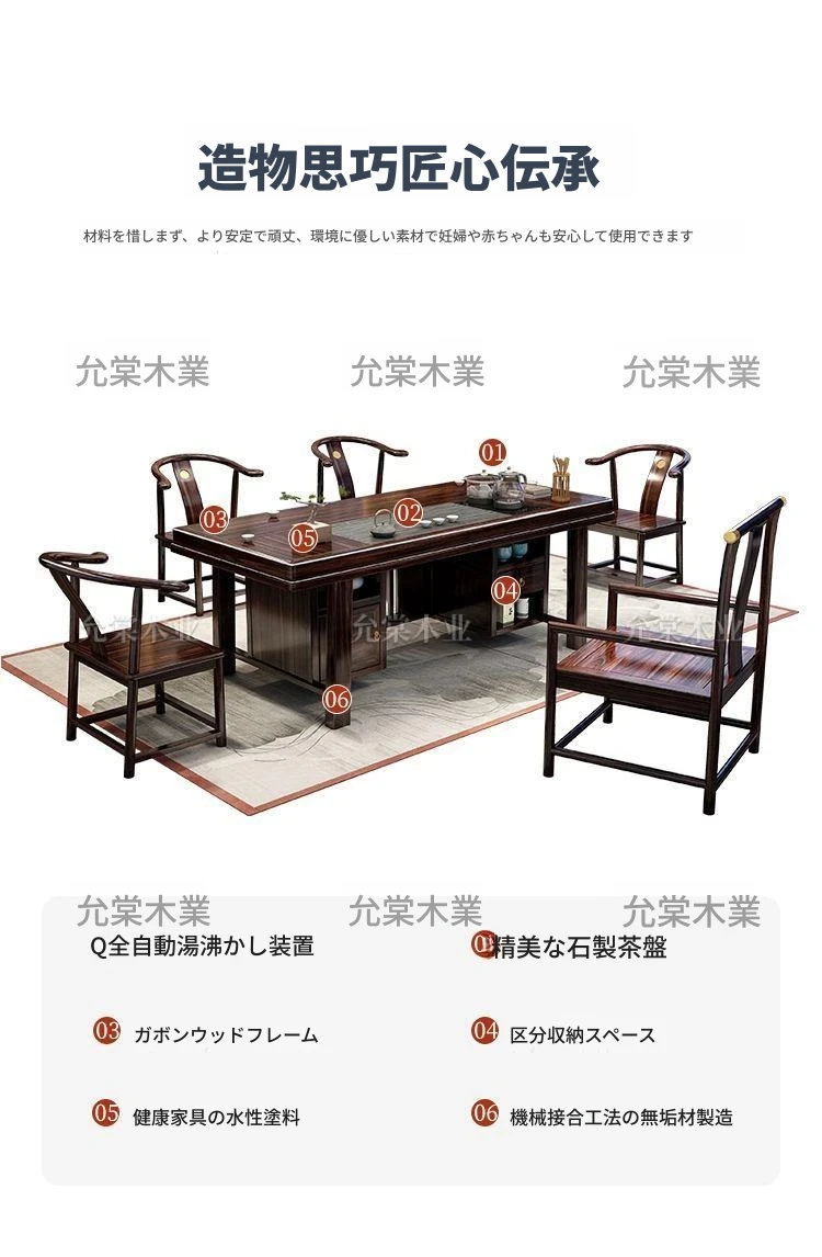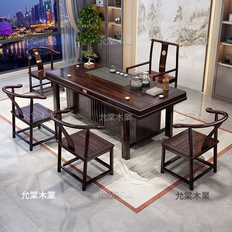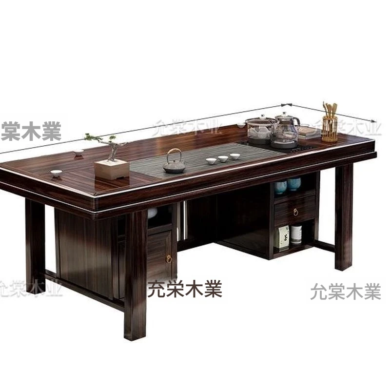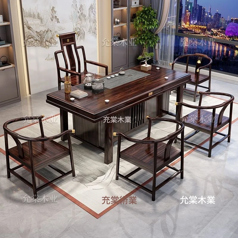 新中式茶台 ウッドブラック材質の美しい茶卓セット - シンプルでスタイリッシュなバルコニー用ティーテーブル、実用的な功夫茶台として、家庭でのリラックスタイムに最適です。