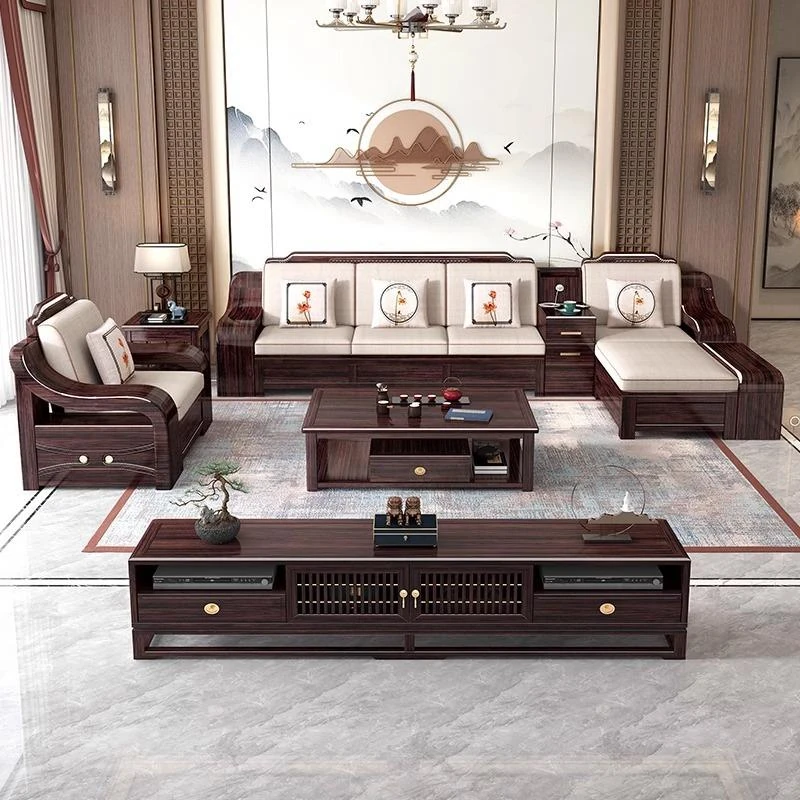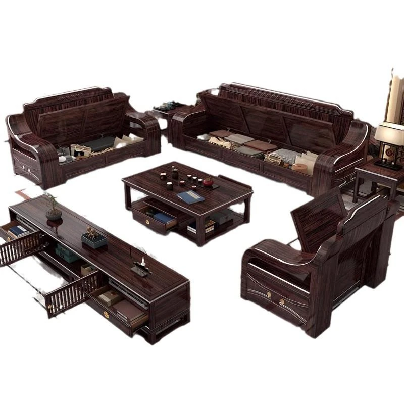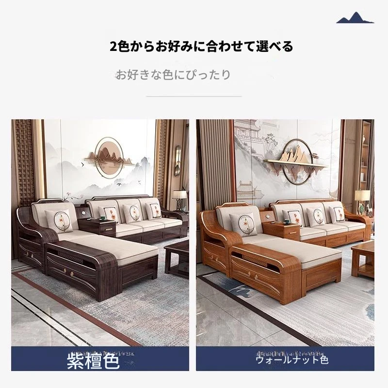 新中式デザインの紫金檀木フルソリッドソファセット|小型リビングに最適|冬夏両用で収納も充実!快適な家庭空間を演出します。
