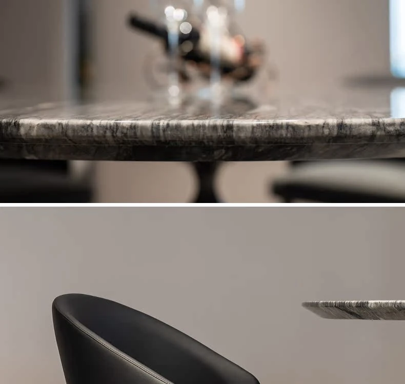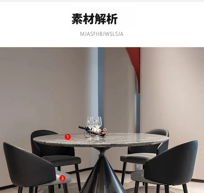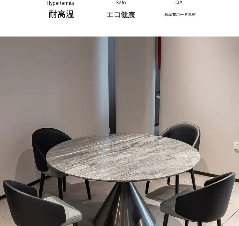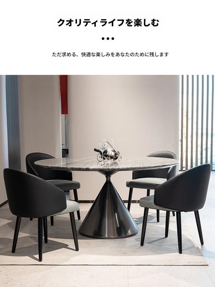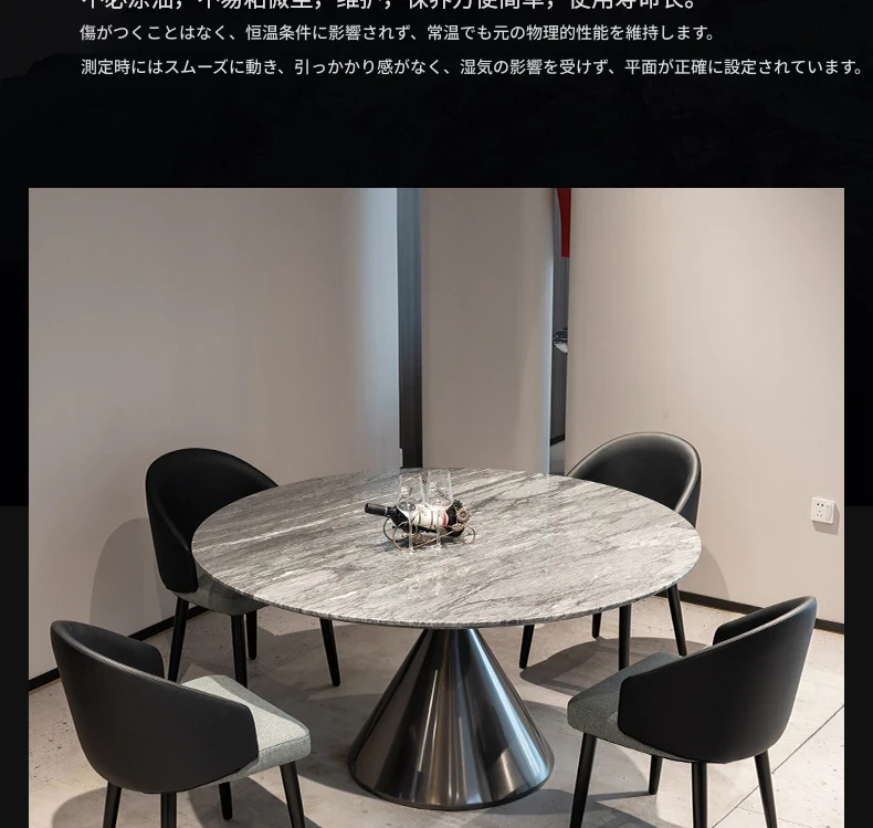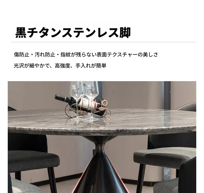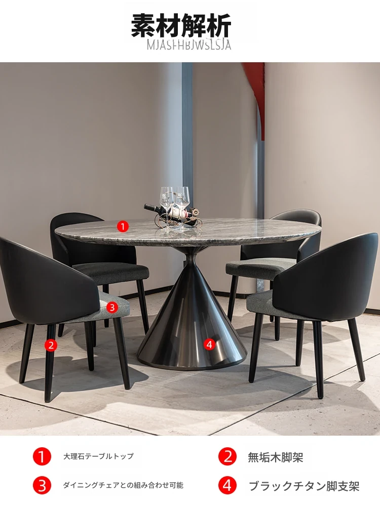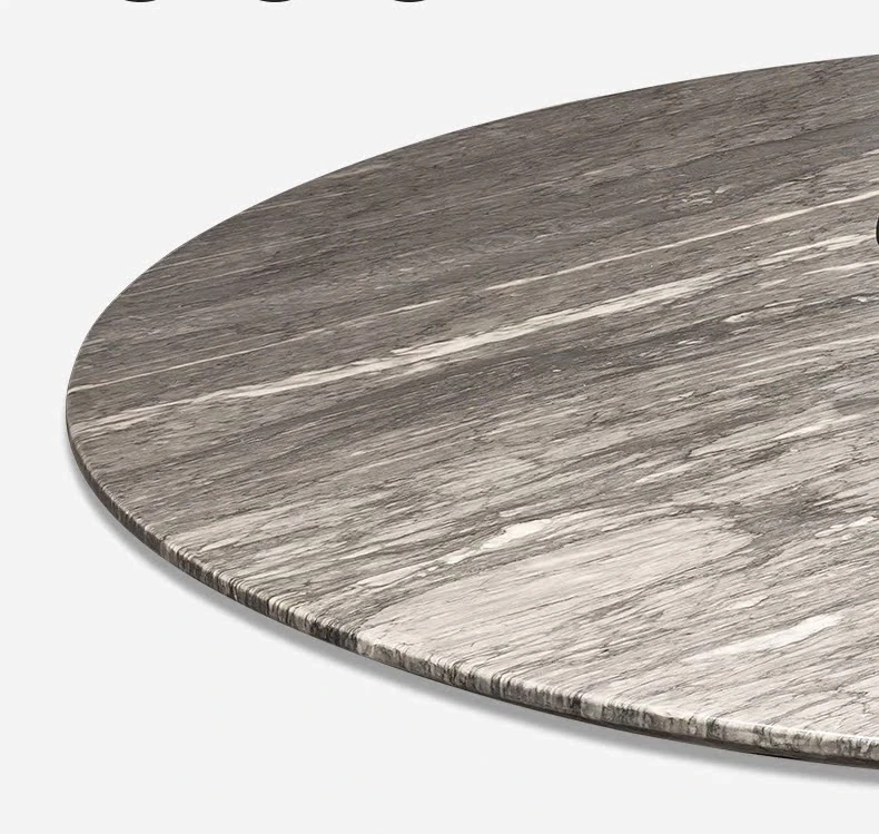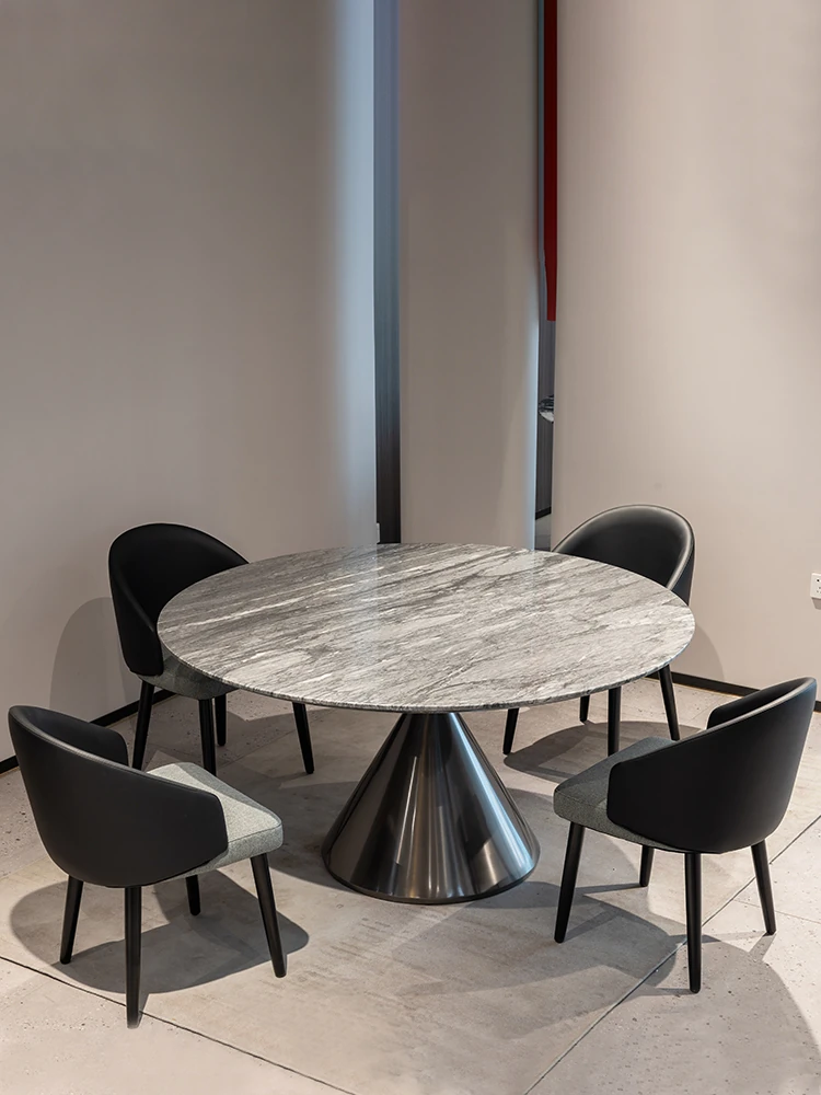 イタリアンスタイルのラグジュアリー、ブルースグレーの大理石丸テーブル - 現代的なシンプルさを兼ね備えた高級ダイニングテーブル、別荘や家庭に最適!