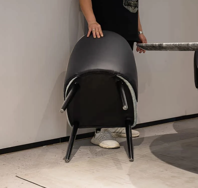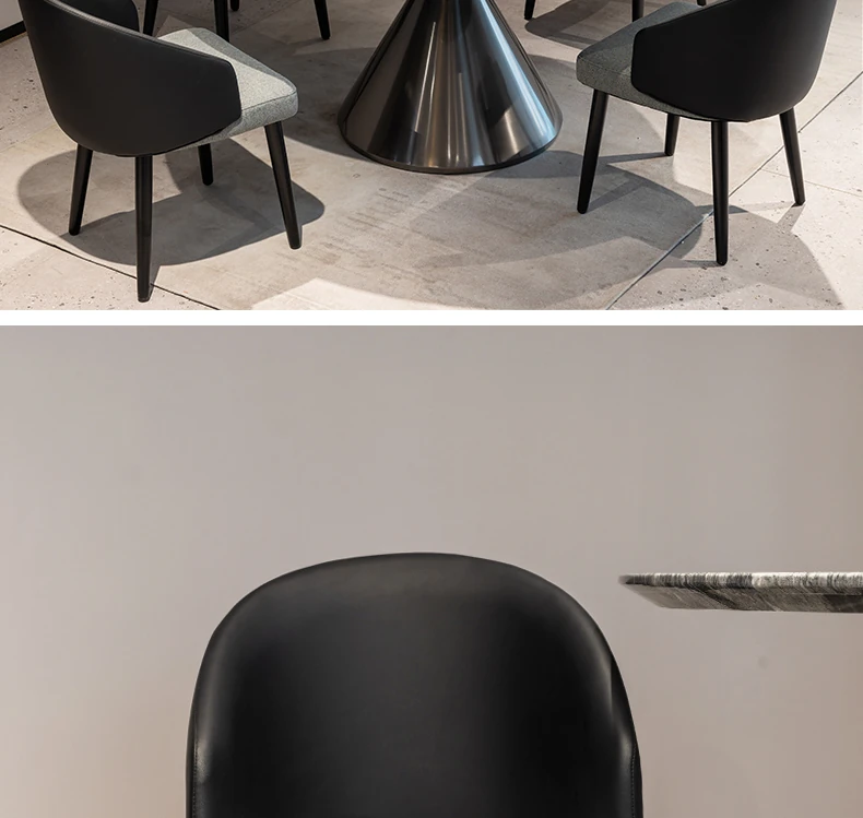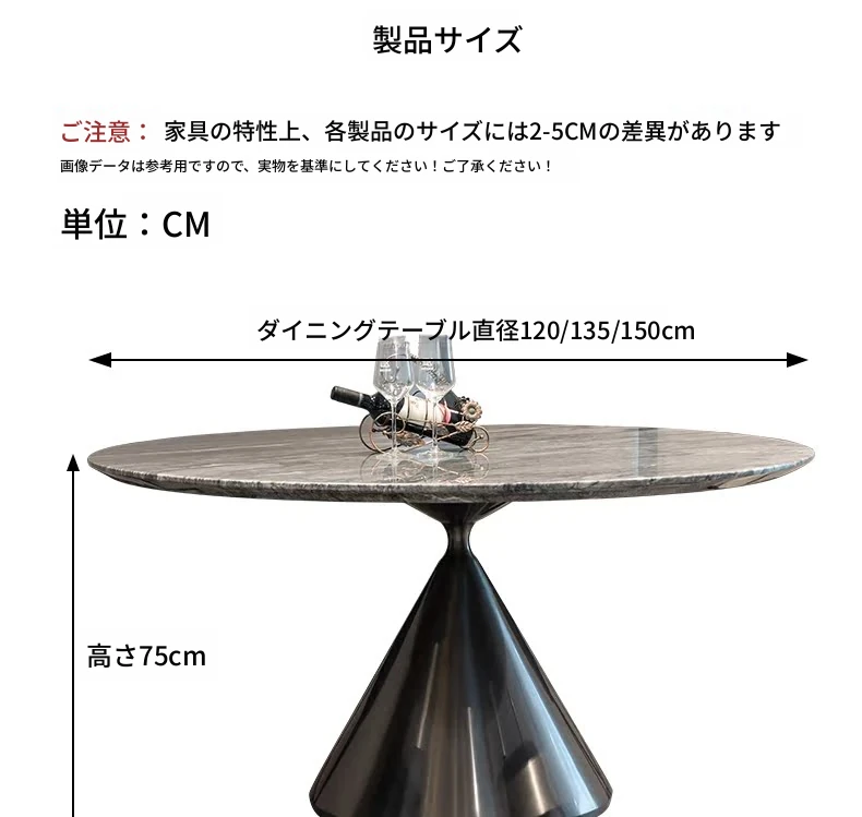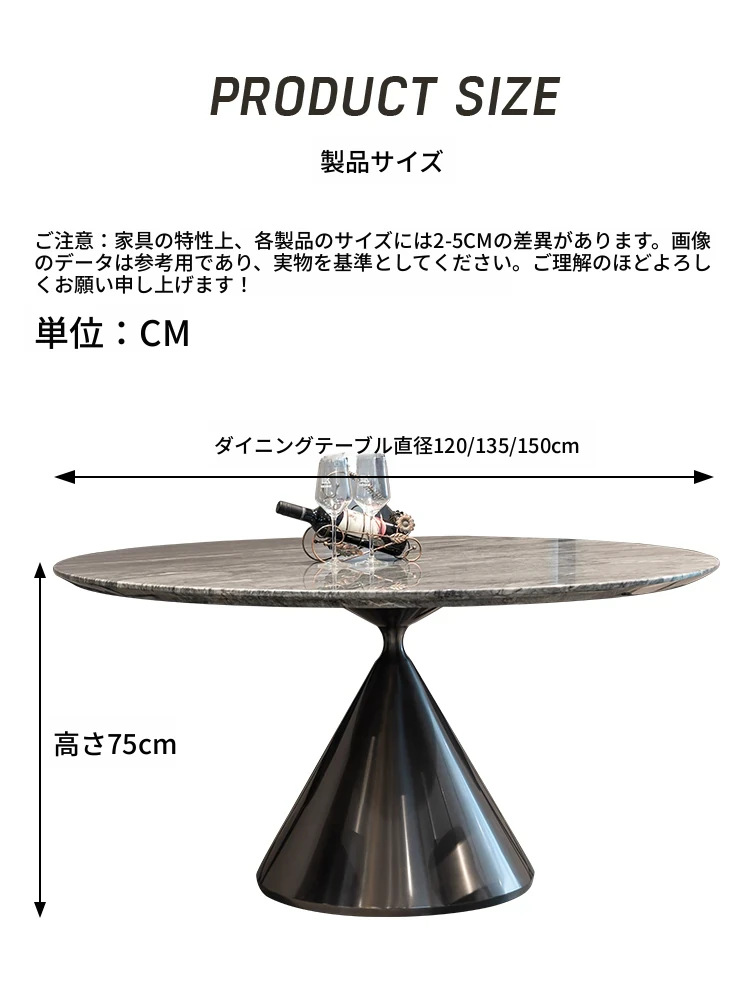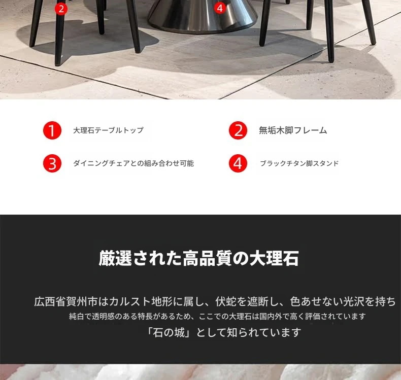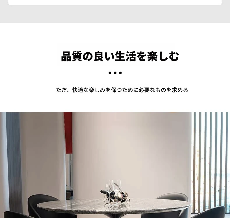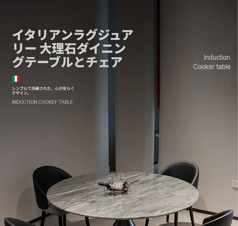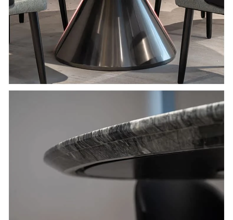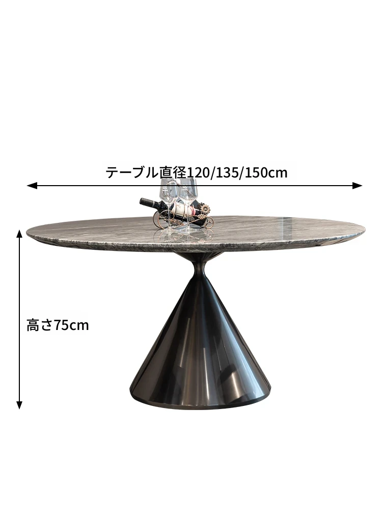 イタリアンスタイルのラグジュアリー、ブルースグレーの大理石丸テーブル - 現代的なシンプルさを兼ね備えた高級ダイニングテーブル、別荘や家庭に最適!