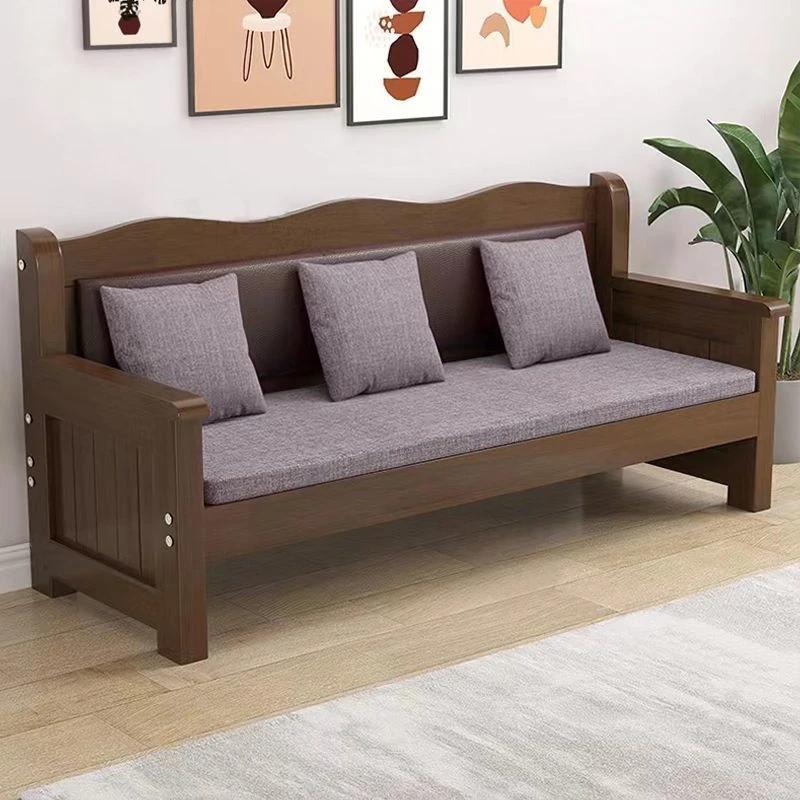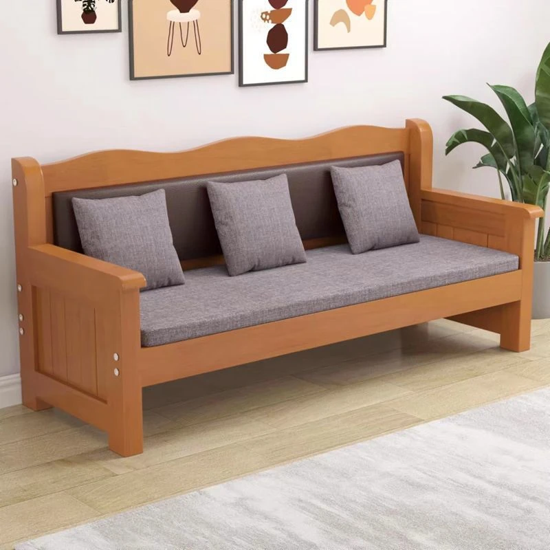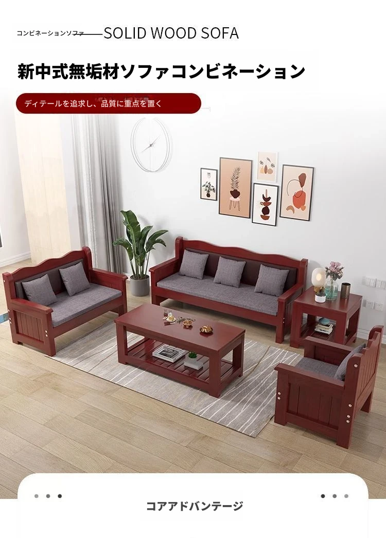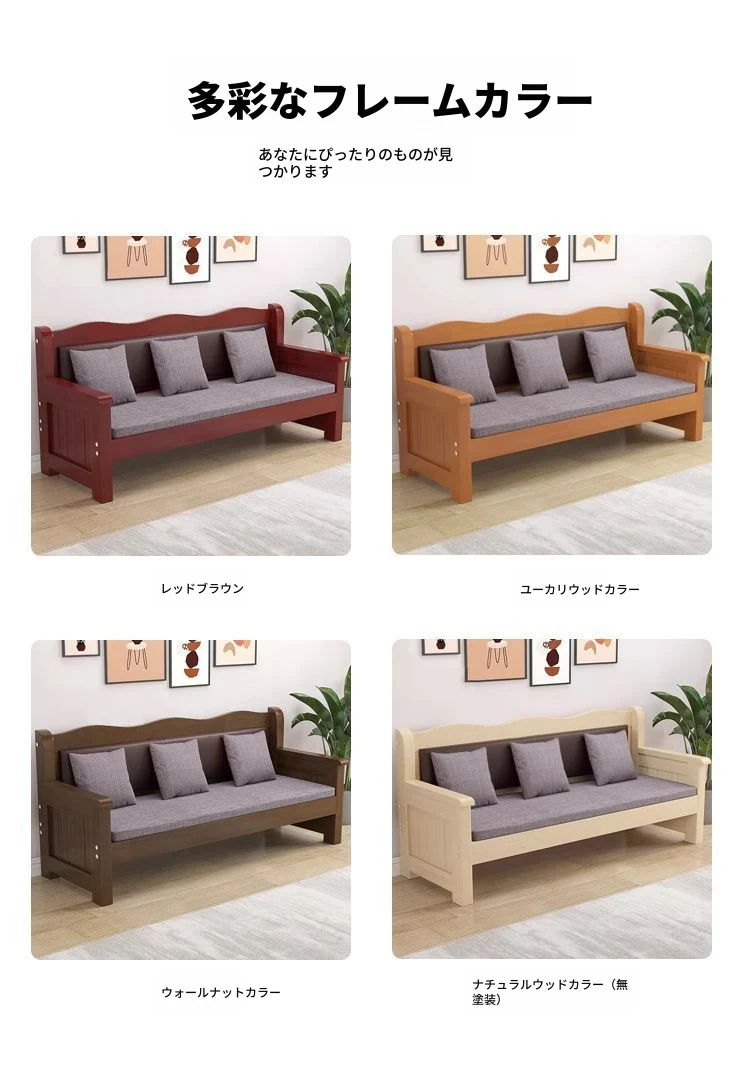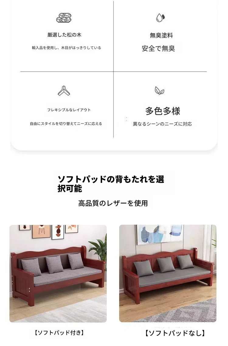 本格派の実木製ソファセット - シンプルでスタイリッシュな3人掛け、コンパクトなデザインでリビングと冬の客間に最適!快適な長椅子で、夏も冬もくつろぎのひとときをお届けします。