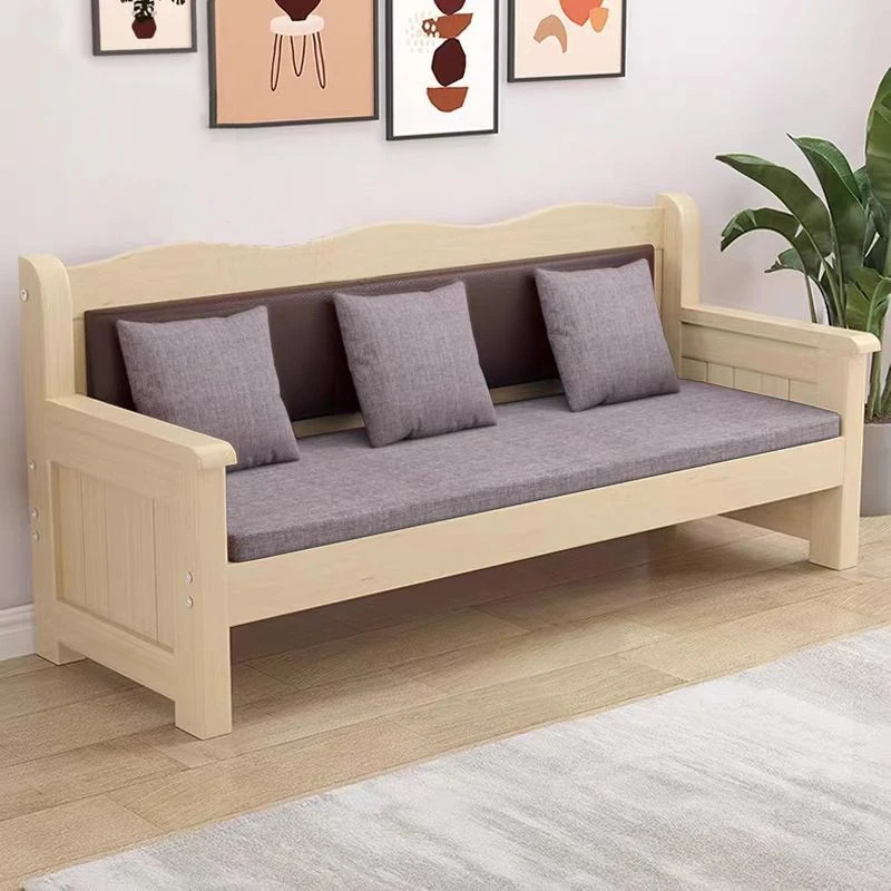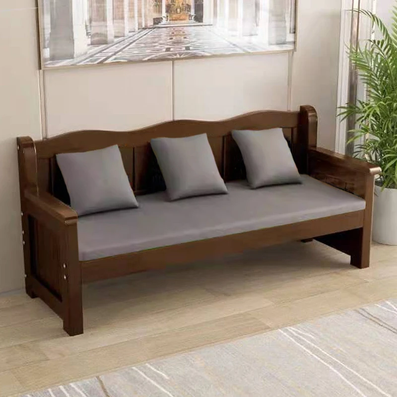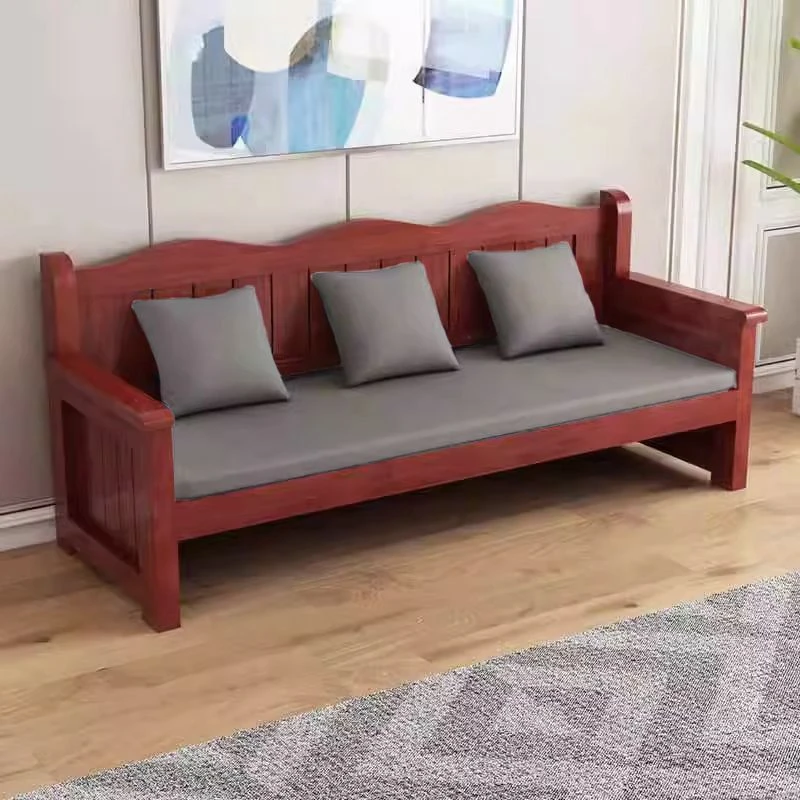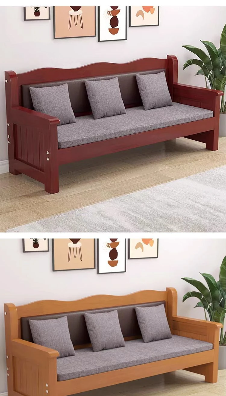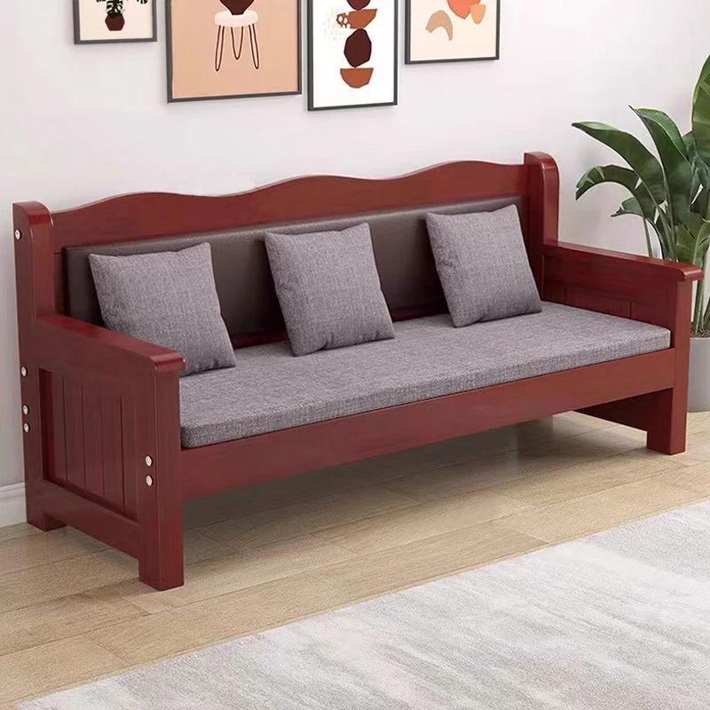 本格派の実木製ソファセット - シンプルでスタイリッシュな3人掛け、コンパクトなデザインでリビングと冬の客間に最適!快適な長椅子で、夏も冬もくつろぎのひとときをお届けします。