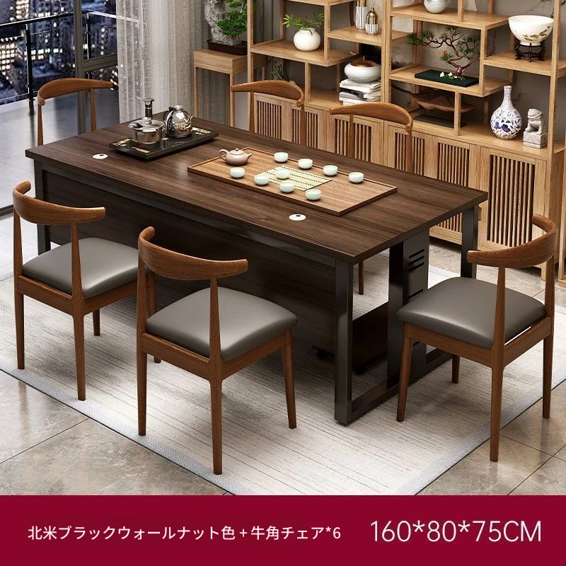 【一卓6脚】ブラックウォールナット色1.6メートル