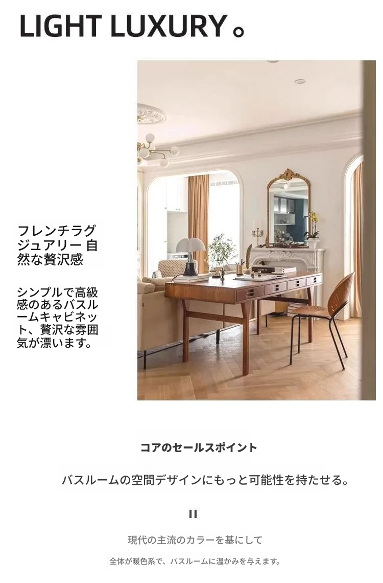 スマートミラー+セラミック一体型ボウル-オーク70cm