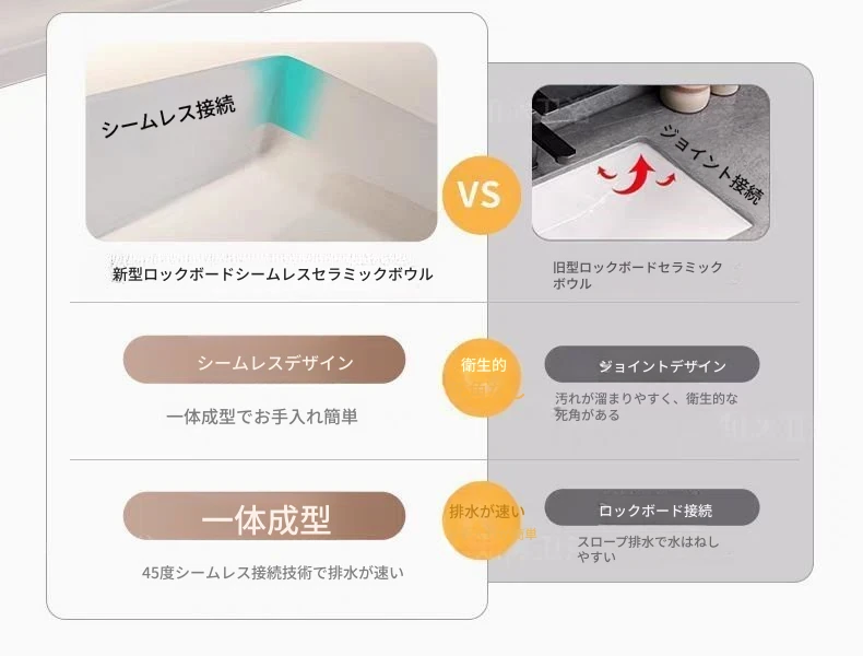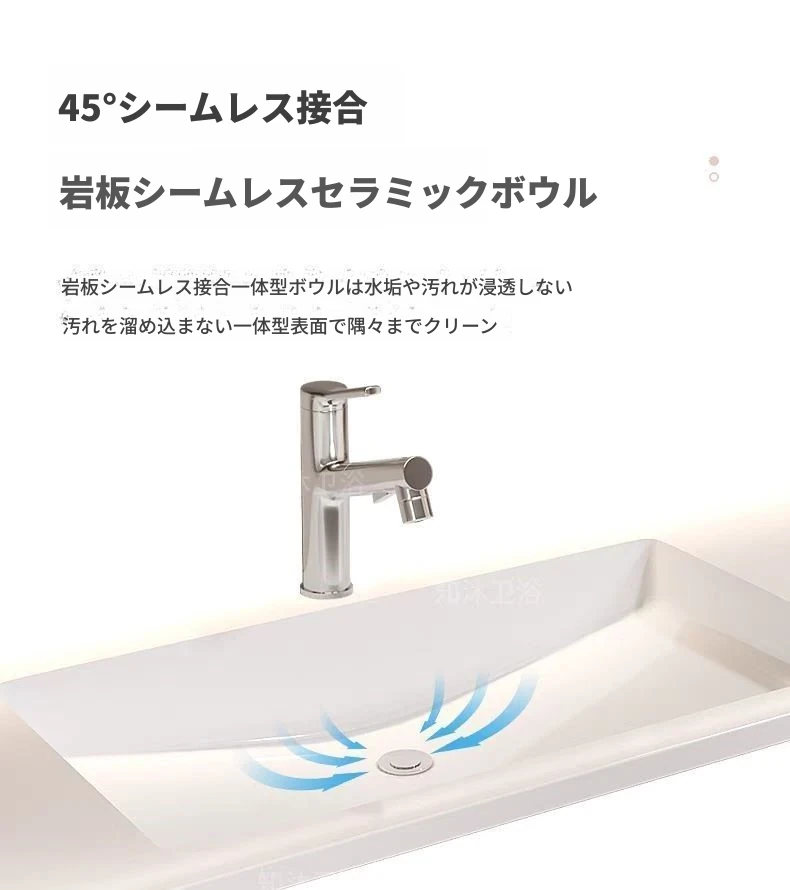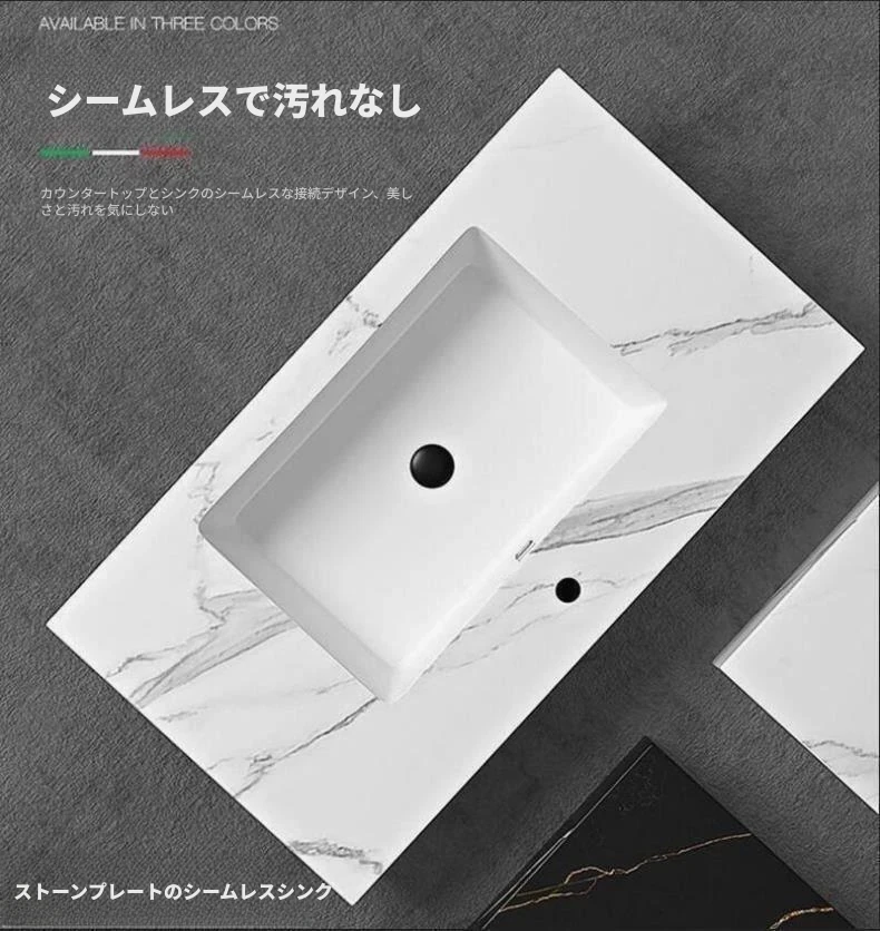 スマートミラーキャビネット+岩板シームレスボウル-オーク90cm